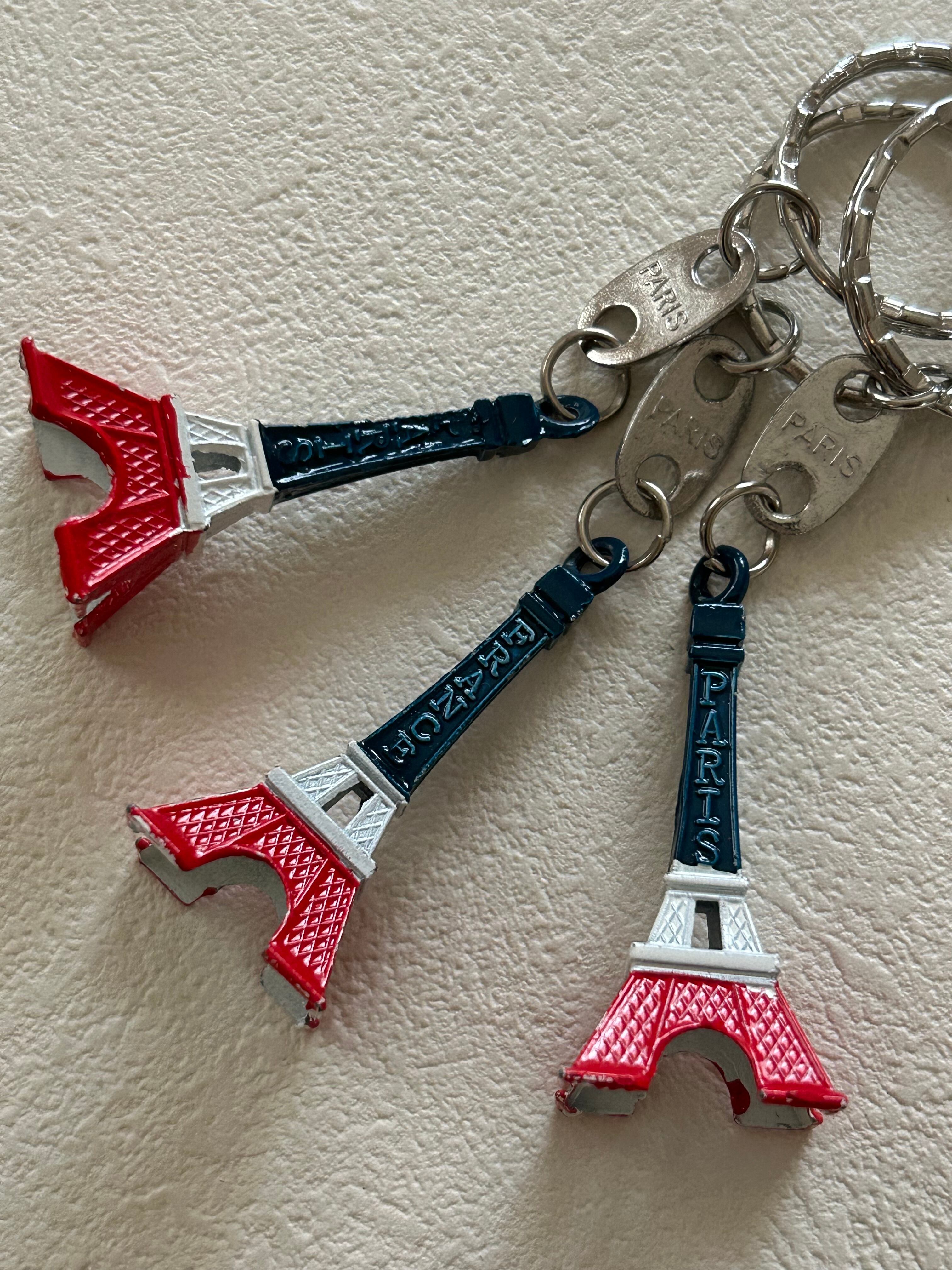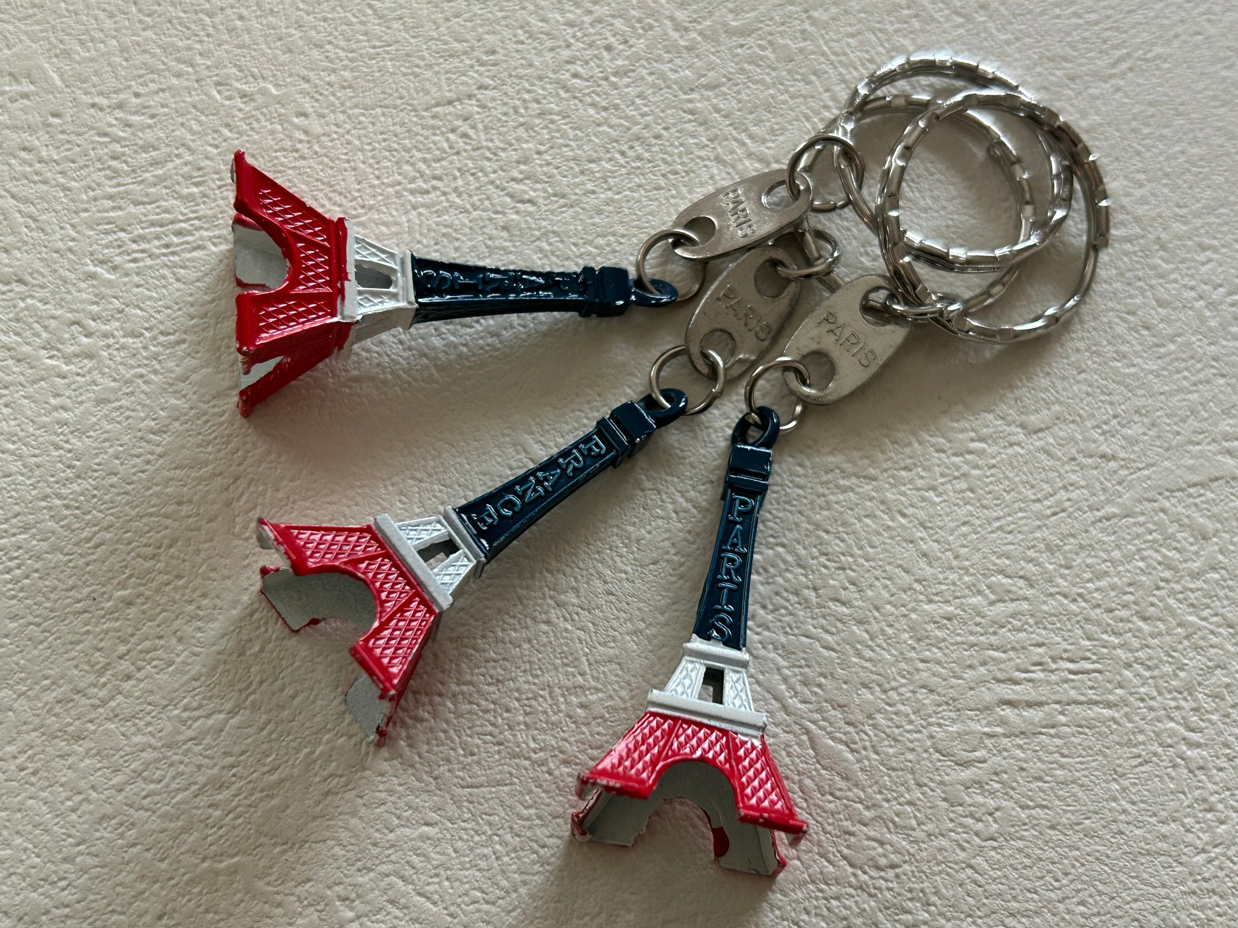 フランスのお土産の定番のエッフェル塔のキーホルダー。