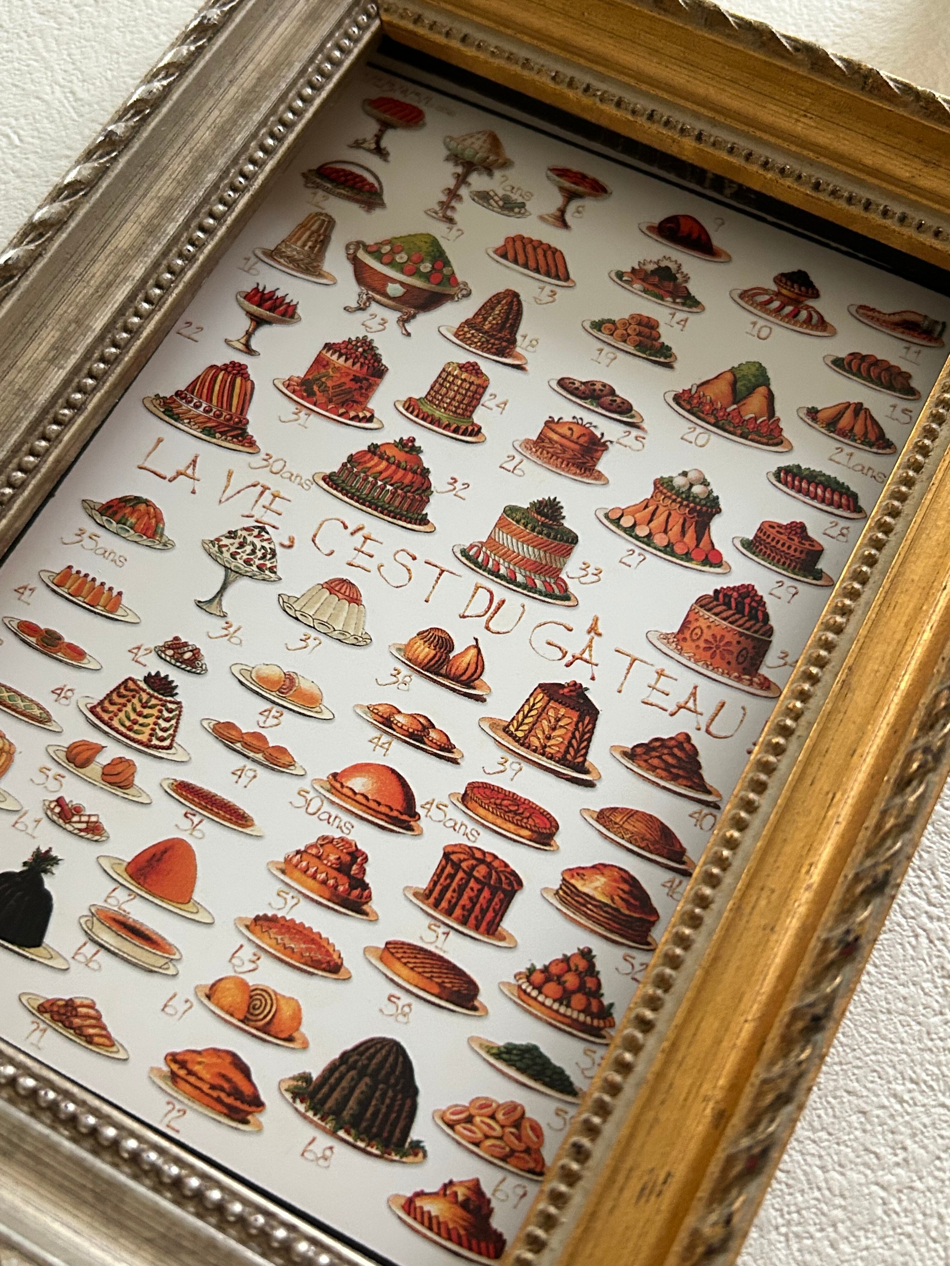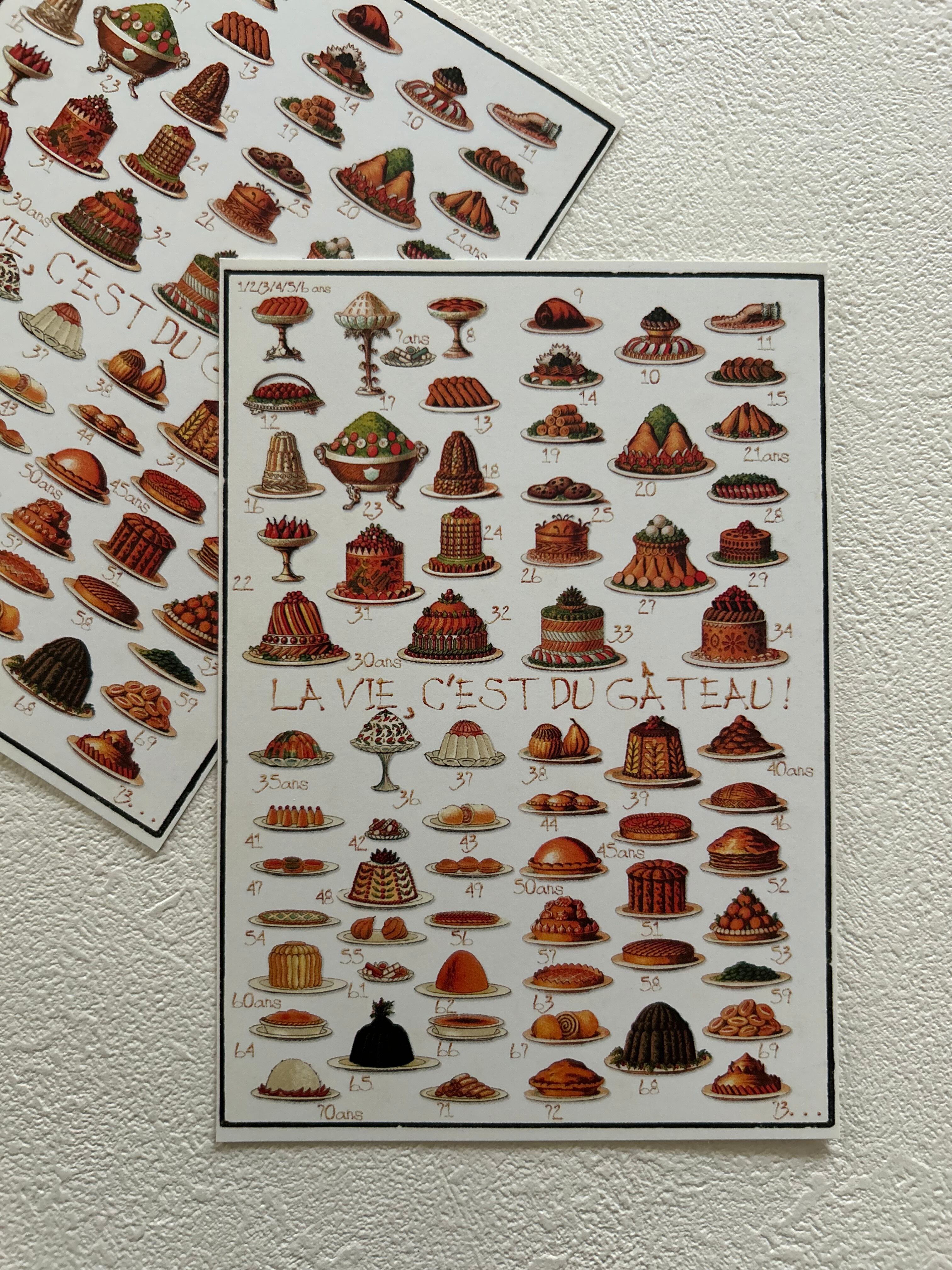 フランス雑貨 ポストカード LA VIE,C’EST DU GATEAU!ケーキ柄 額装 インテリア小物 文具