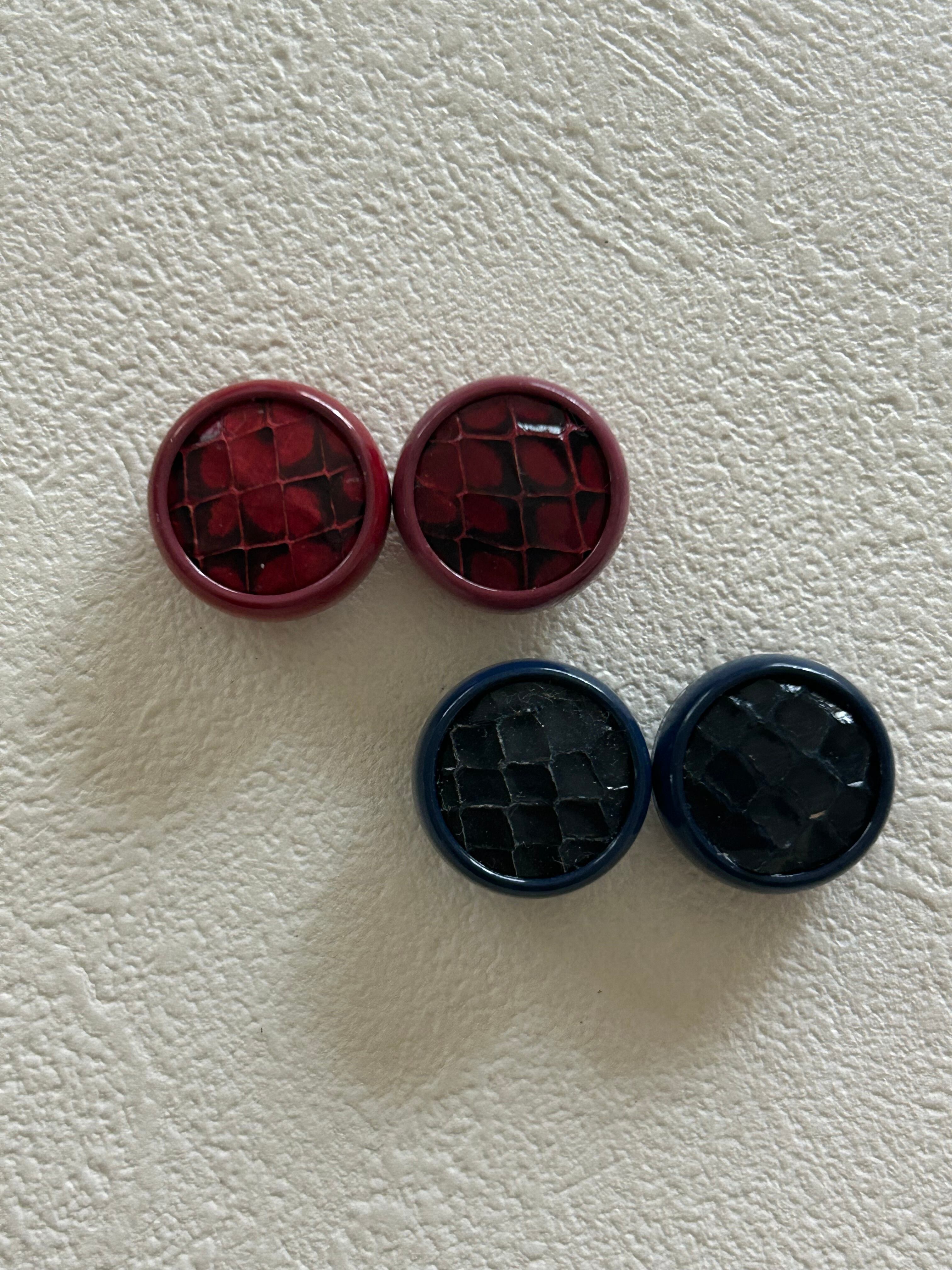 Japanese Vintage ヴィンテージボタン ハラコ調 赤紫/ネイビー 16mm アクセサリーパーツ デコレーション材 レトロボタン 昭和レトロ