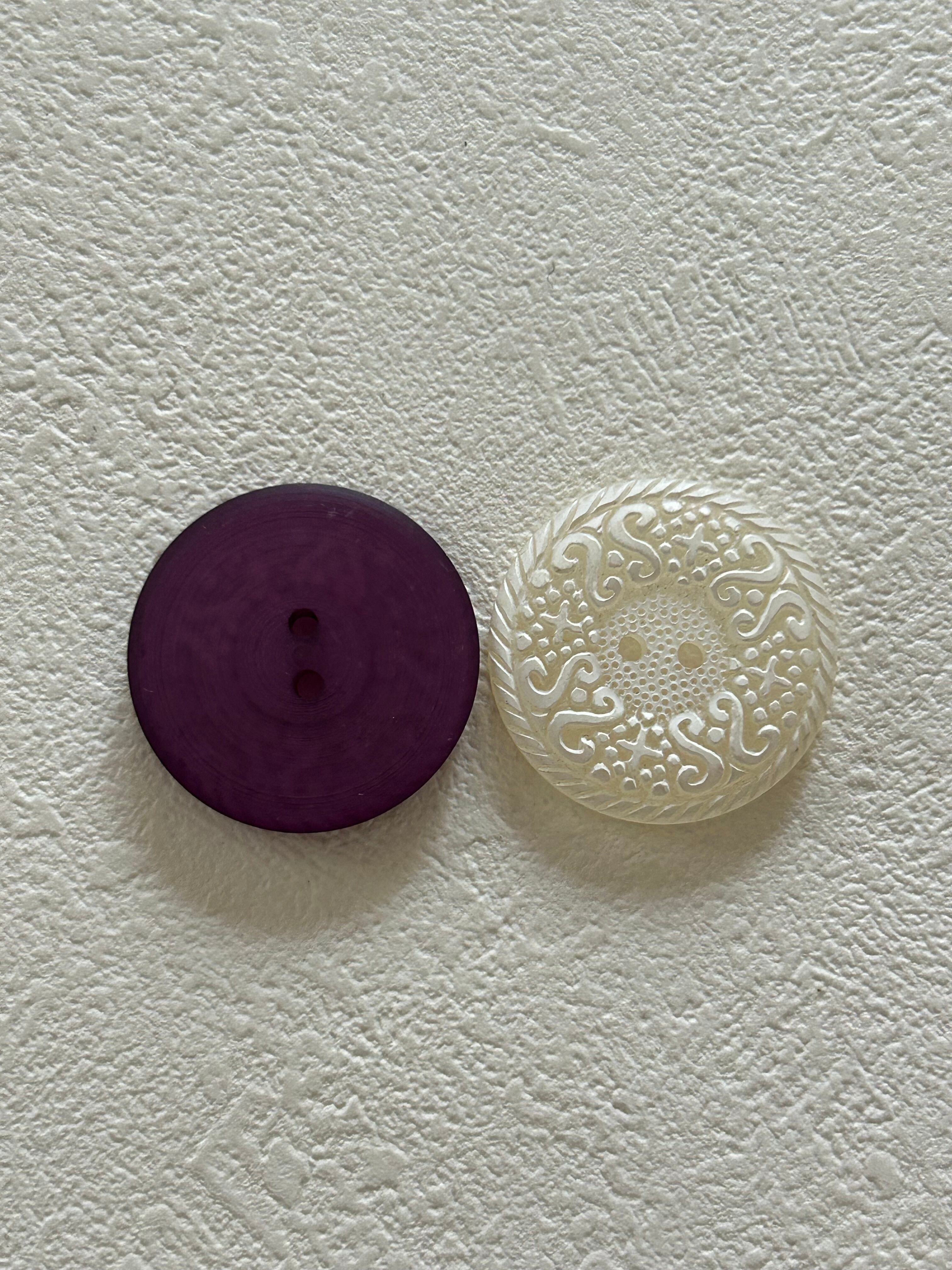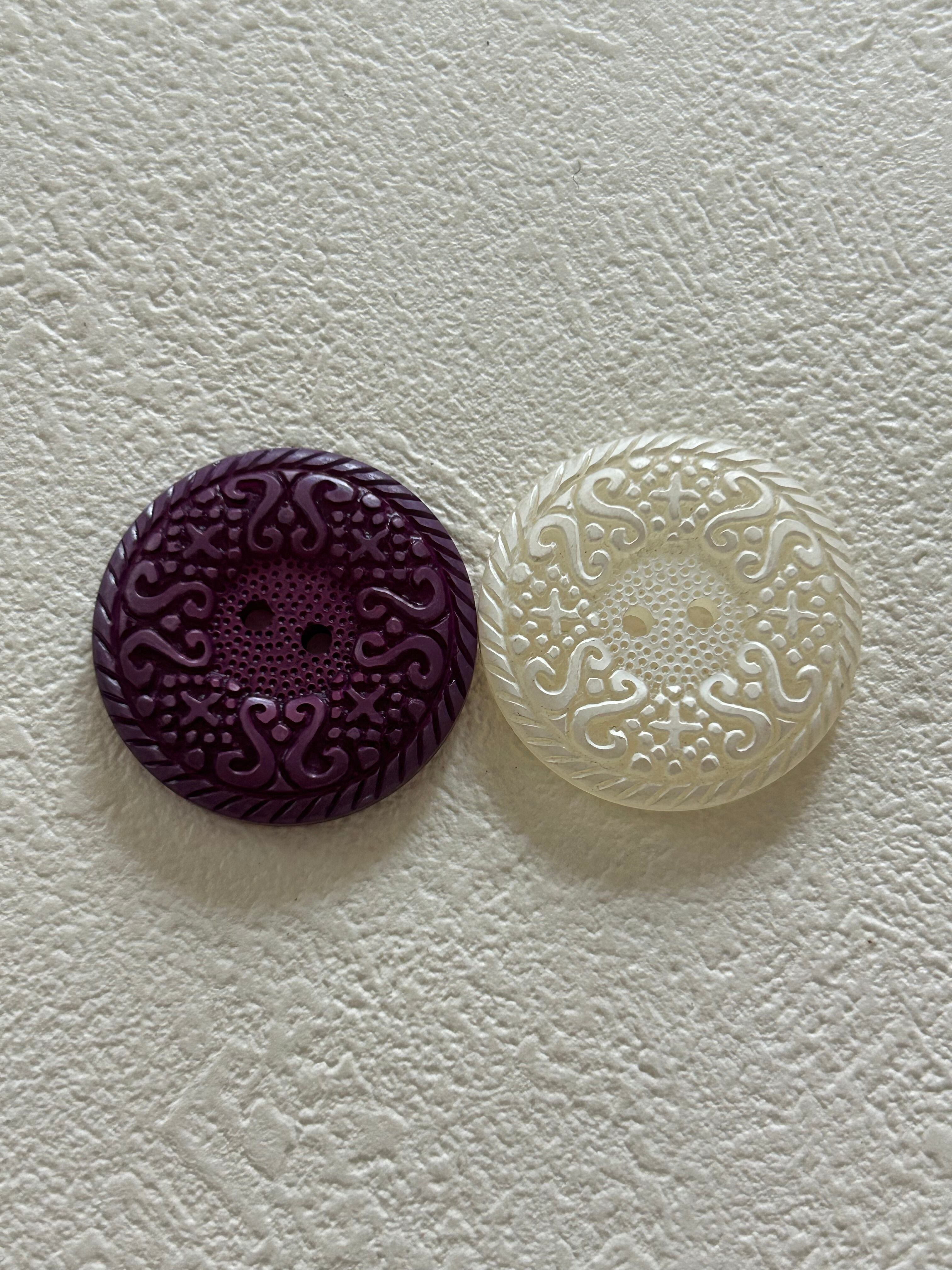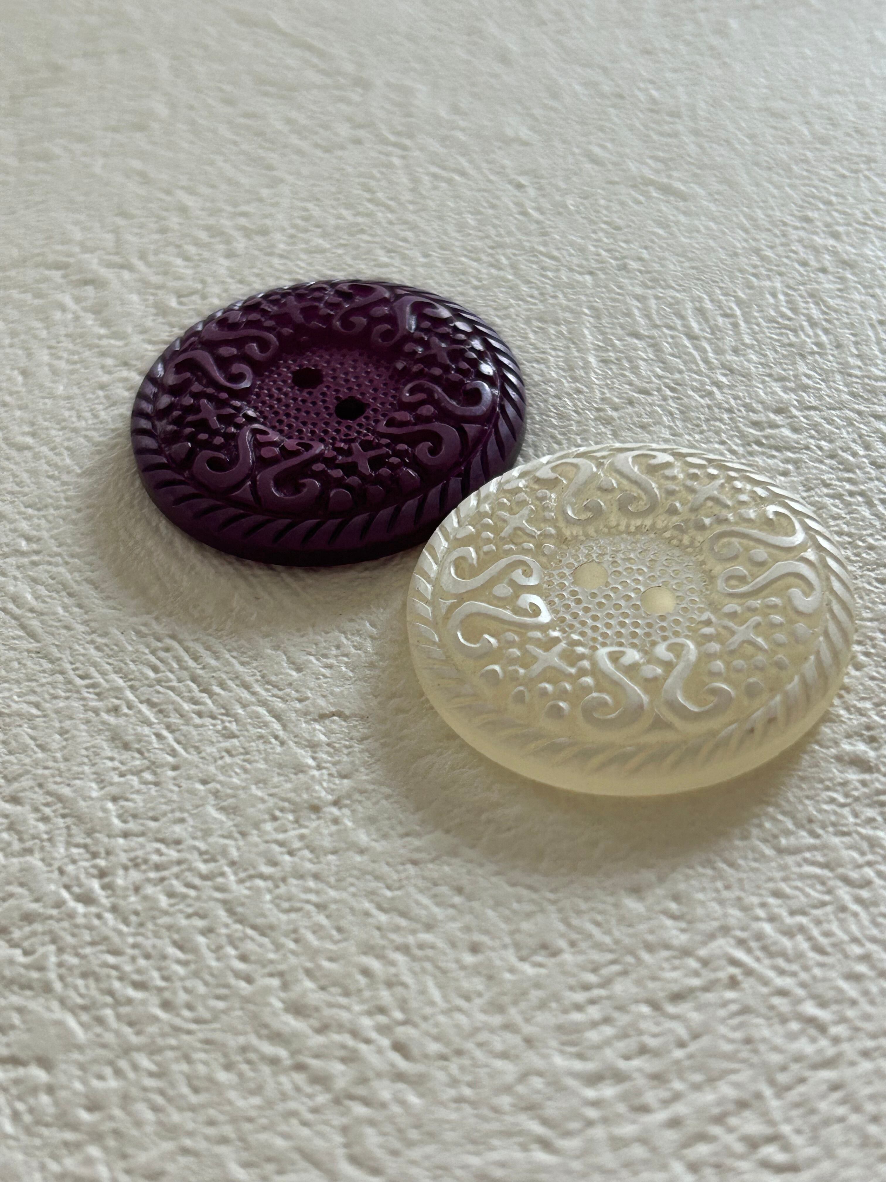輸入デザインボタン フロスト すりガラス調 彫り模様 ホワイト/パープル 28mm アクセサリーパーツ デコレーション材