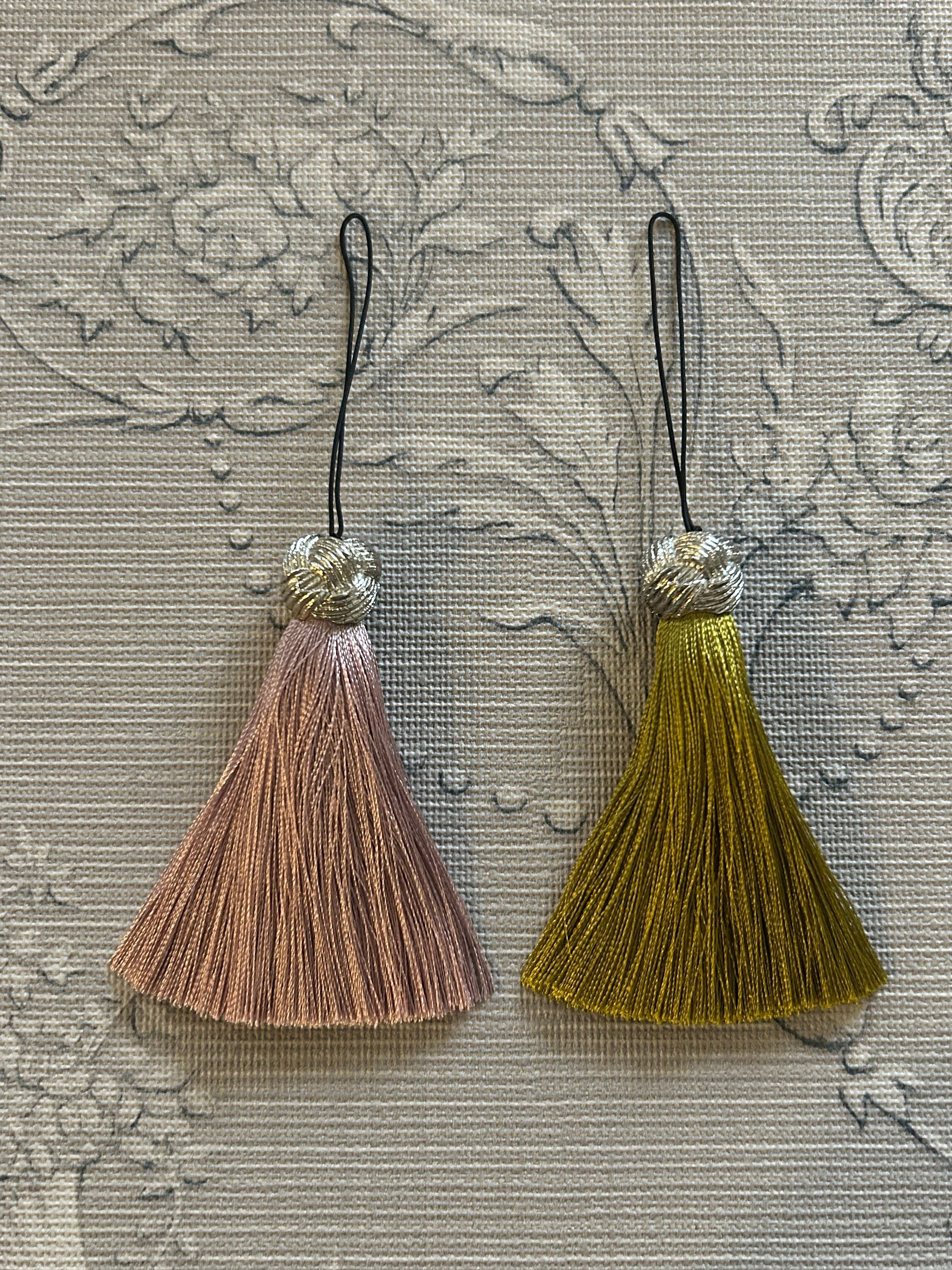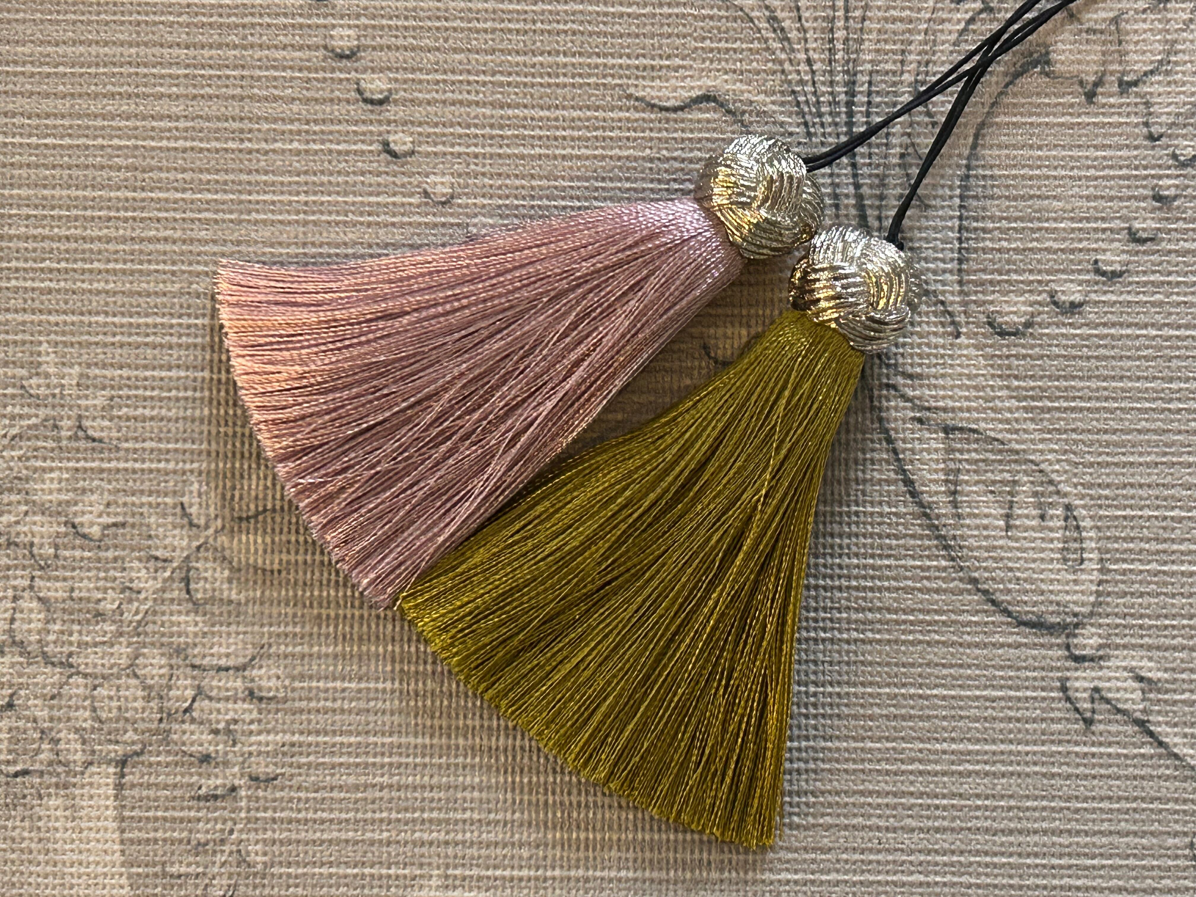 輸入デザインタッセル 和色 緑茶/和ピンク 7cm カルトナージュ チャーム デコレーション材