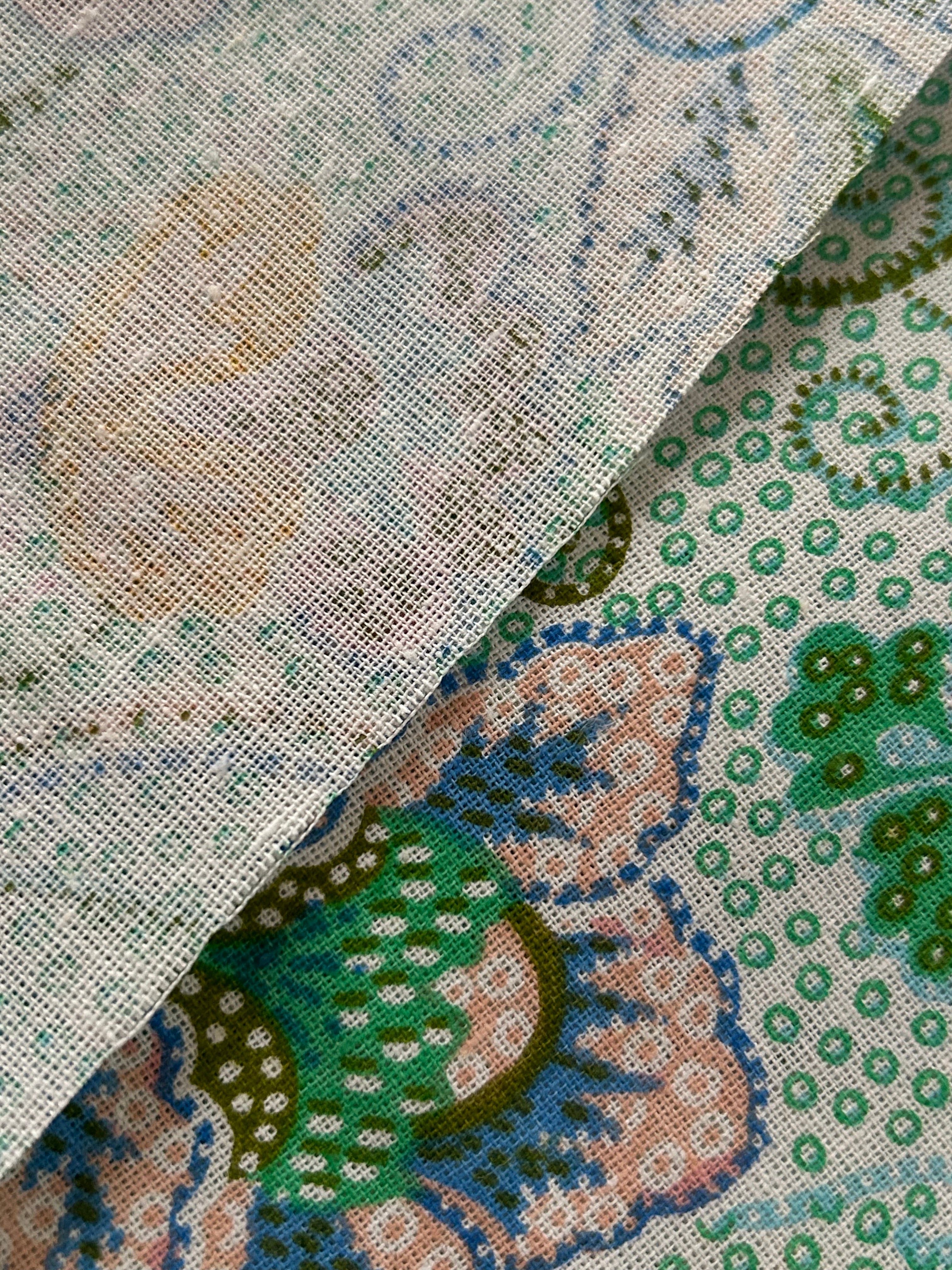 フランス 輸入コットンファブリック レトロポップな花柄 モザイク風 花柄 寒色系 ブルーグリーン カルトナージュ