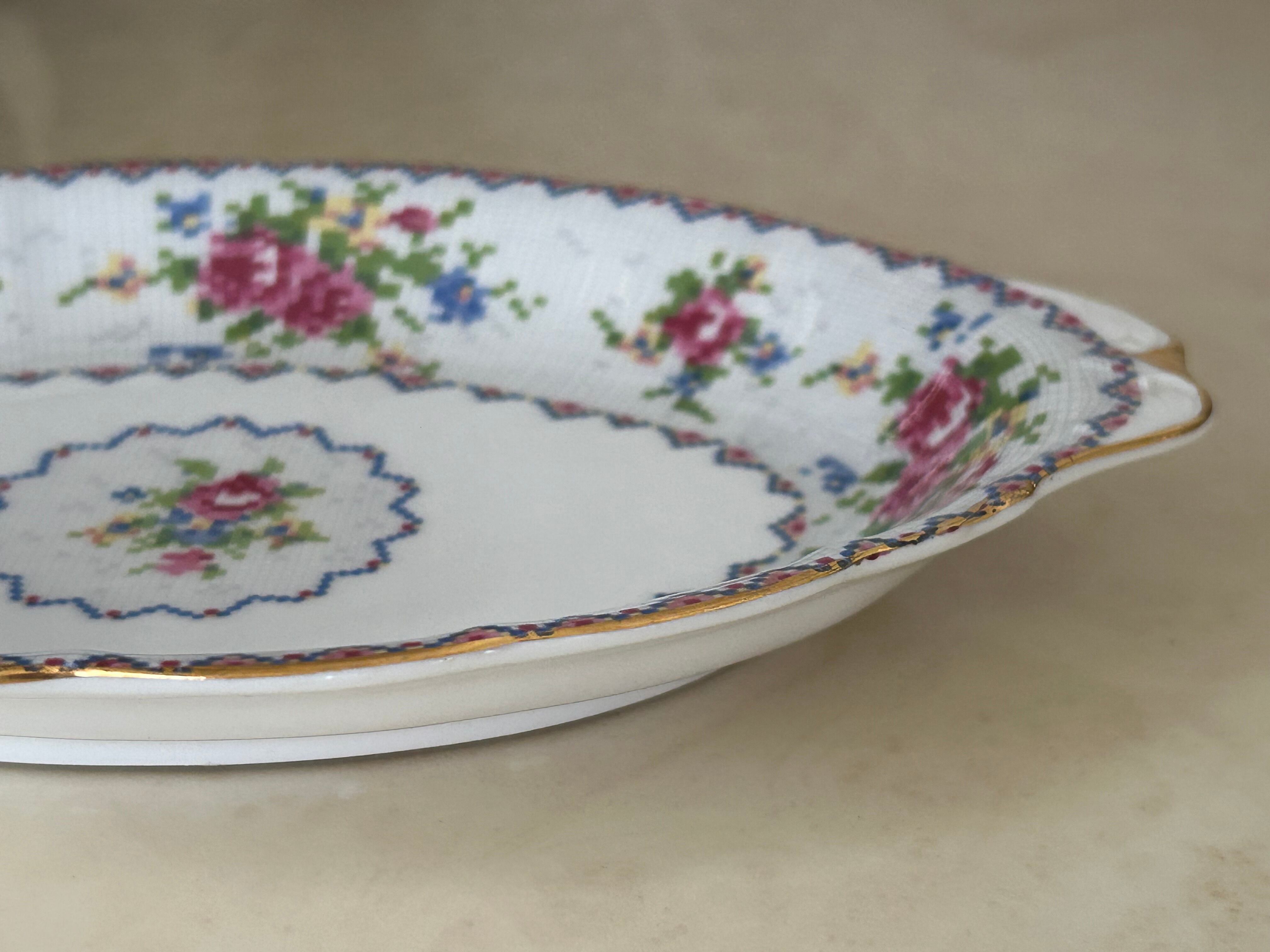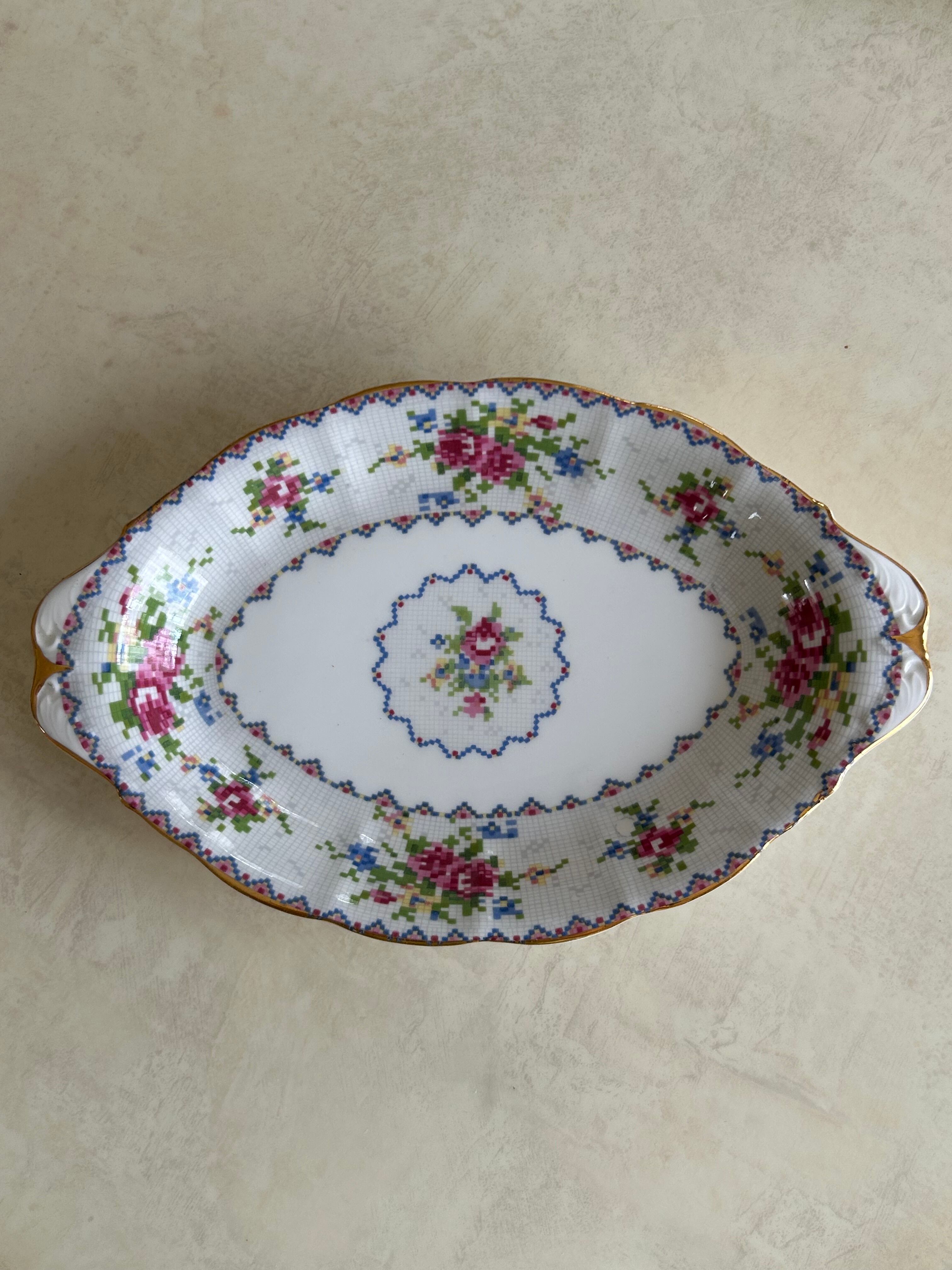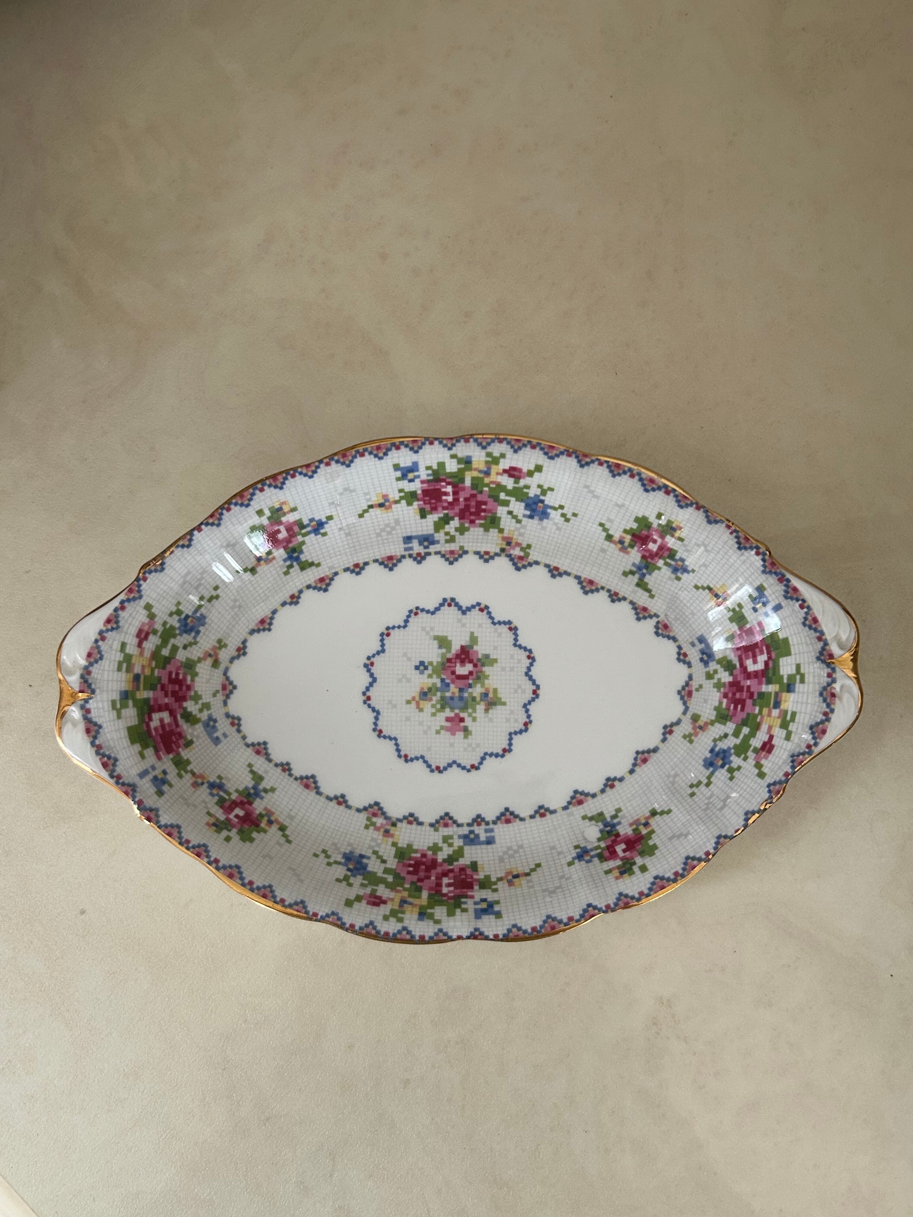 英国Vintage ROYAL ALBERT ロイヤルアルバート プチポワン リーガルトレイ 刺繍柄 テーブルウェア