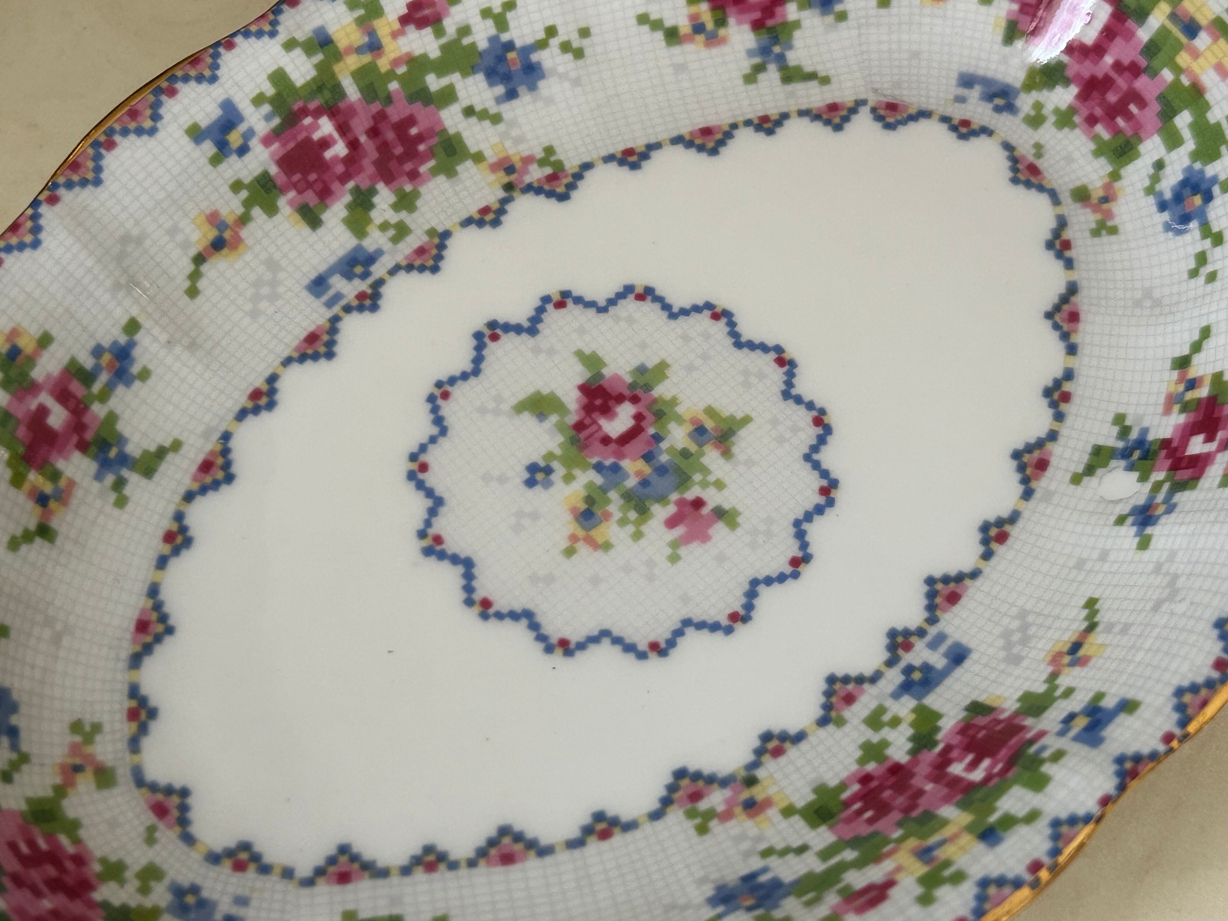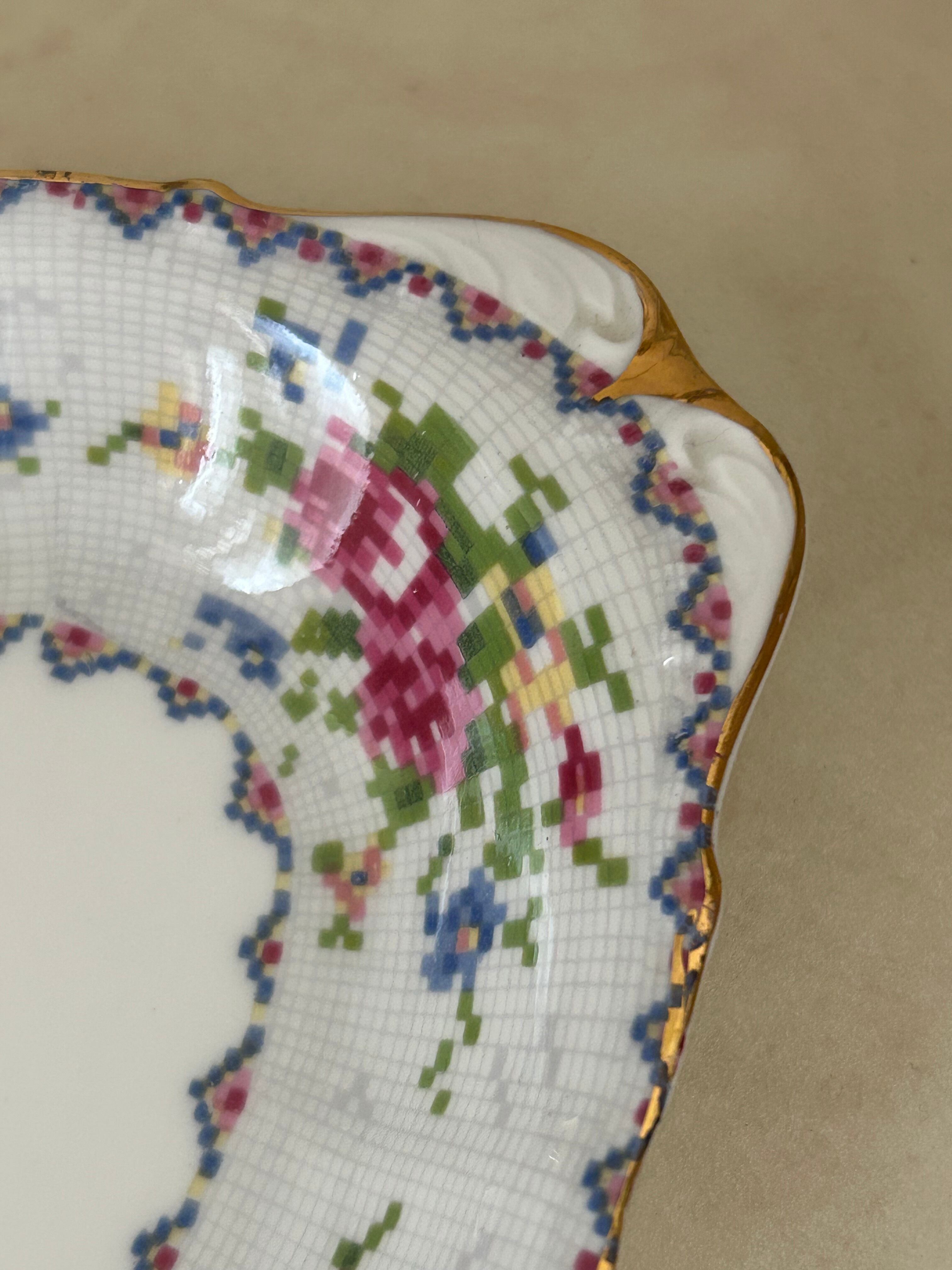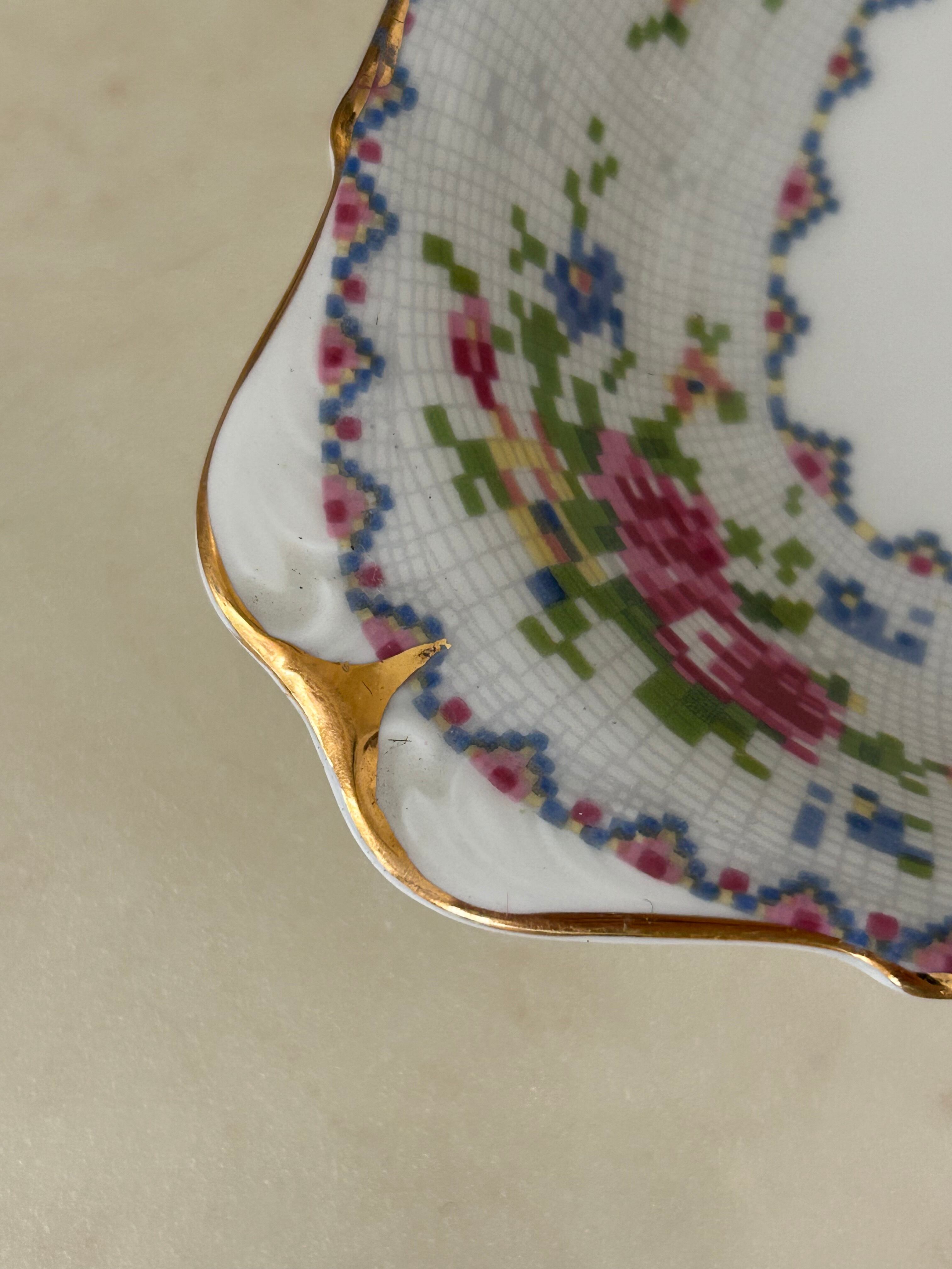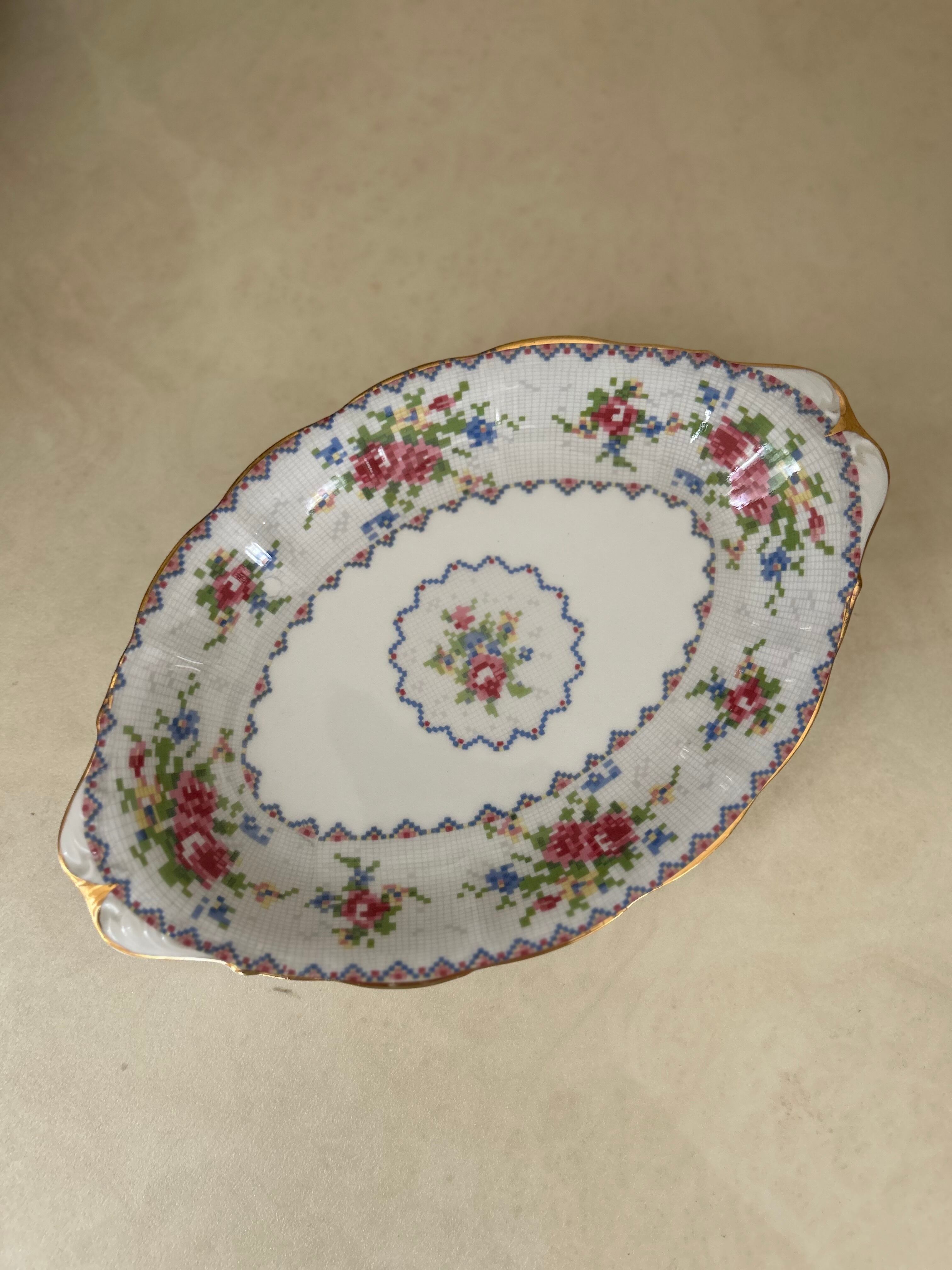 英国Vintage ROYAL ALBERT ロイヤルアルバート プチポワン リーガルトレイ 刺繍柄 テーブルウェア