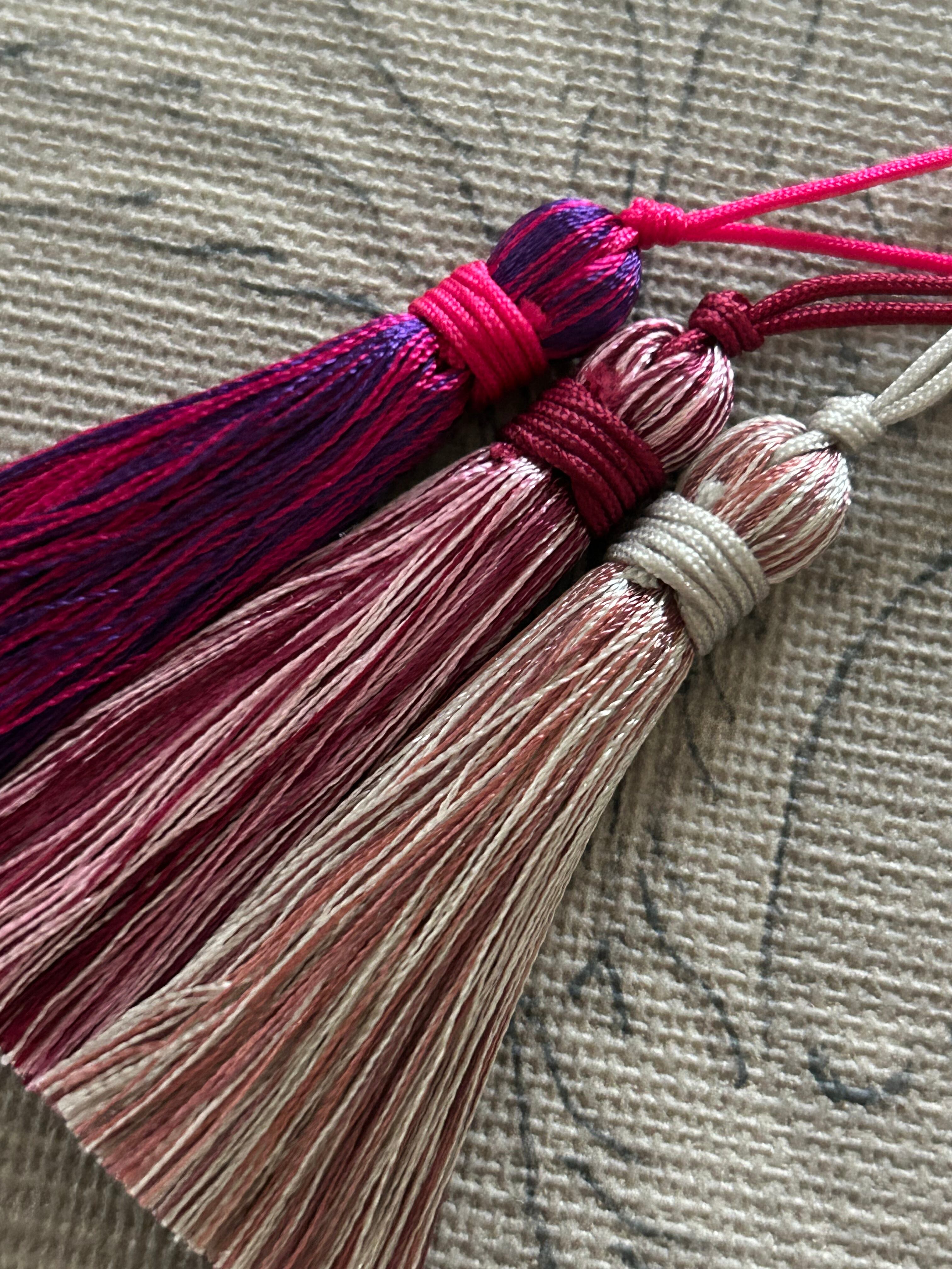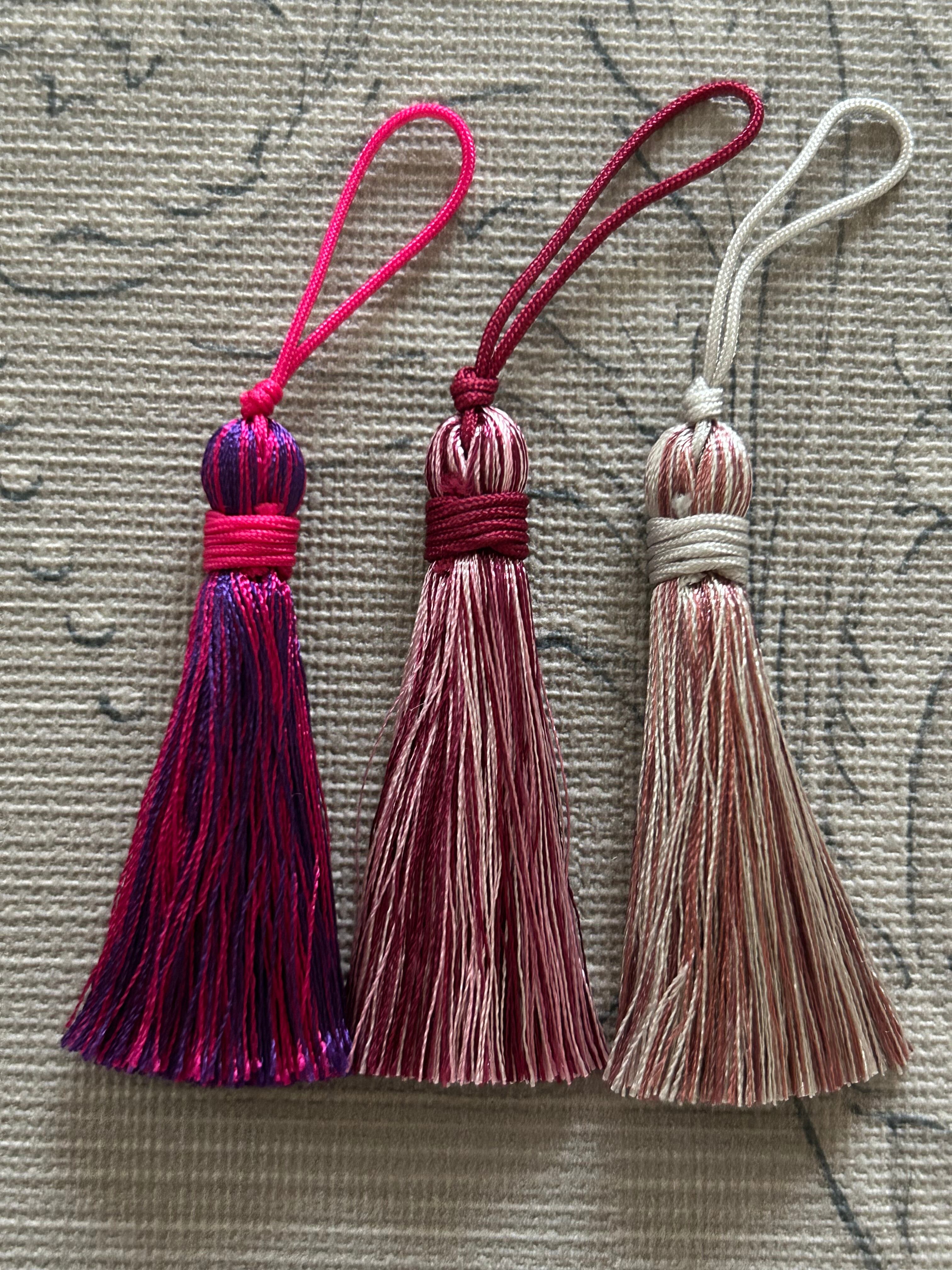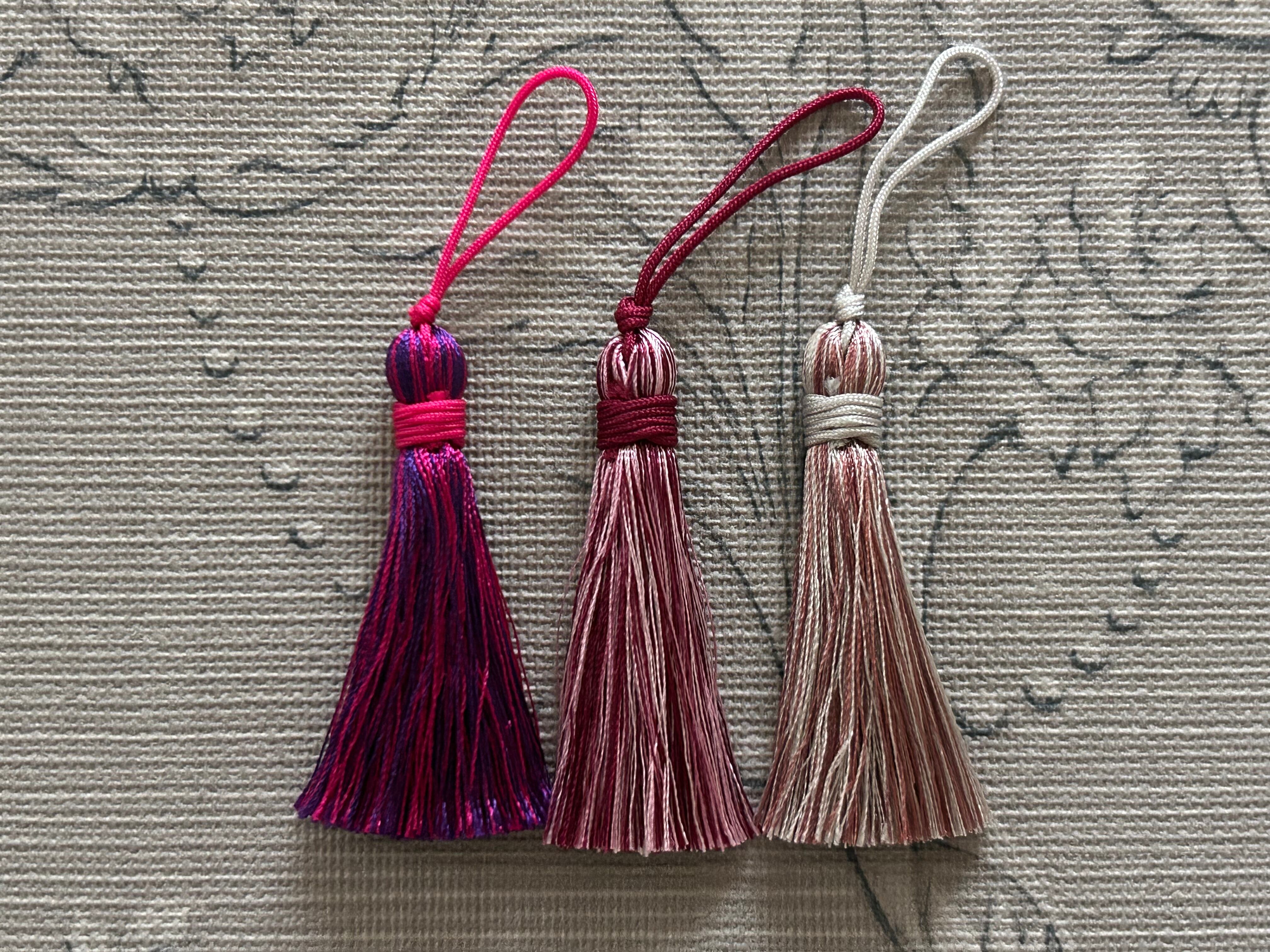 艶やかな糸、お色使いが可愛いシンプルなデザインのタッセル3本セットです。