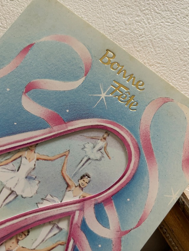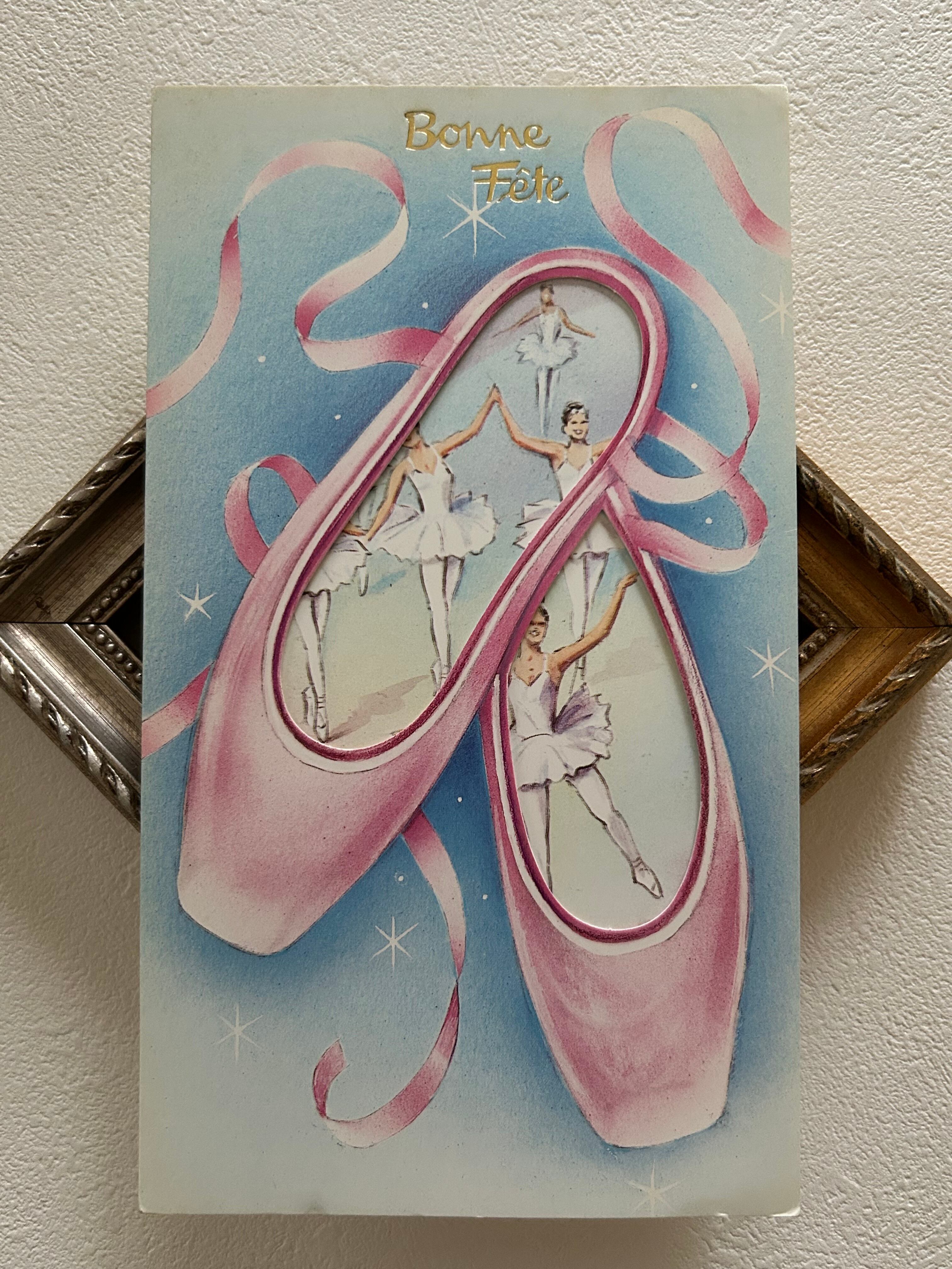 フランスヴィンテージカード 仕掛けカード バレエ バレリーナ トウシューズ Bonne Fete インテリア 見開きタイプ