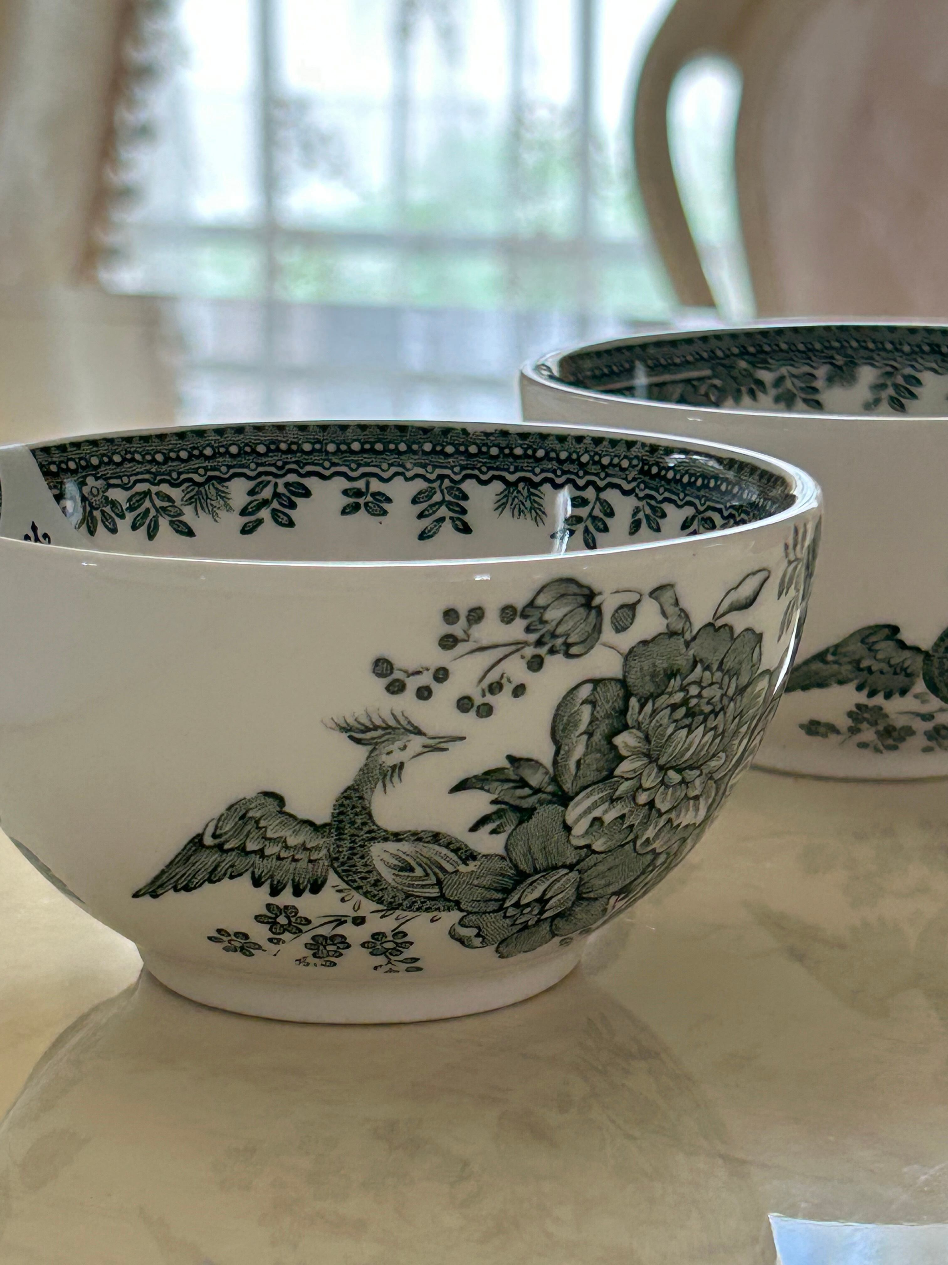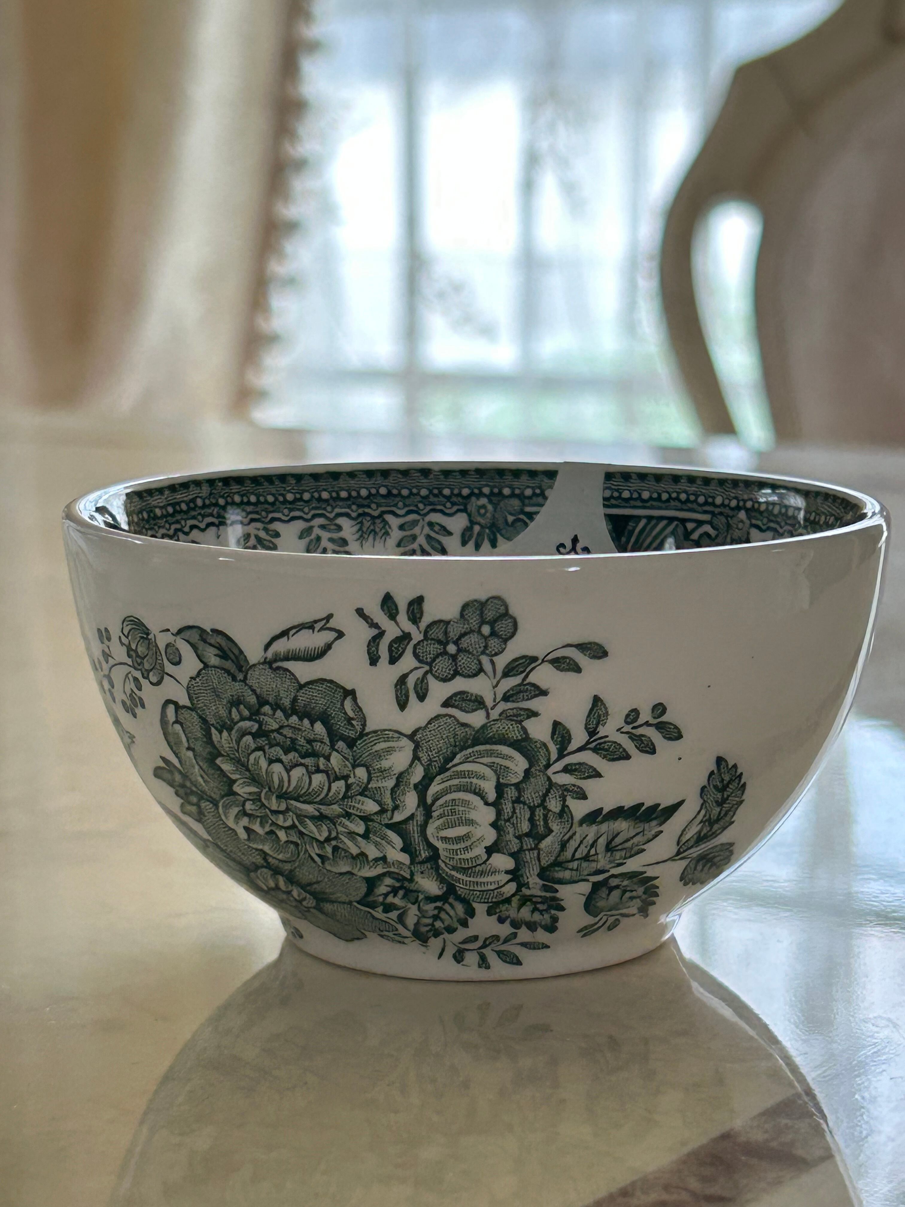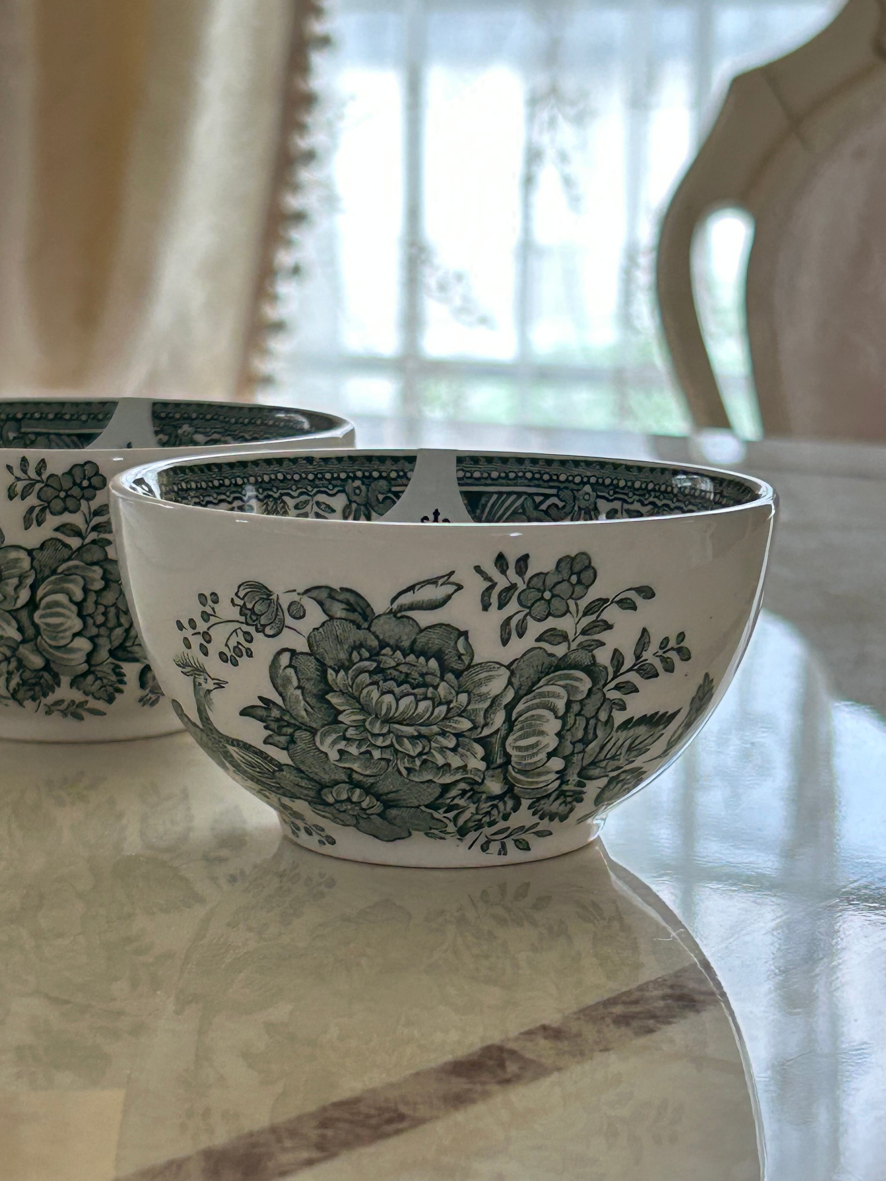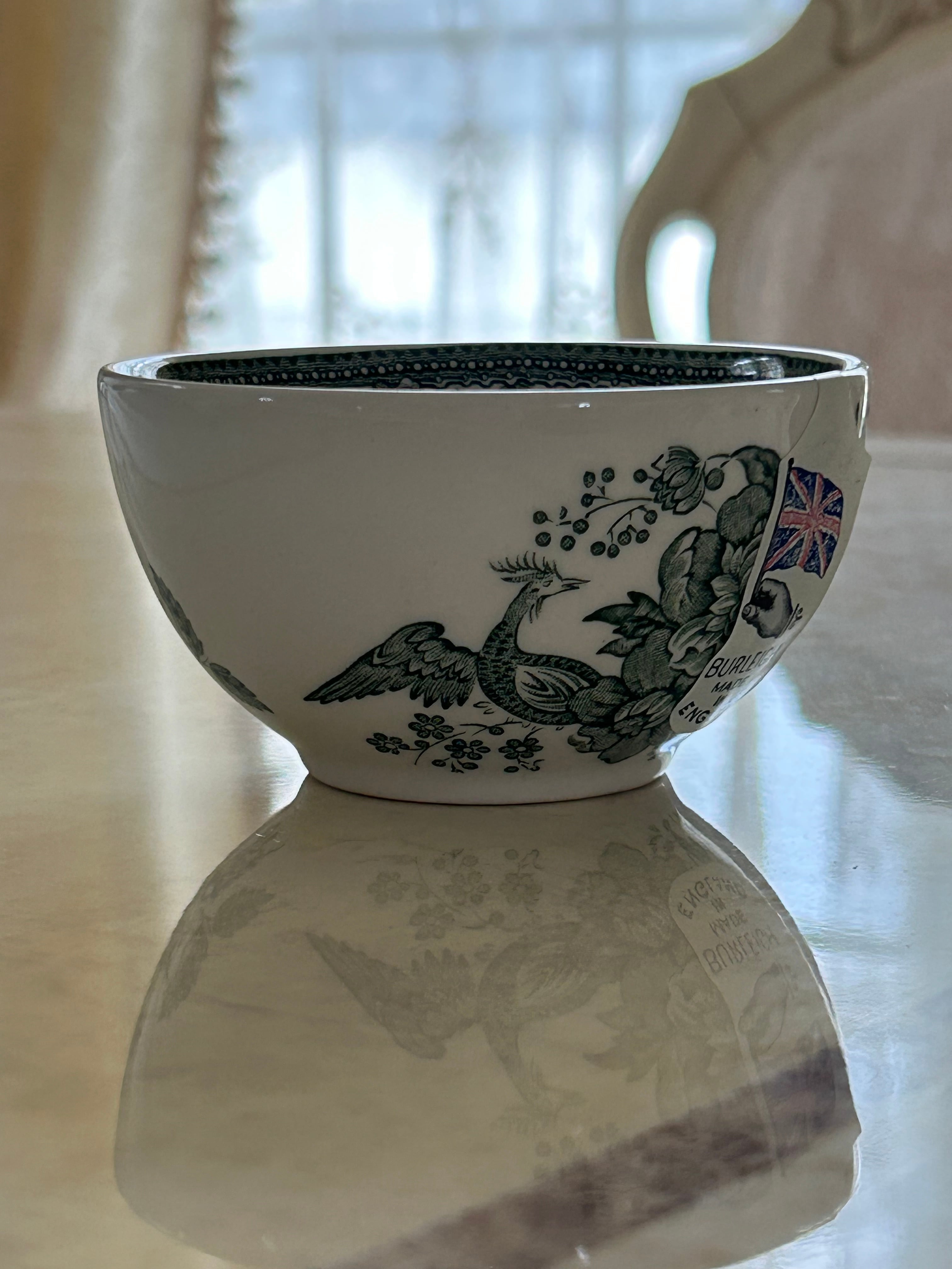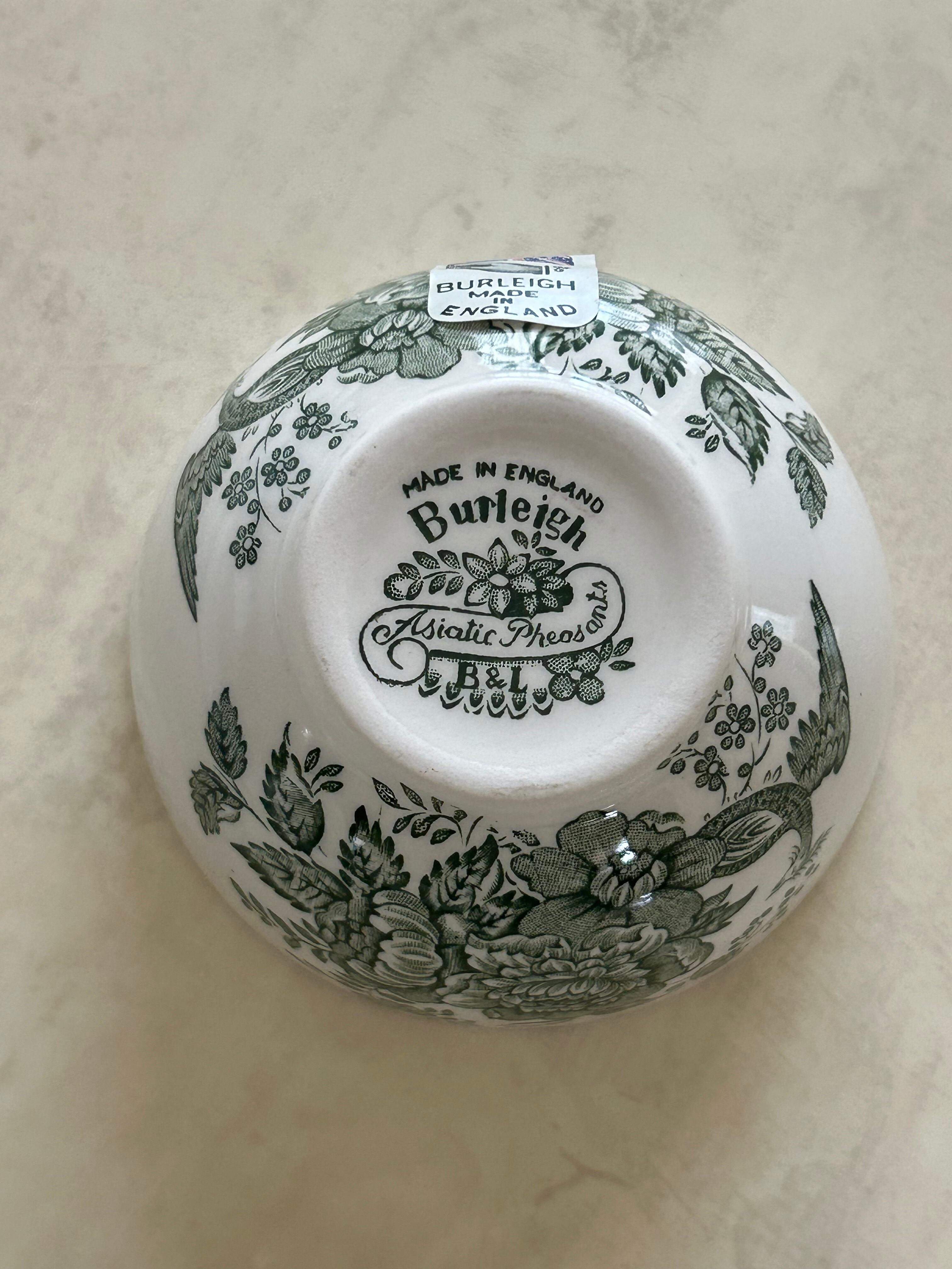 英国 Burleigh バーレイ社 グリーンアジアンティックフェザンツ シュガーボウルS カフェオレボウル ボウルプレート