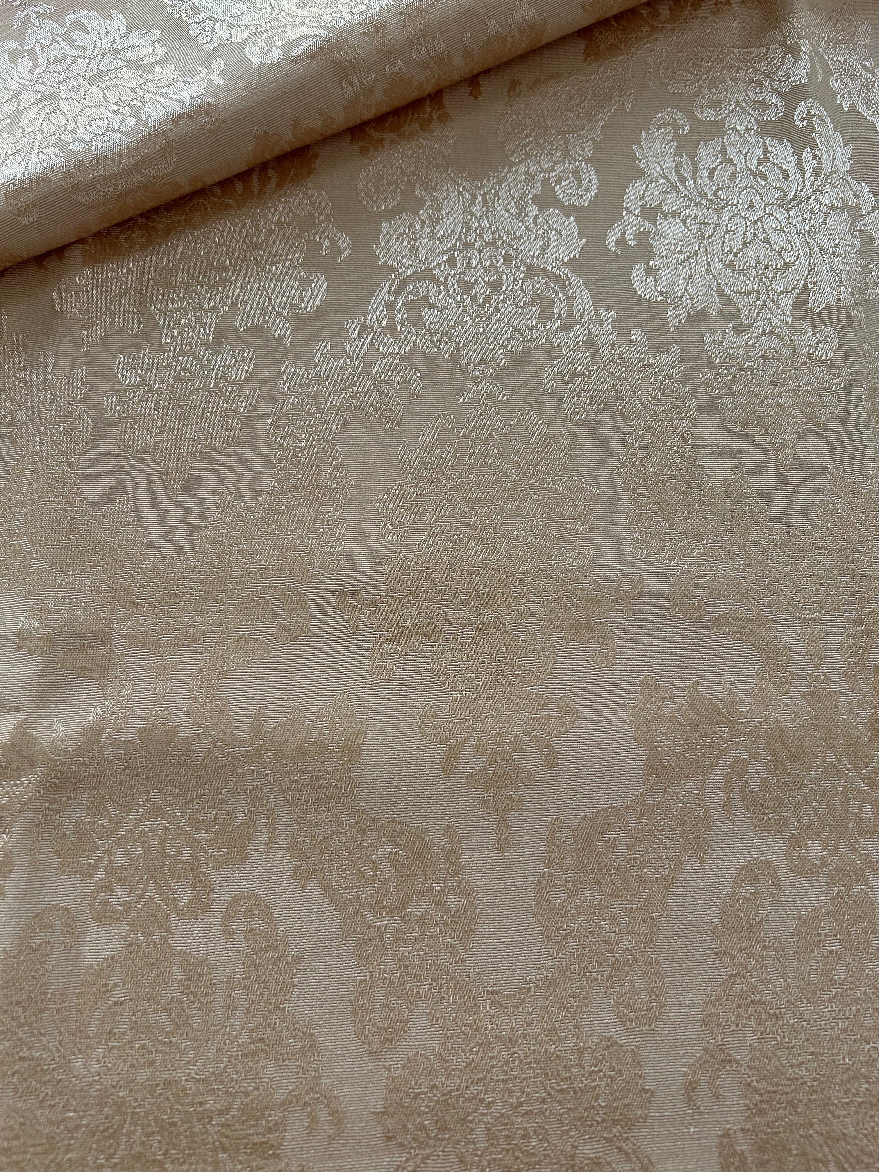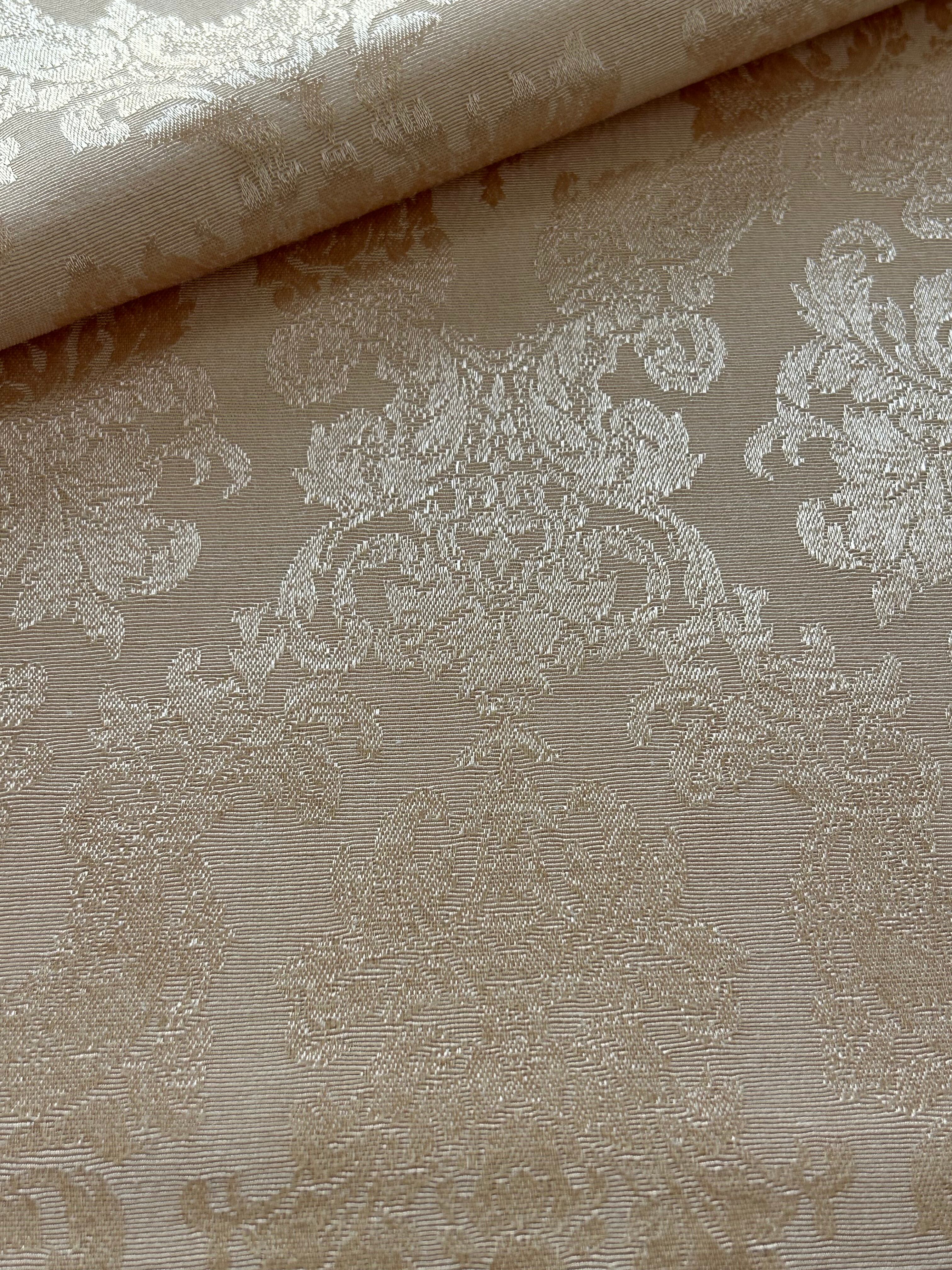 輸入インテリアファブリック カットファブリック シャンパンベージュ ダマスク柄 カルトナージュ スツール モアレ