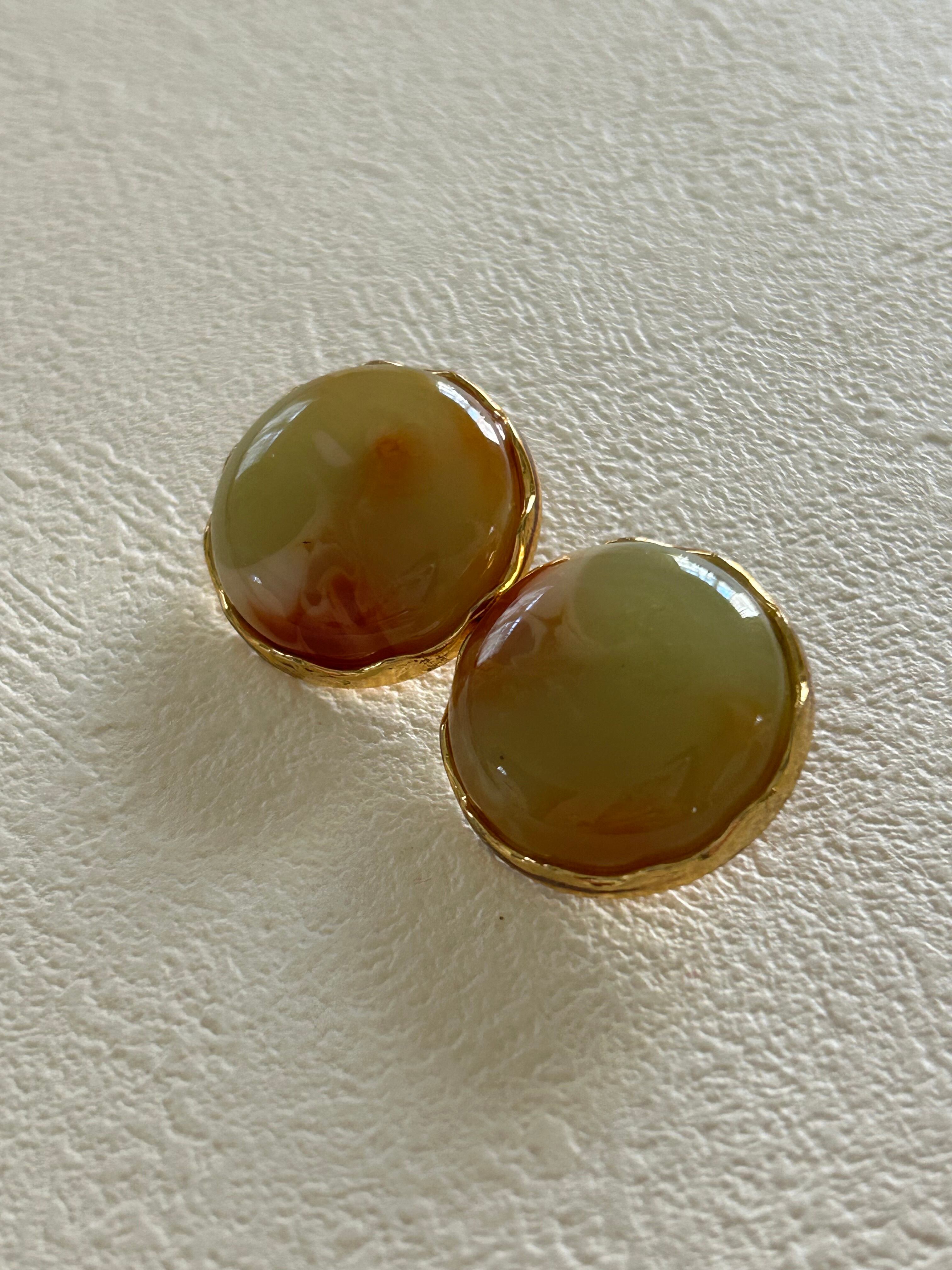 Japanese Vintage ヴィンテージボタン カボション イエロー系 マーブル 22mm アクセサリーパーツ 装飾材