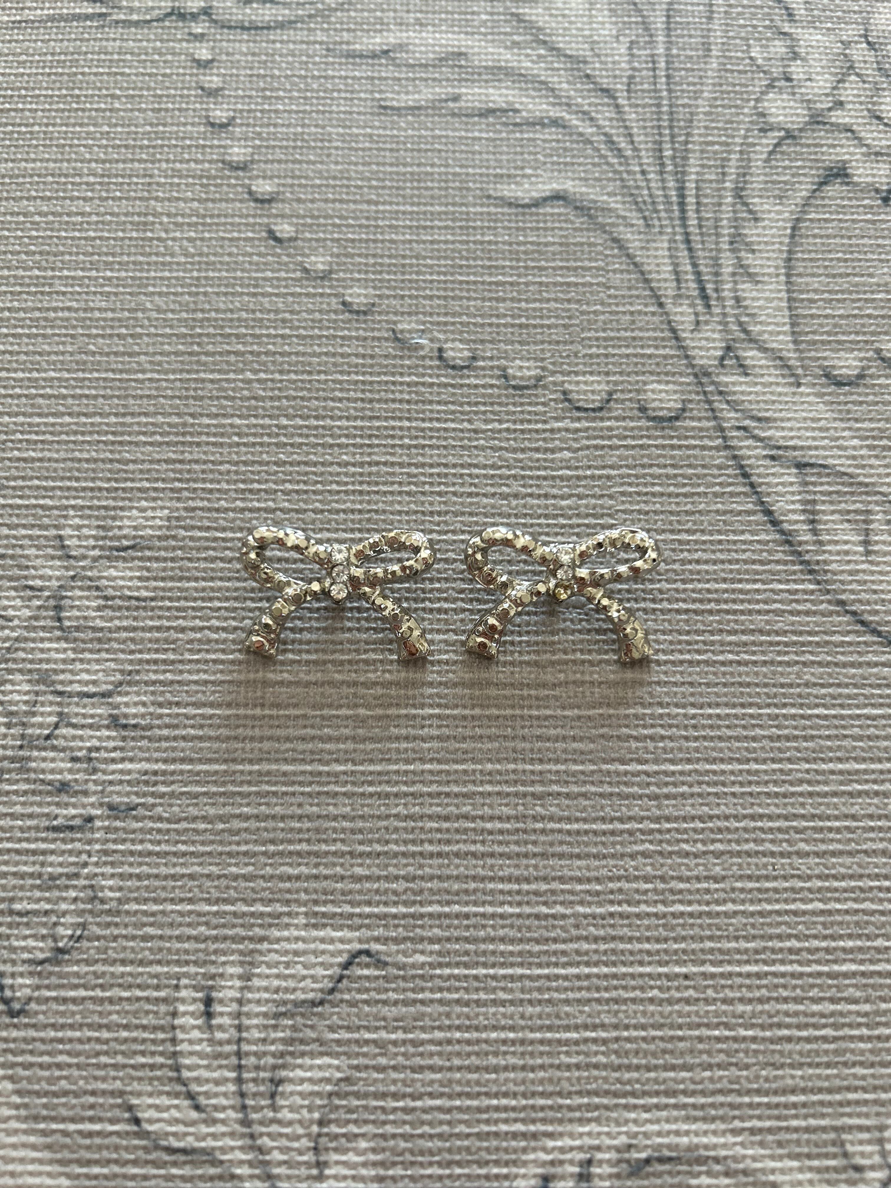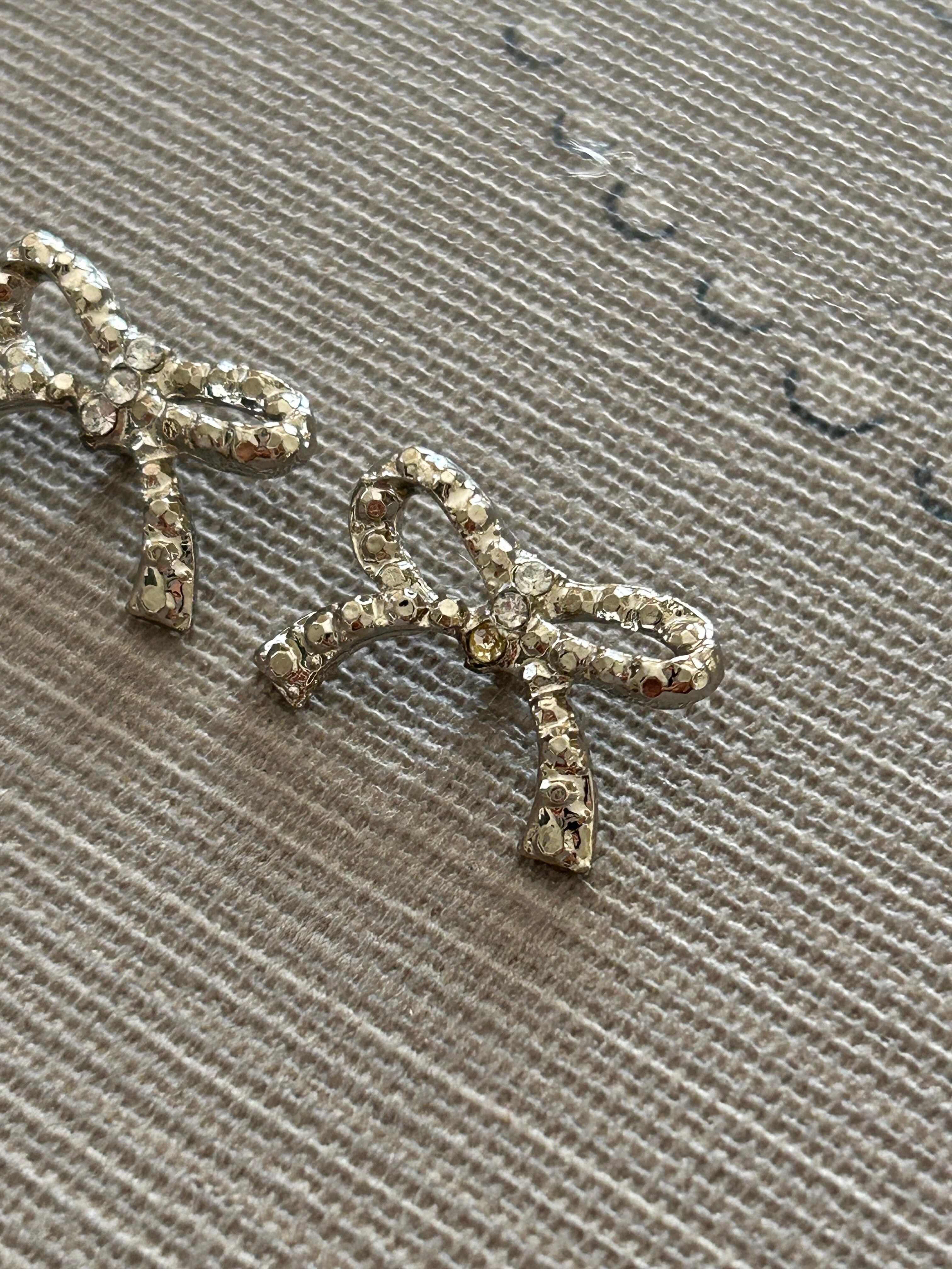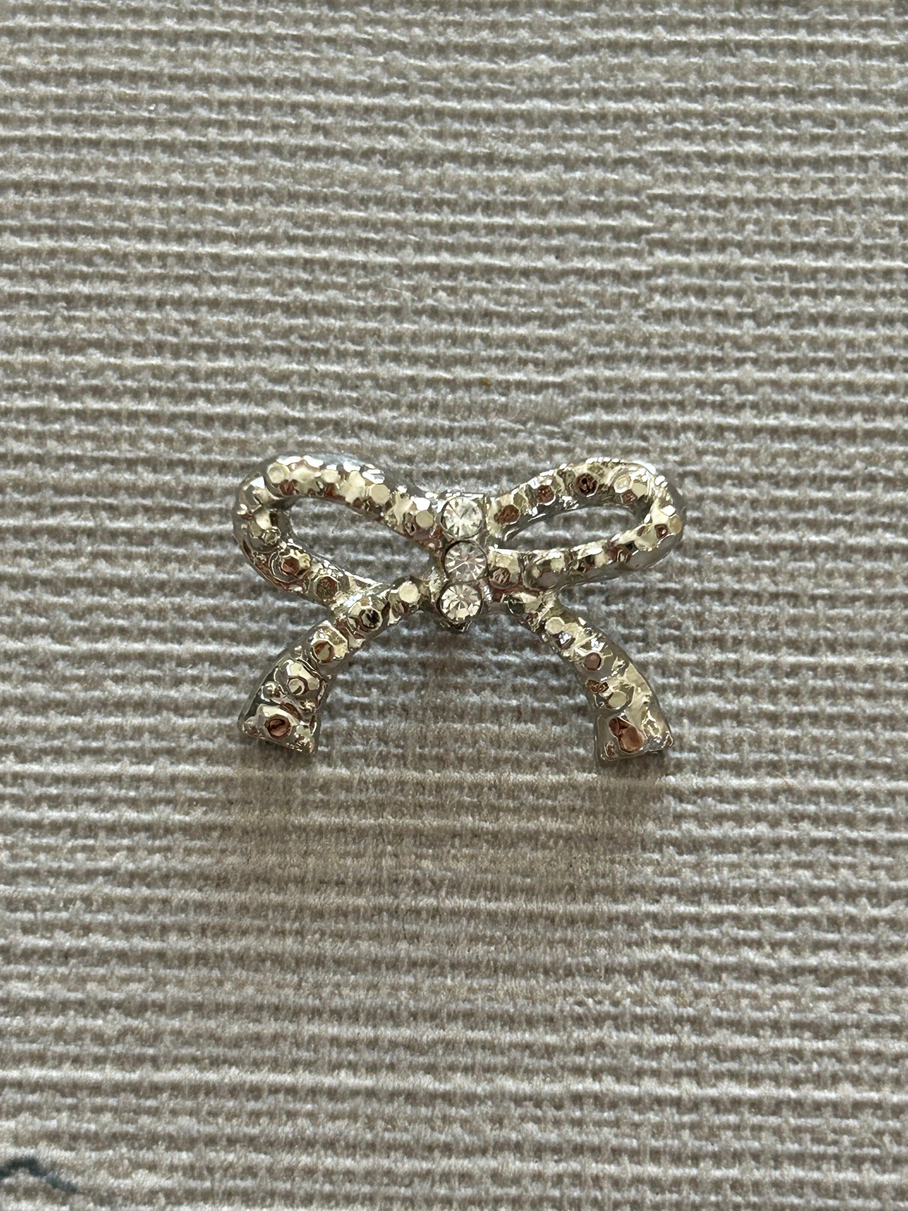 輸入デザインボタン Ruban リボン メタル×ストーン シルバー アクセサリーパーツ デコレーション材 カルトナージュ 飾りボタン