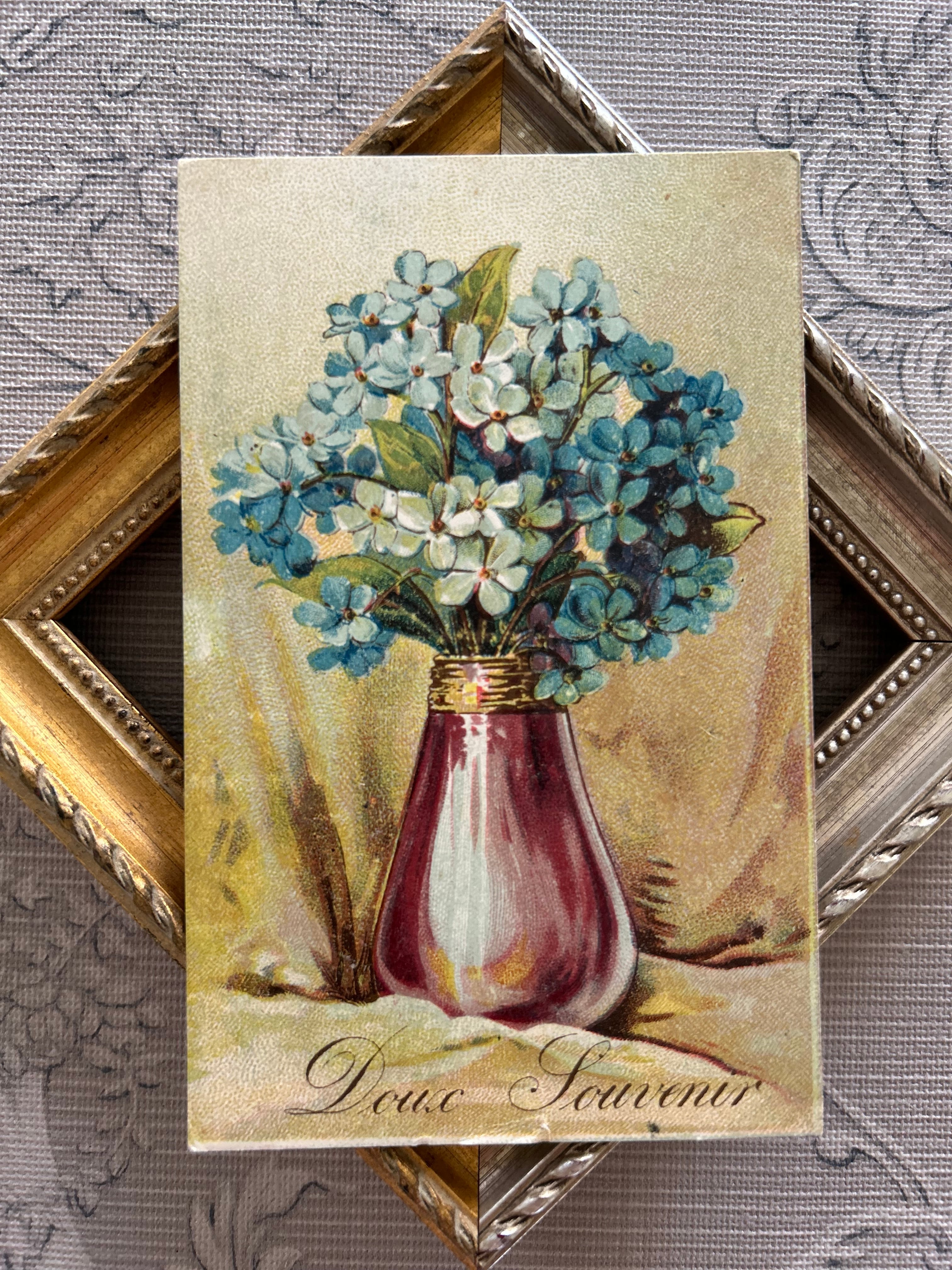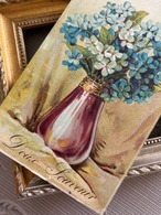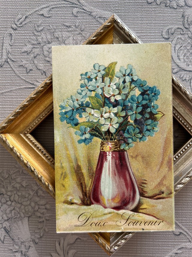 フランスアンティーク ポストカード勿忘草のアレンジメント 額装 インテリア 勿忘草