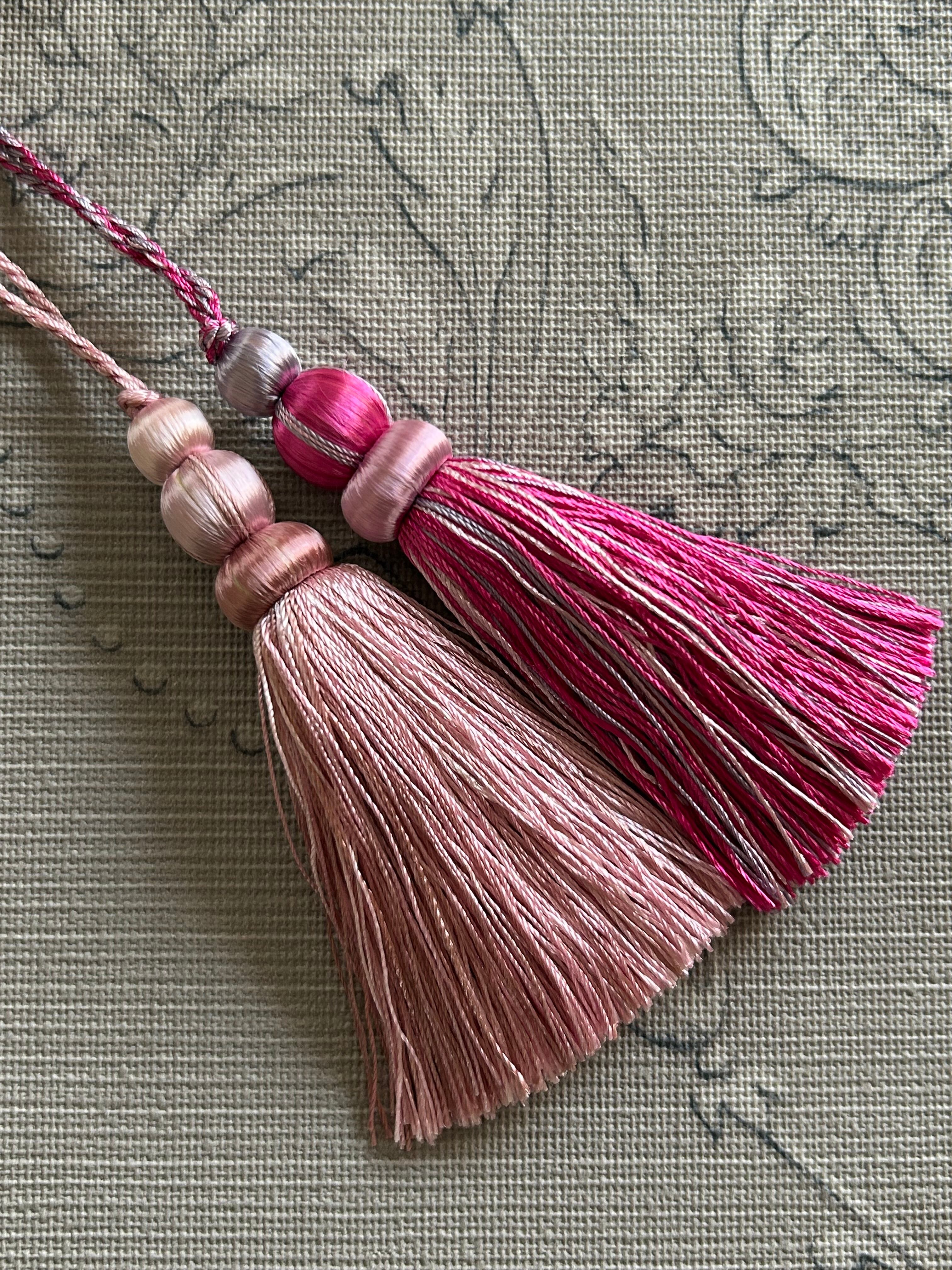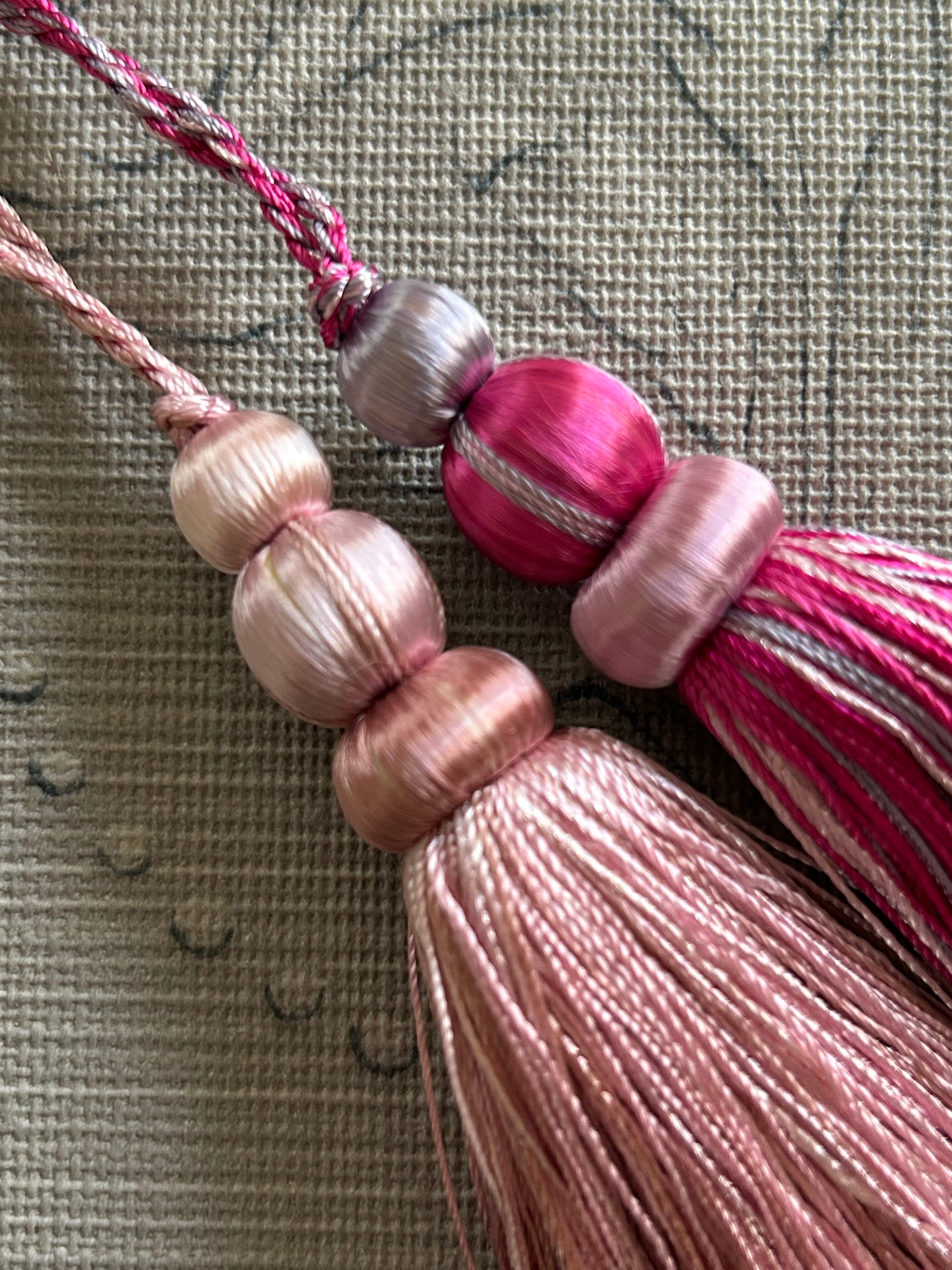 輸入デザインタッセル フューシャーピンク/さくらピンク 巻玉タッセル カルトナージュ バッグチャーム アクセサリーパーツ