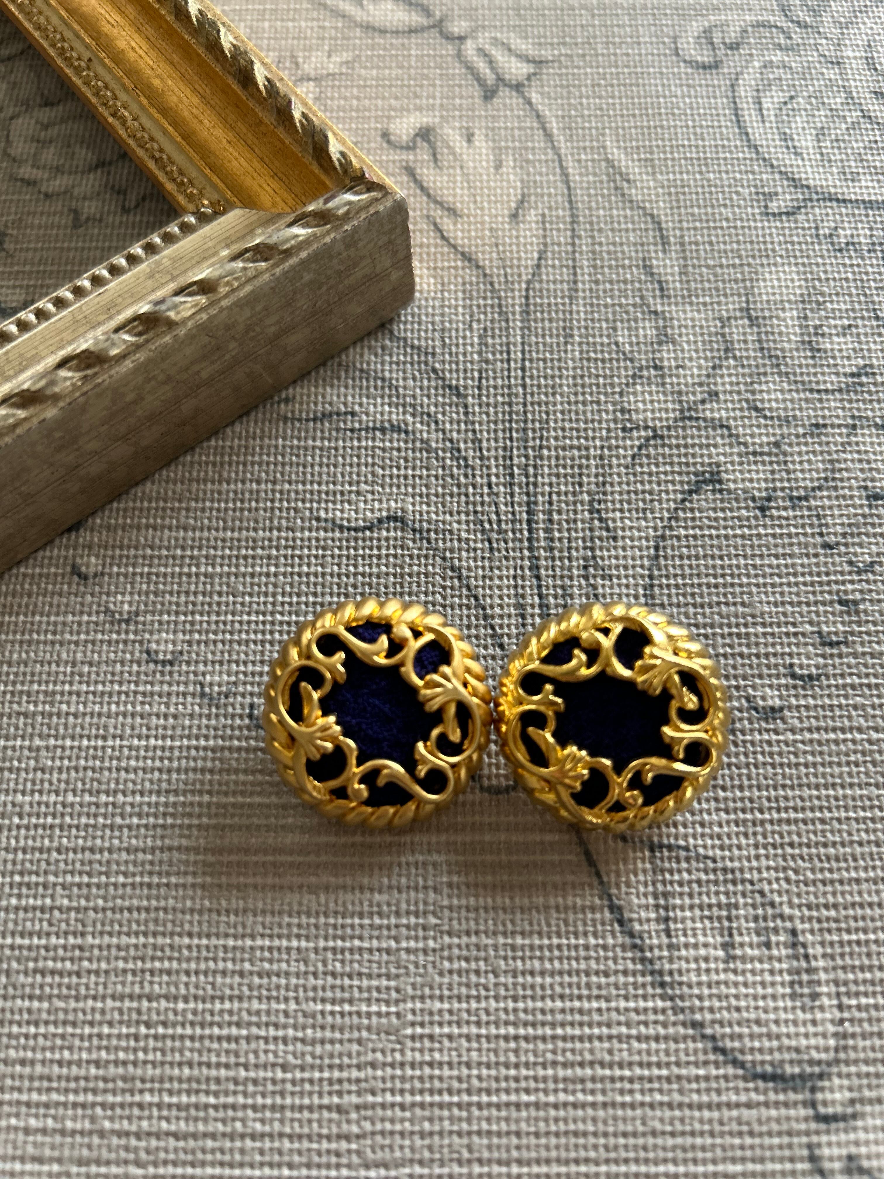 くるみボタンにゴールドのデコラティブな透かしのデコレーションが美しくクラシカルなボタンです。