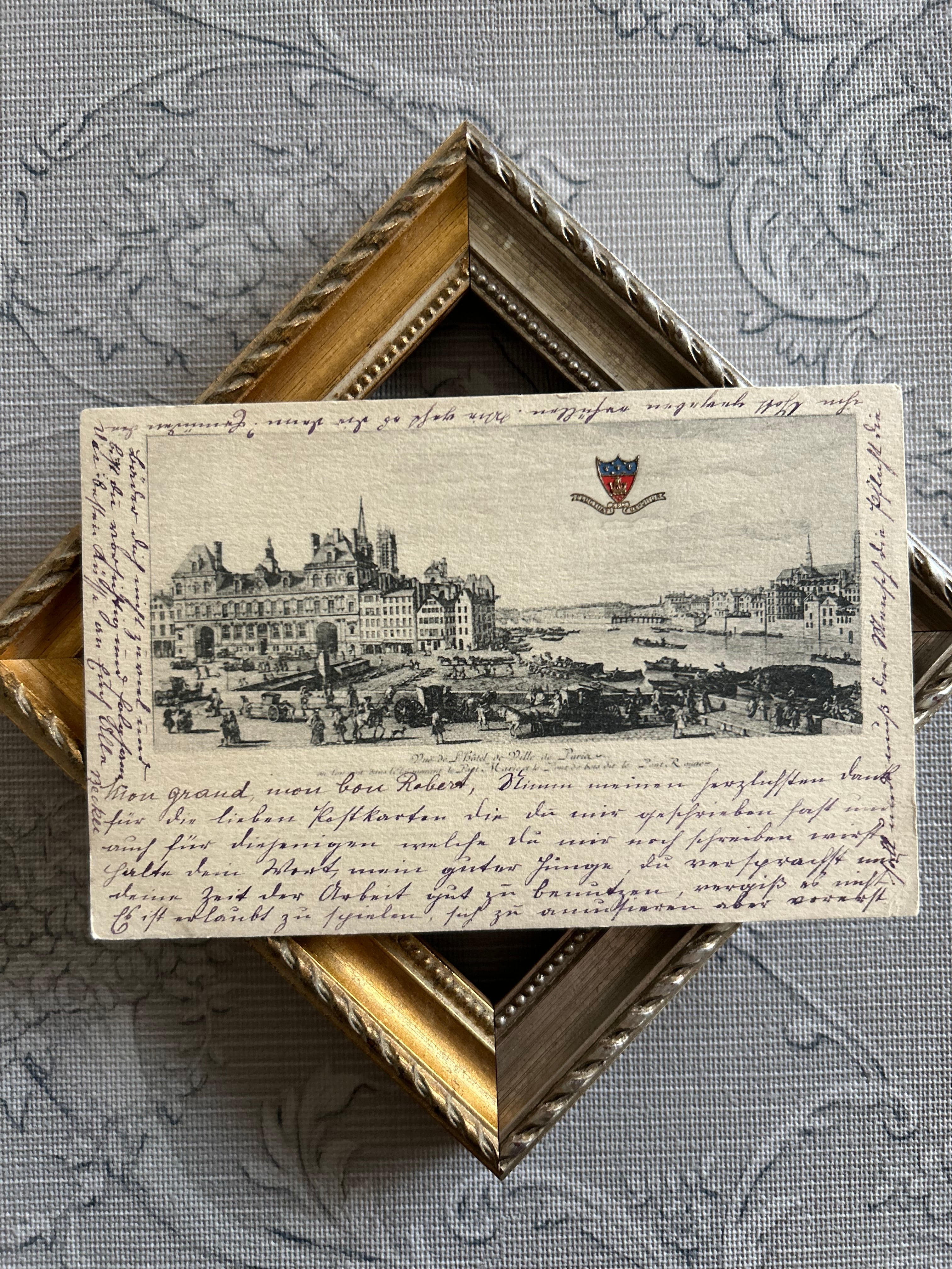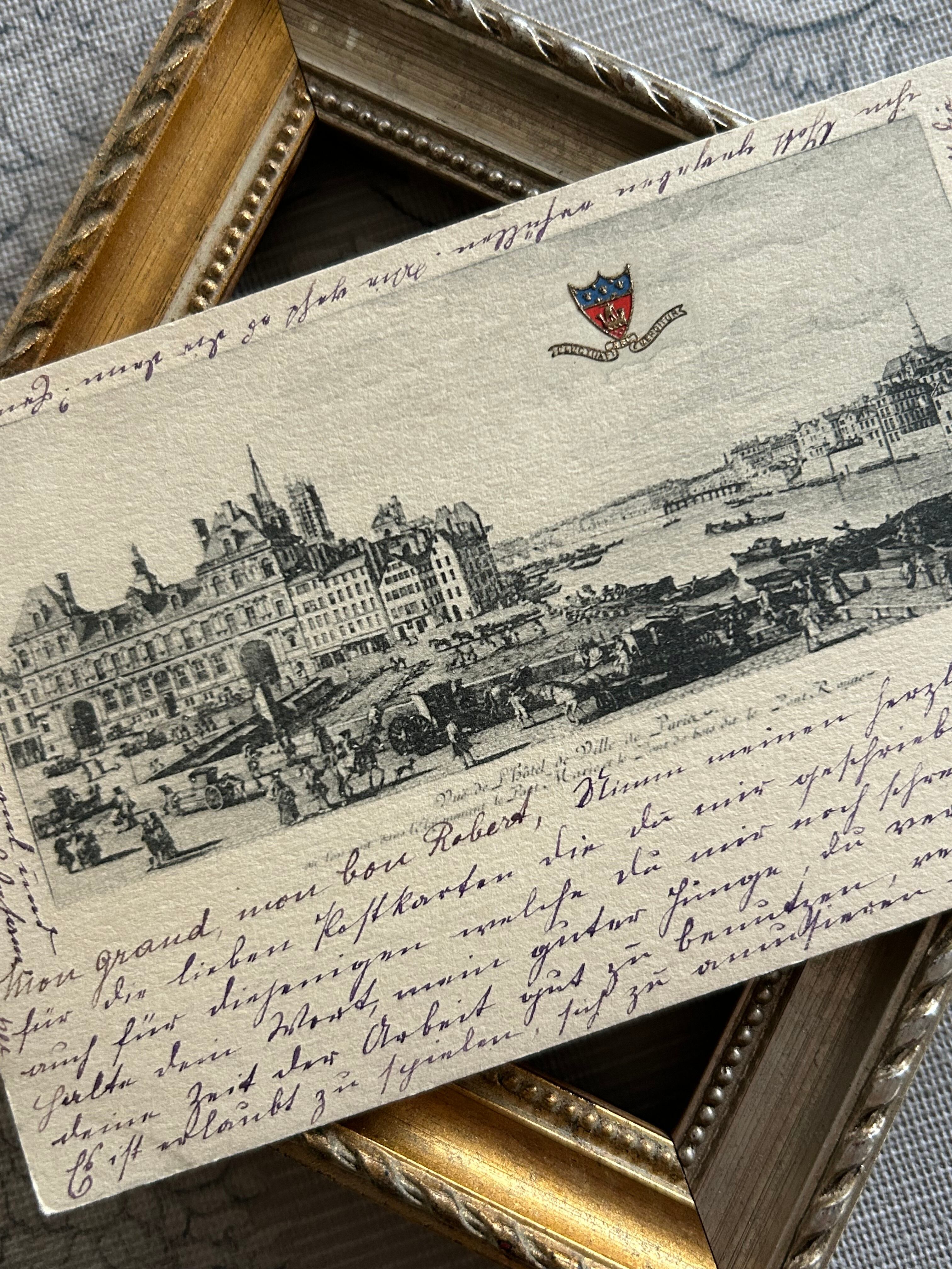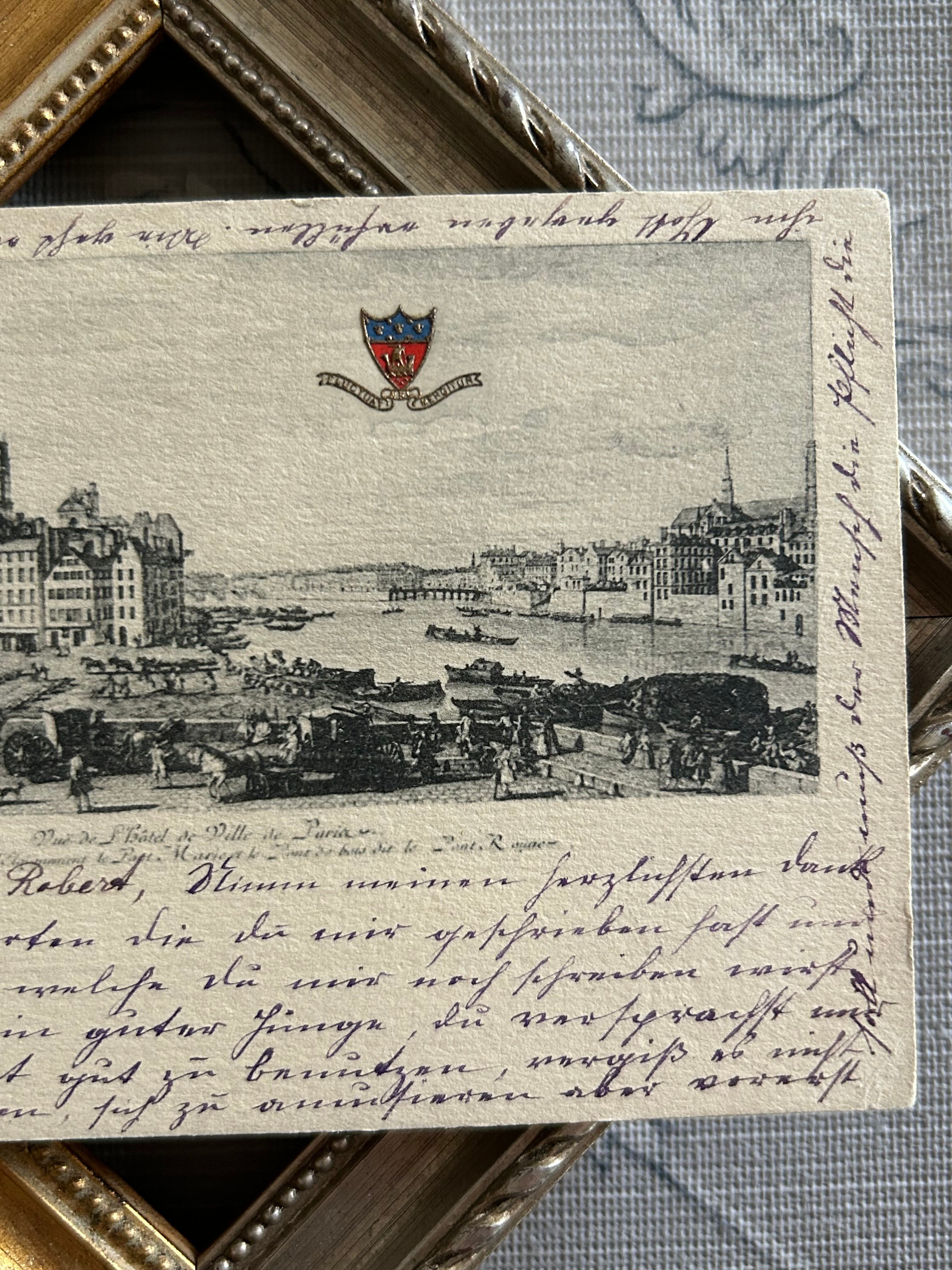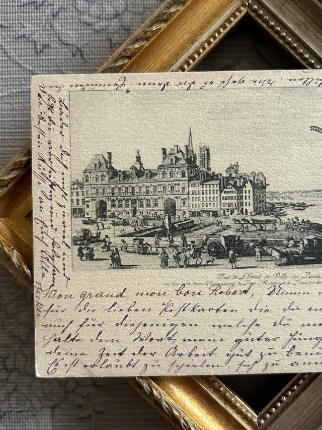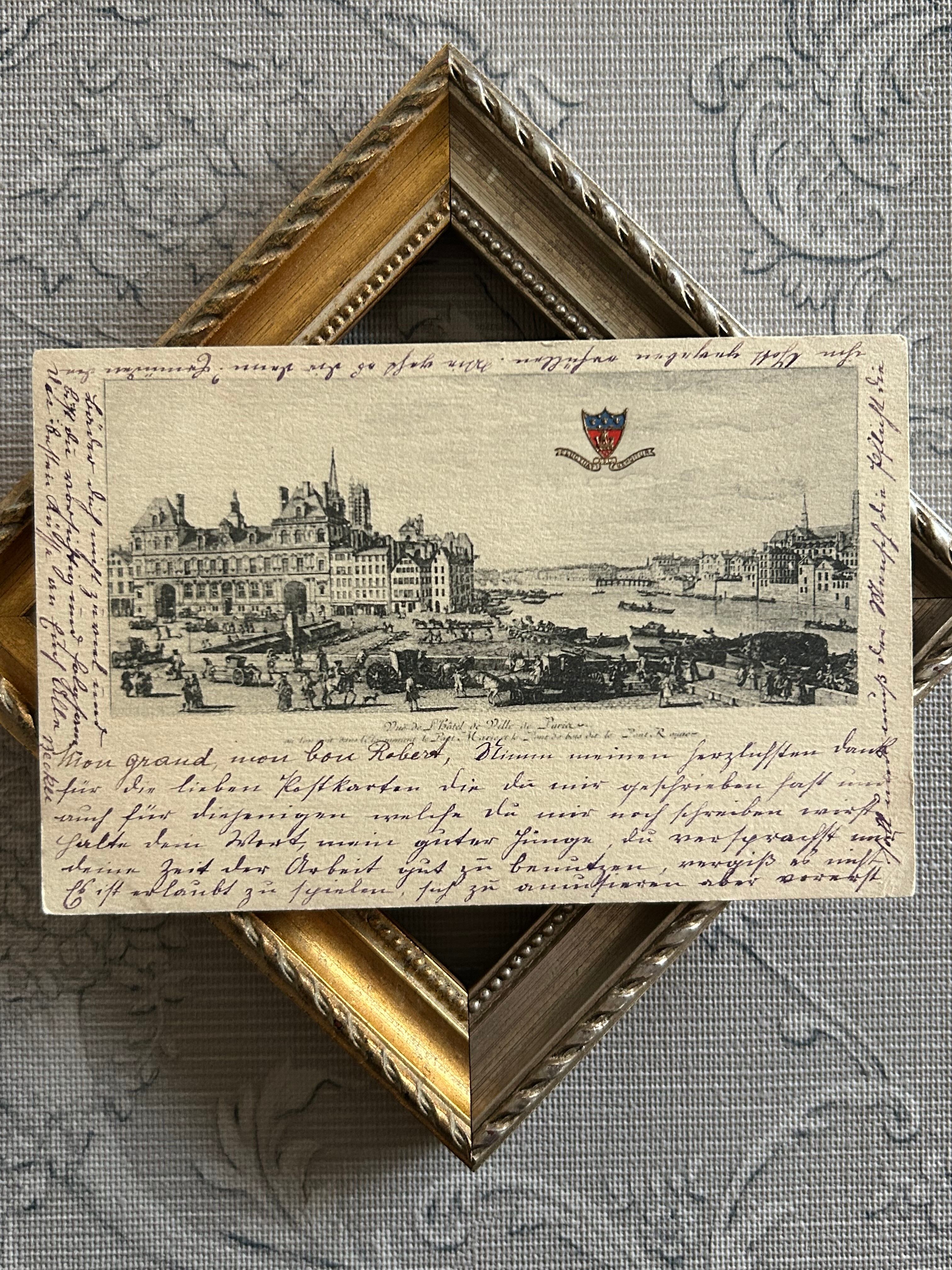 アンティークポストカード クラシカルな風景画 fluctuat nec mergitur 額装 インテリア フランス コレクション BE