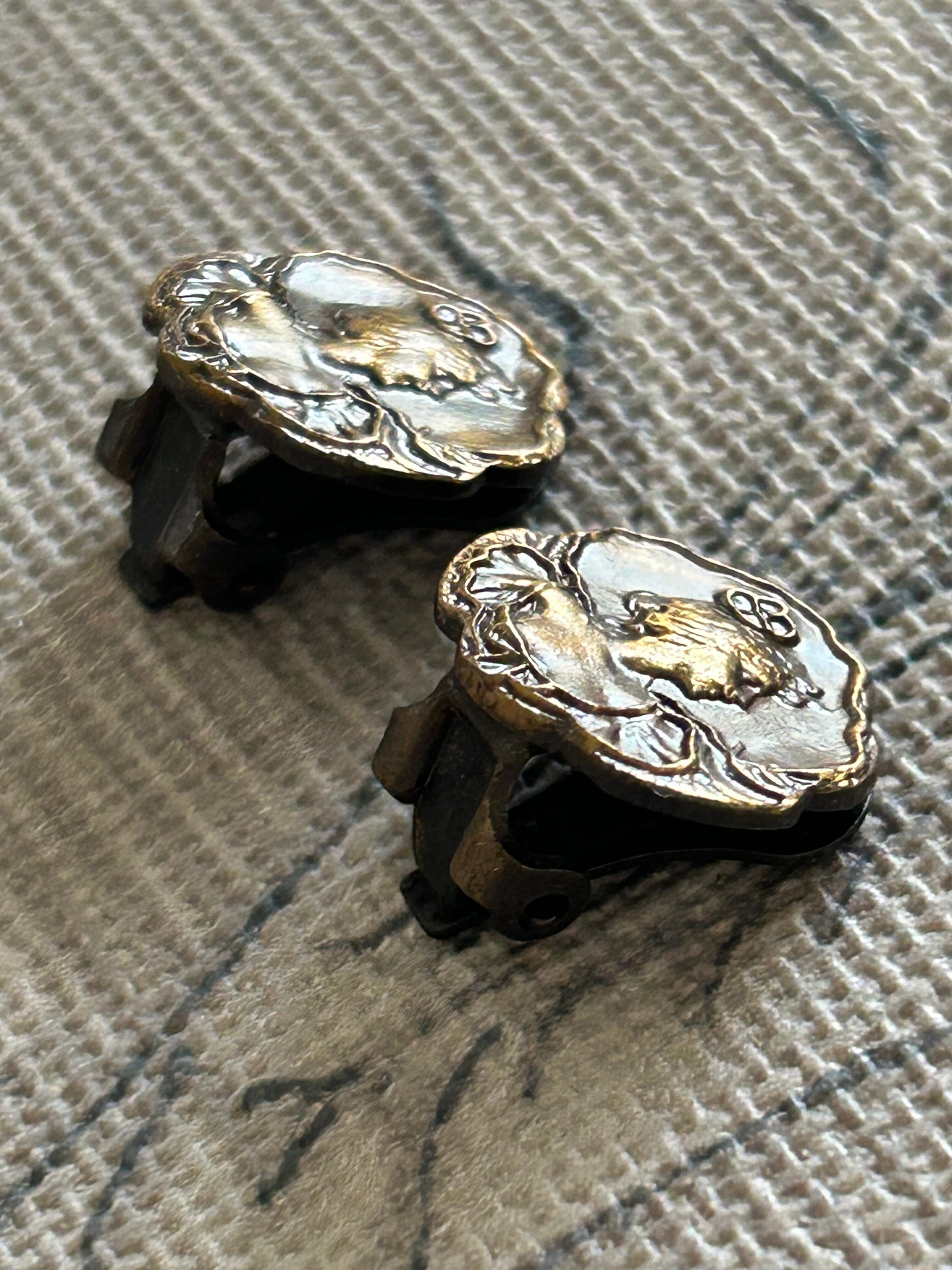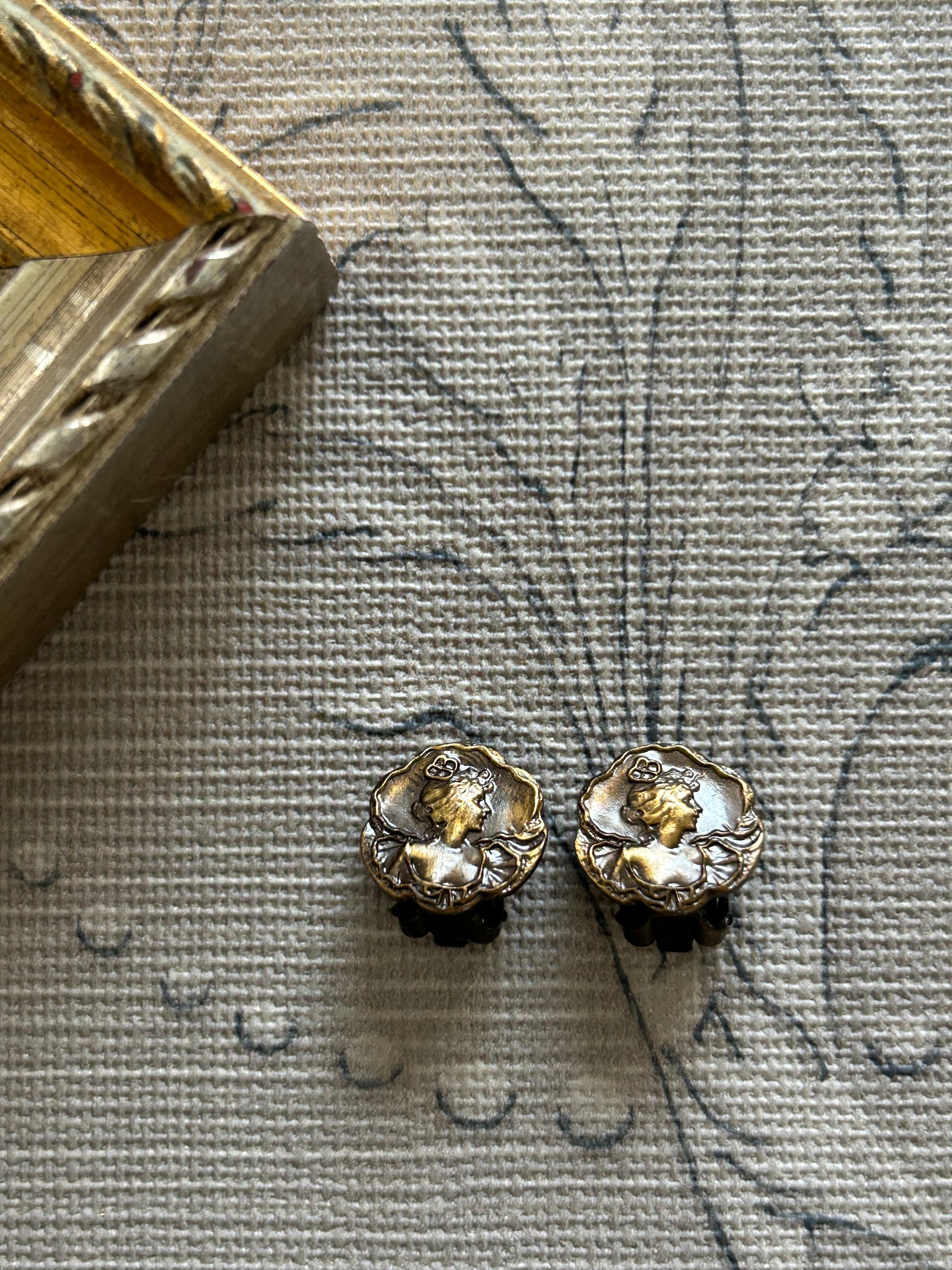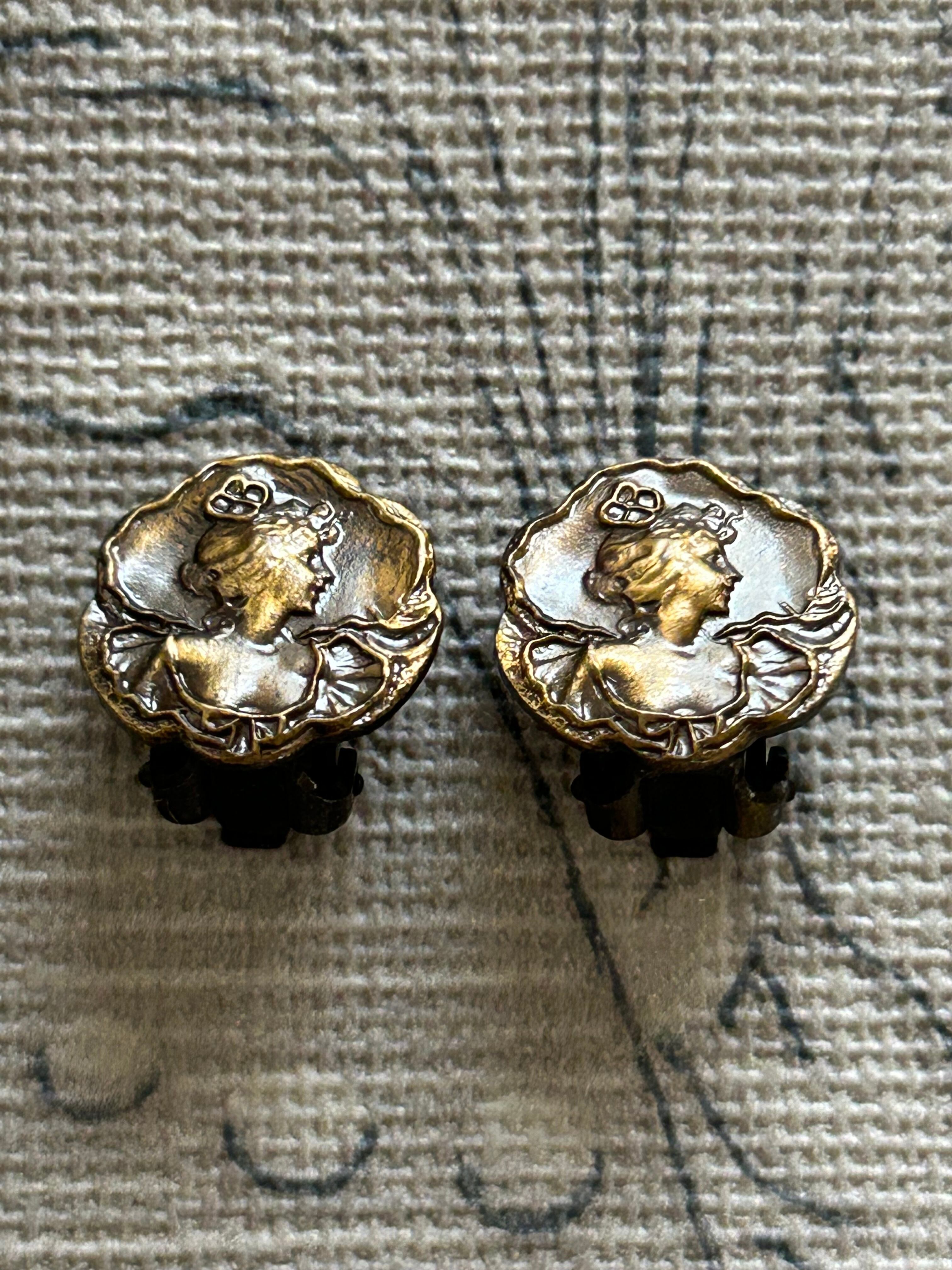 ドイツ Vintageイヤリング カメオ風 貴婦人のエンボス柄 デッドストック アクセサリー 金古美 ブロンズカラー