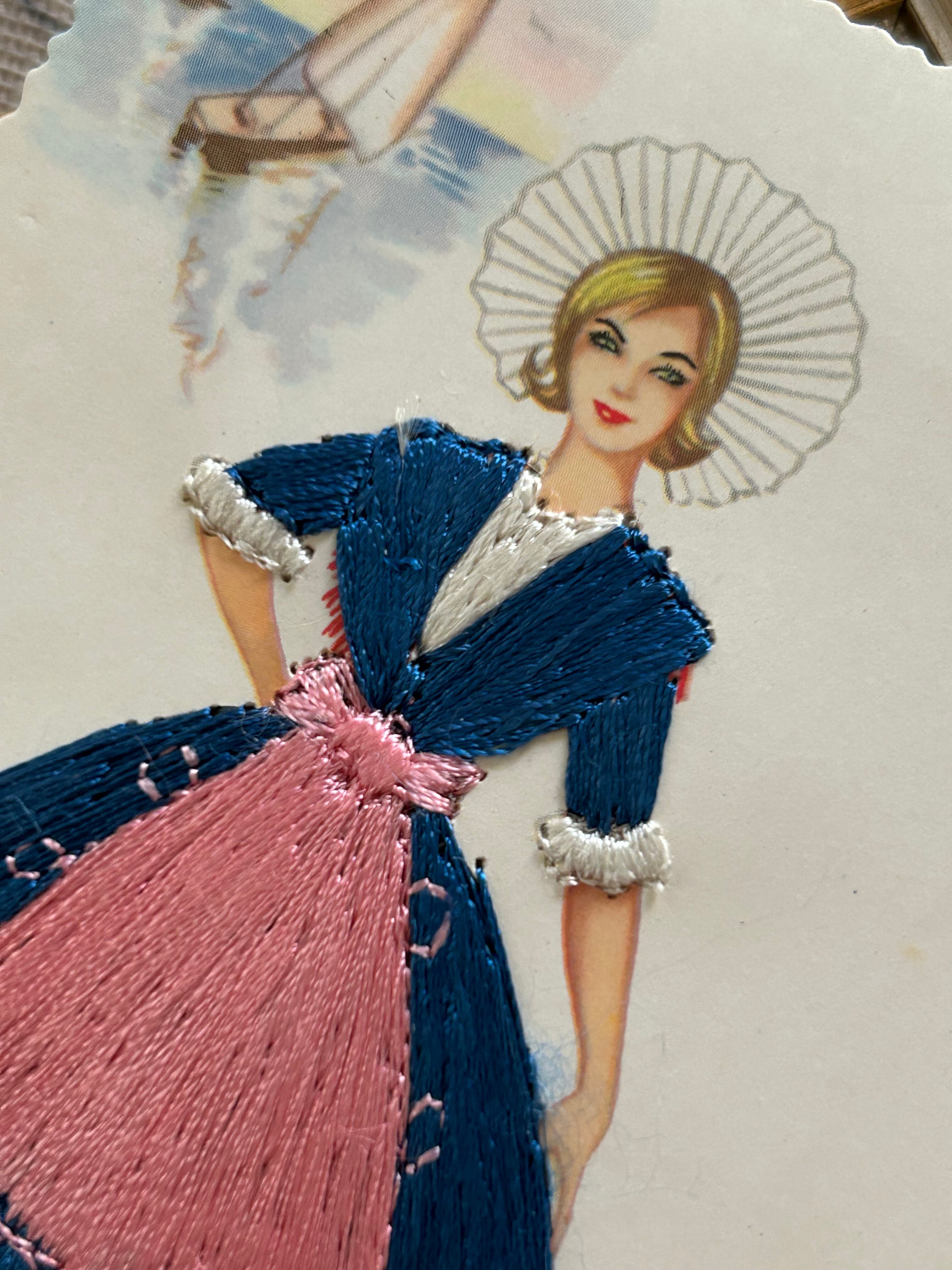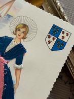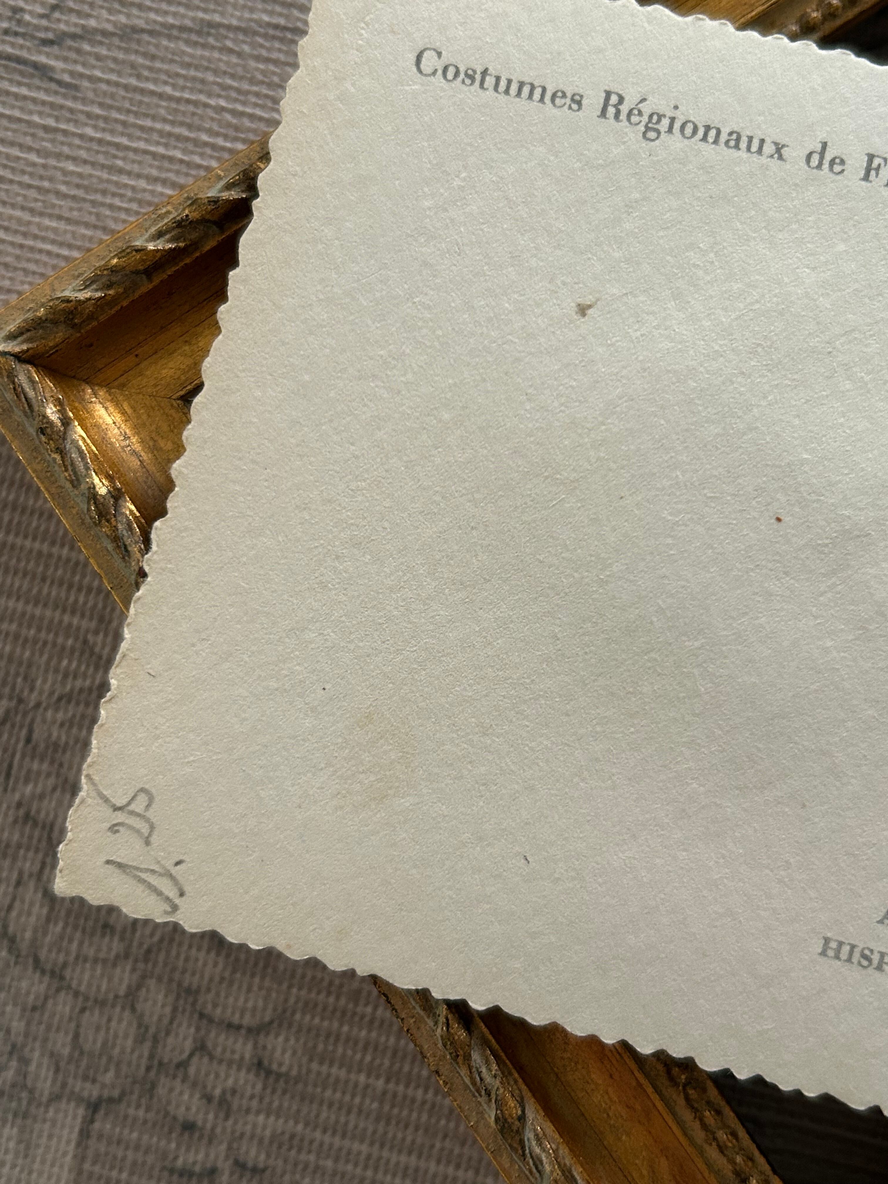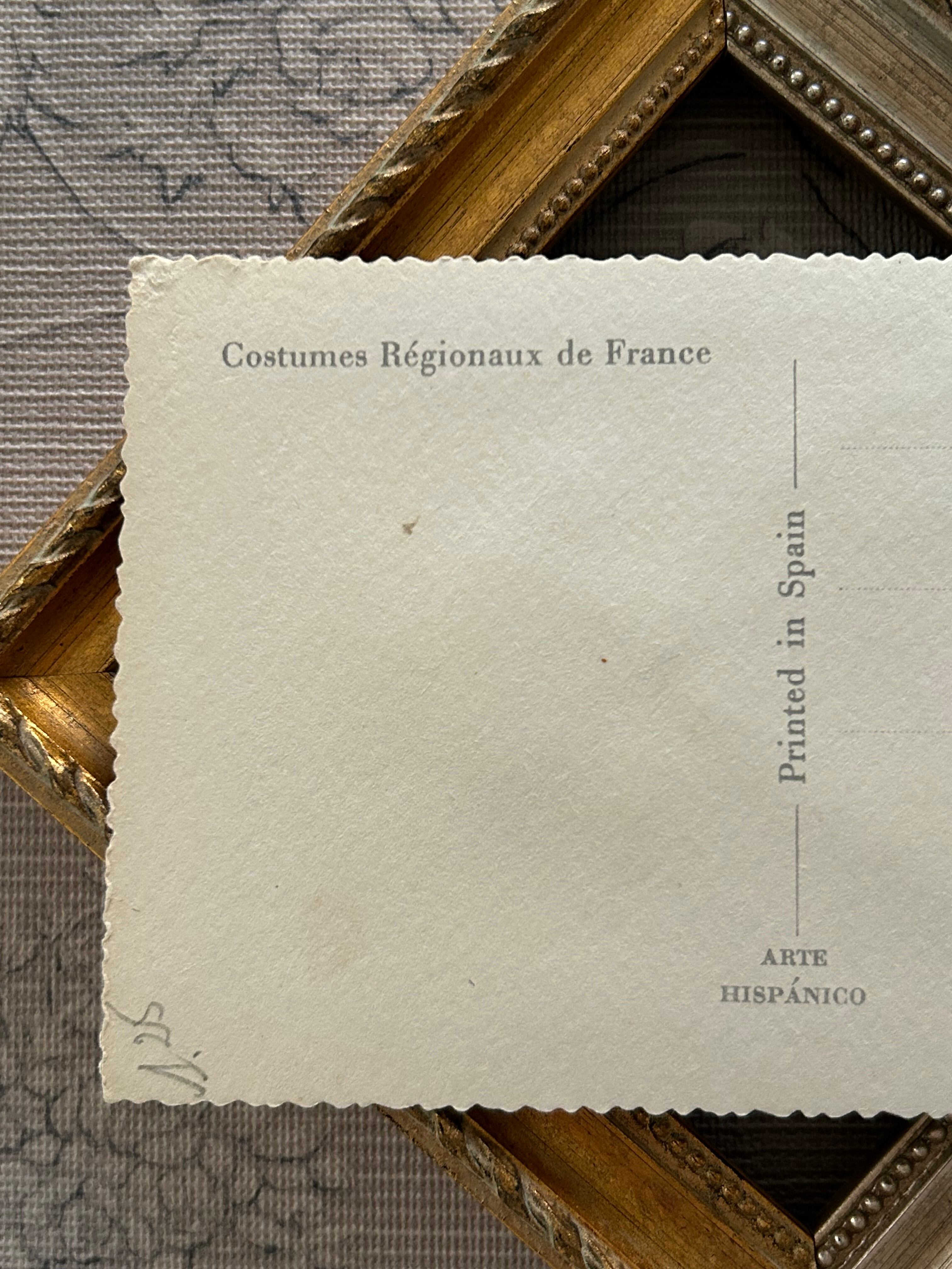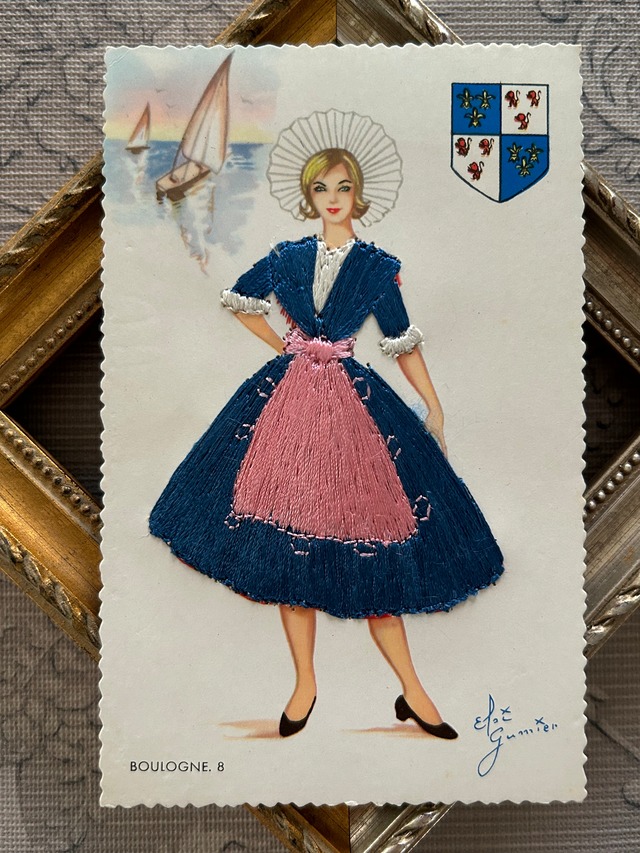 SALE フランスVintage ポストカード ブローニュ BOULOGNE フランスの地方の衣装 刺繍 額装 インテリア小物 撮影小物