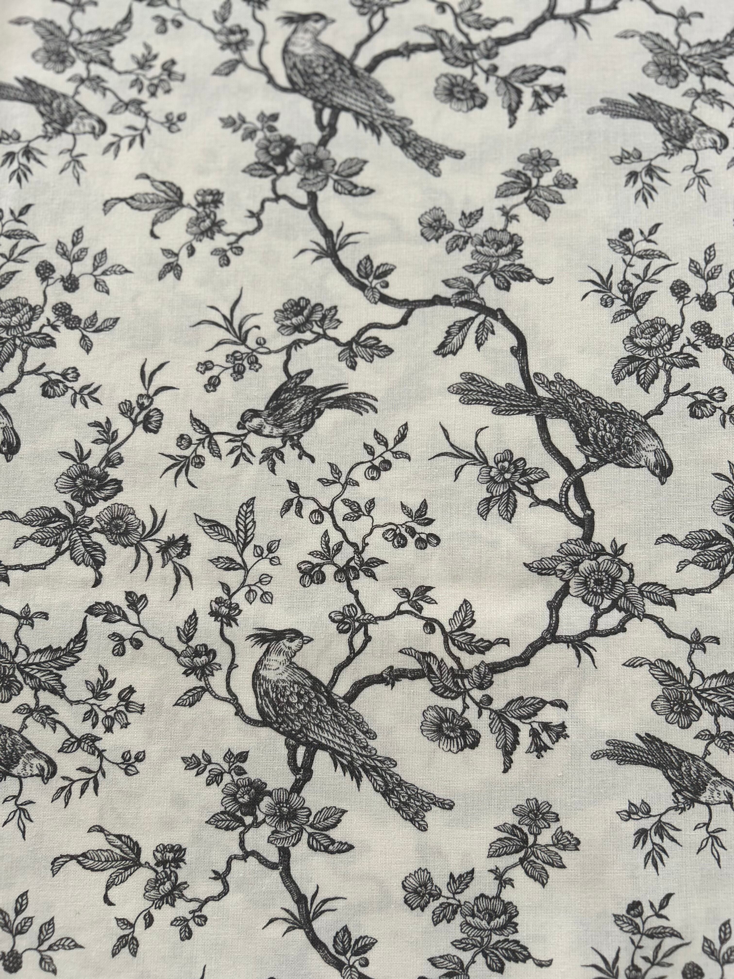 フランス コットンファブリック Mini Mésange シジュウカラ 鳥柄 トワルドジュイ グレー カルトナージュ