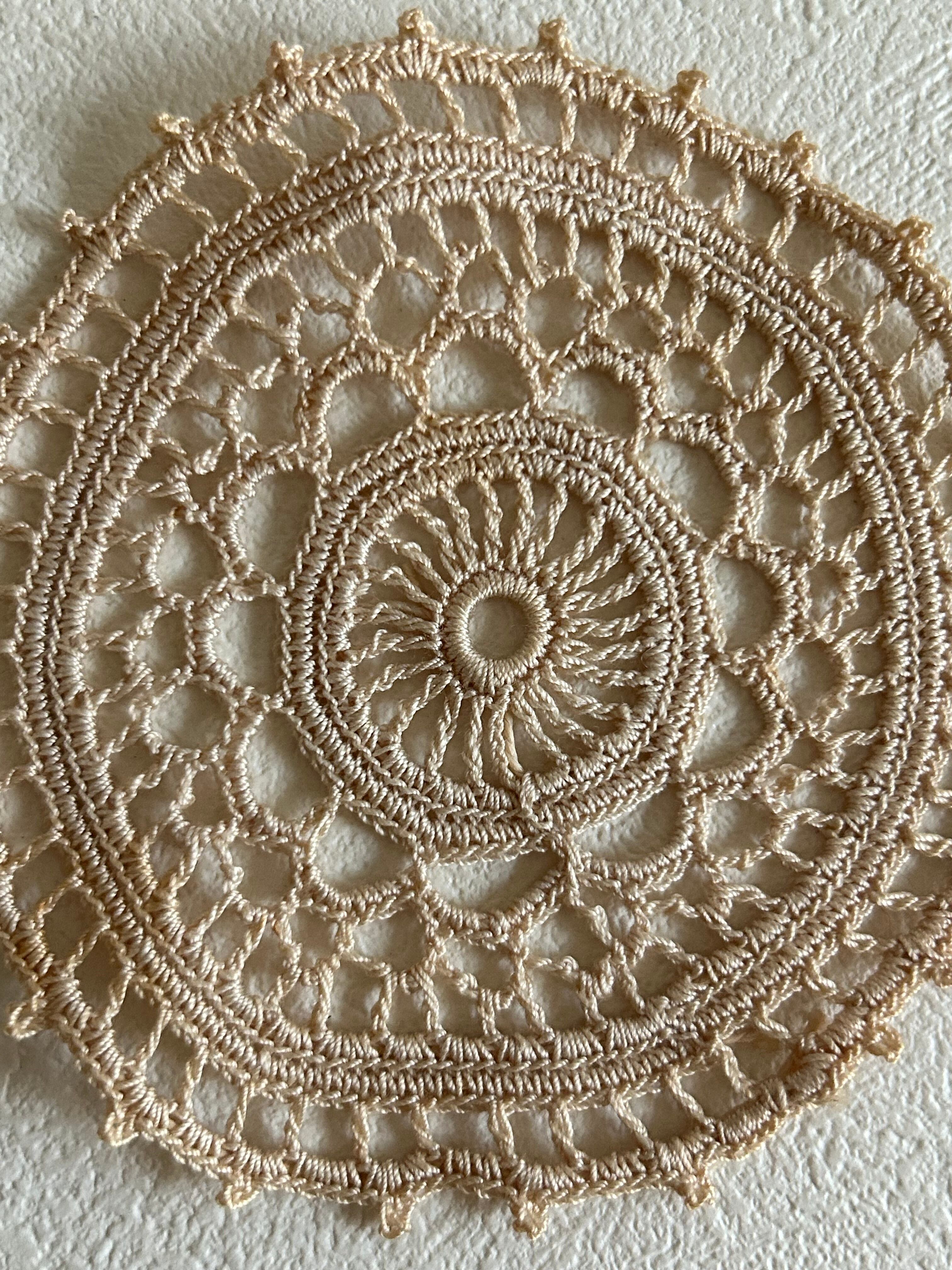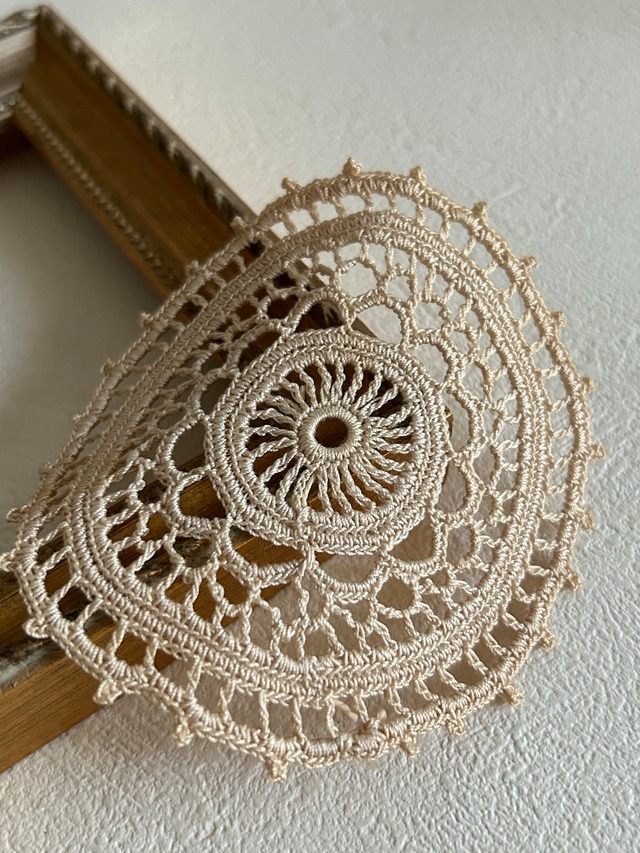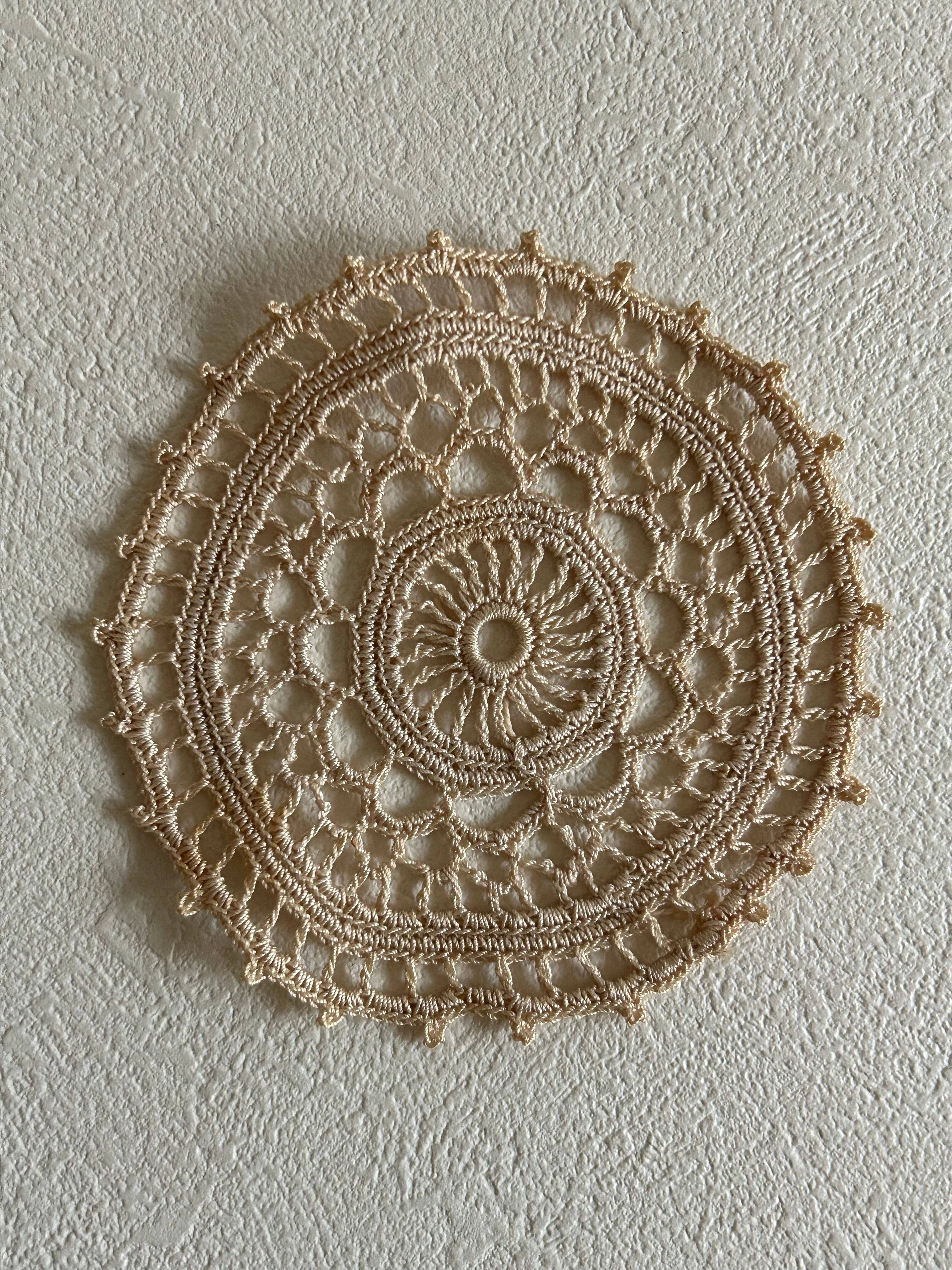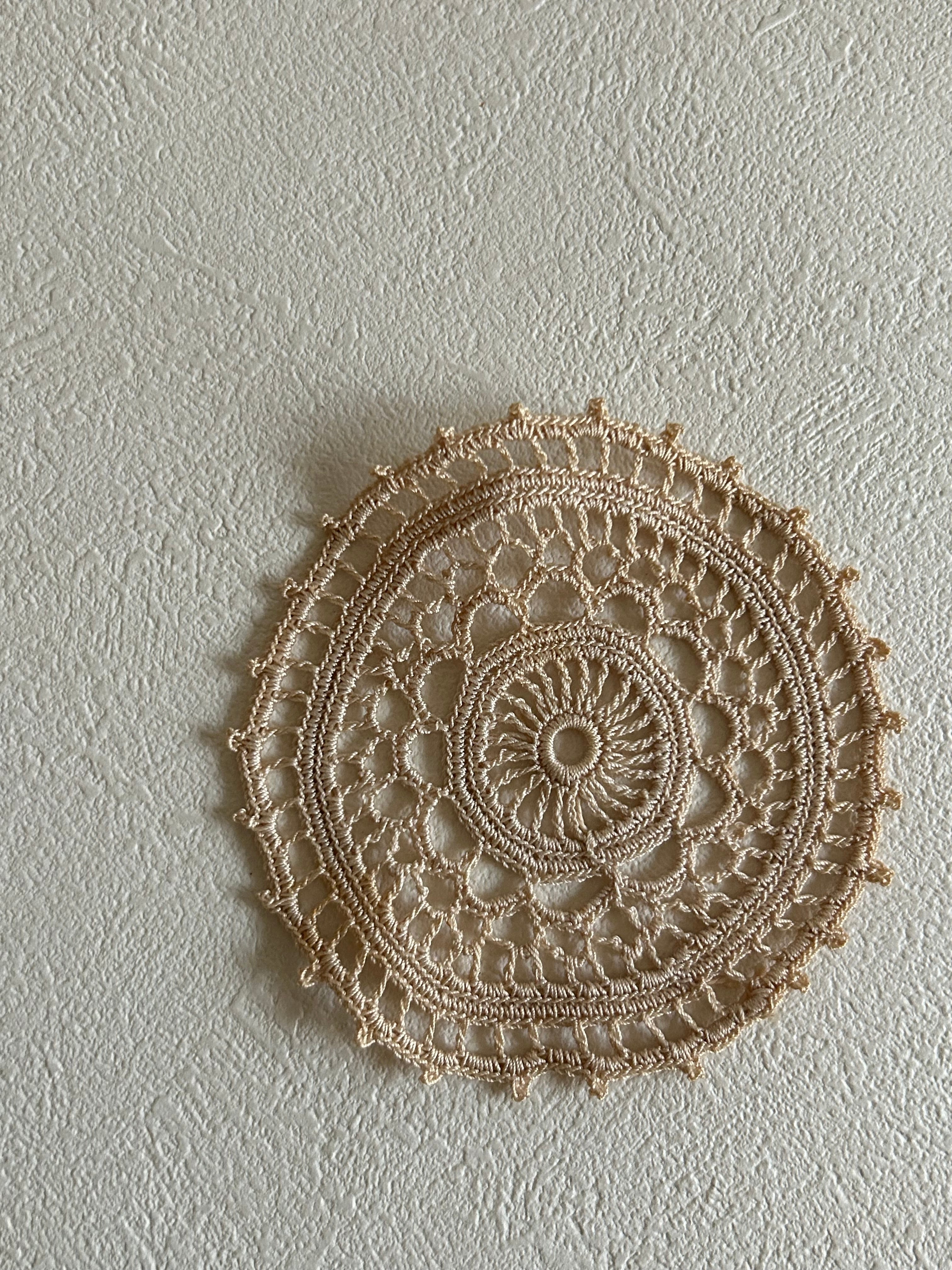 フランスVintage 小さなクロッシェレースドイリー ベージュカラー 敷物 インテリア ハンドメイド素材 レースモチーフ