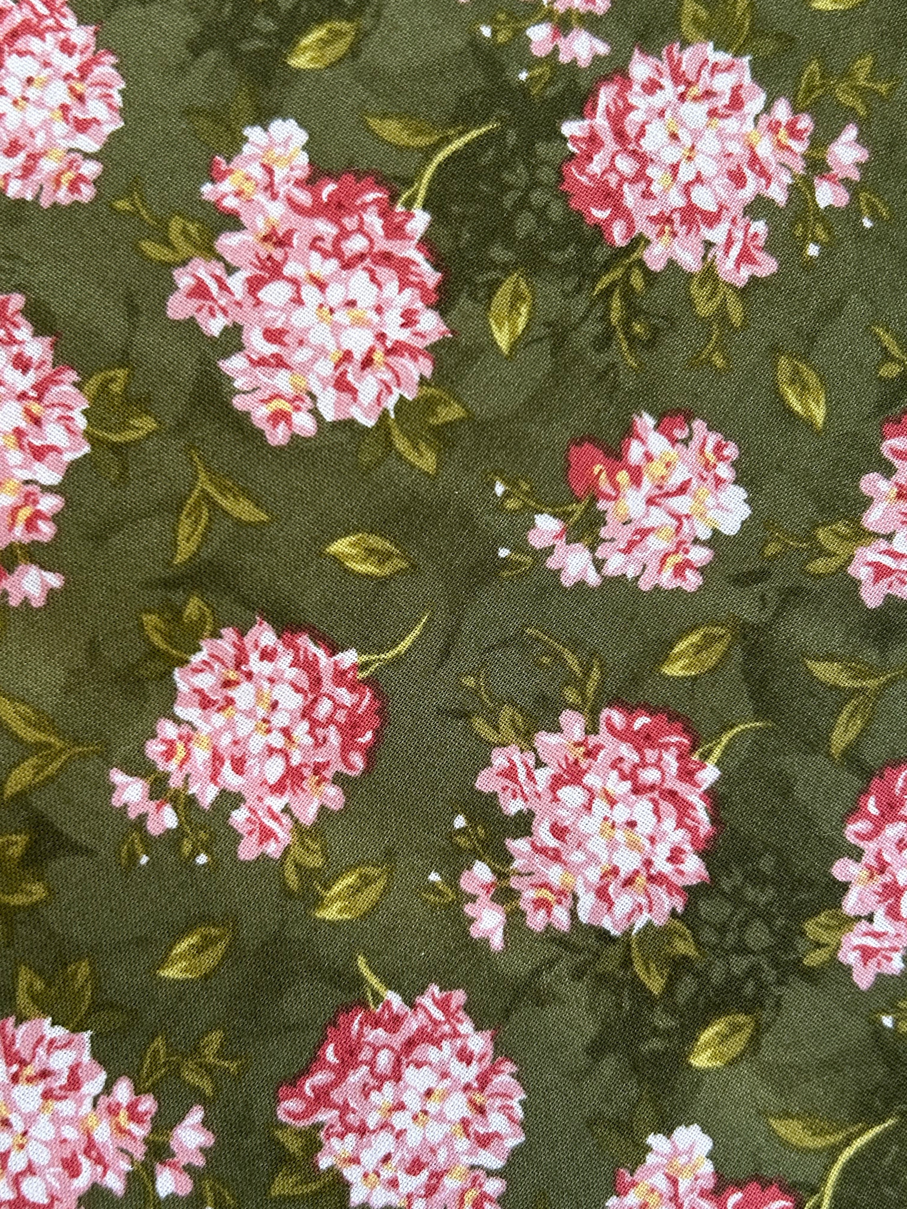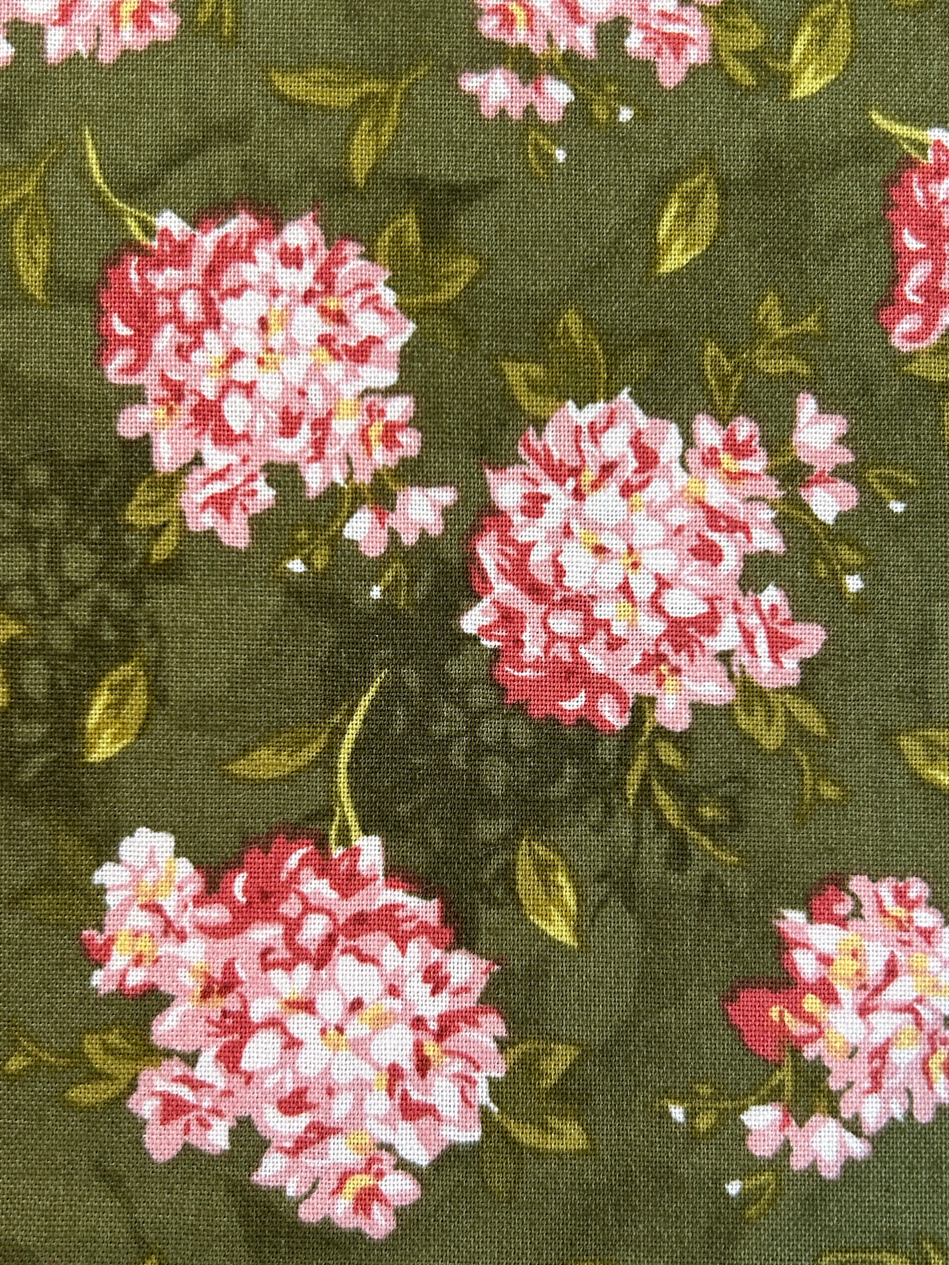 フランス コットンファブリック 紫陽花柄 花柄 カーキ×ピンク 輸入生地 カルトナージュ