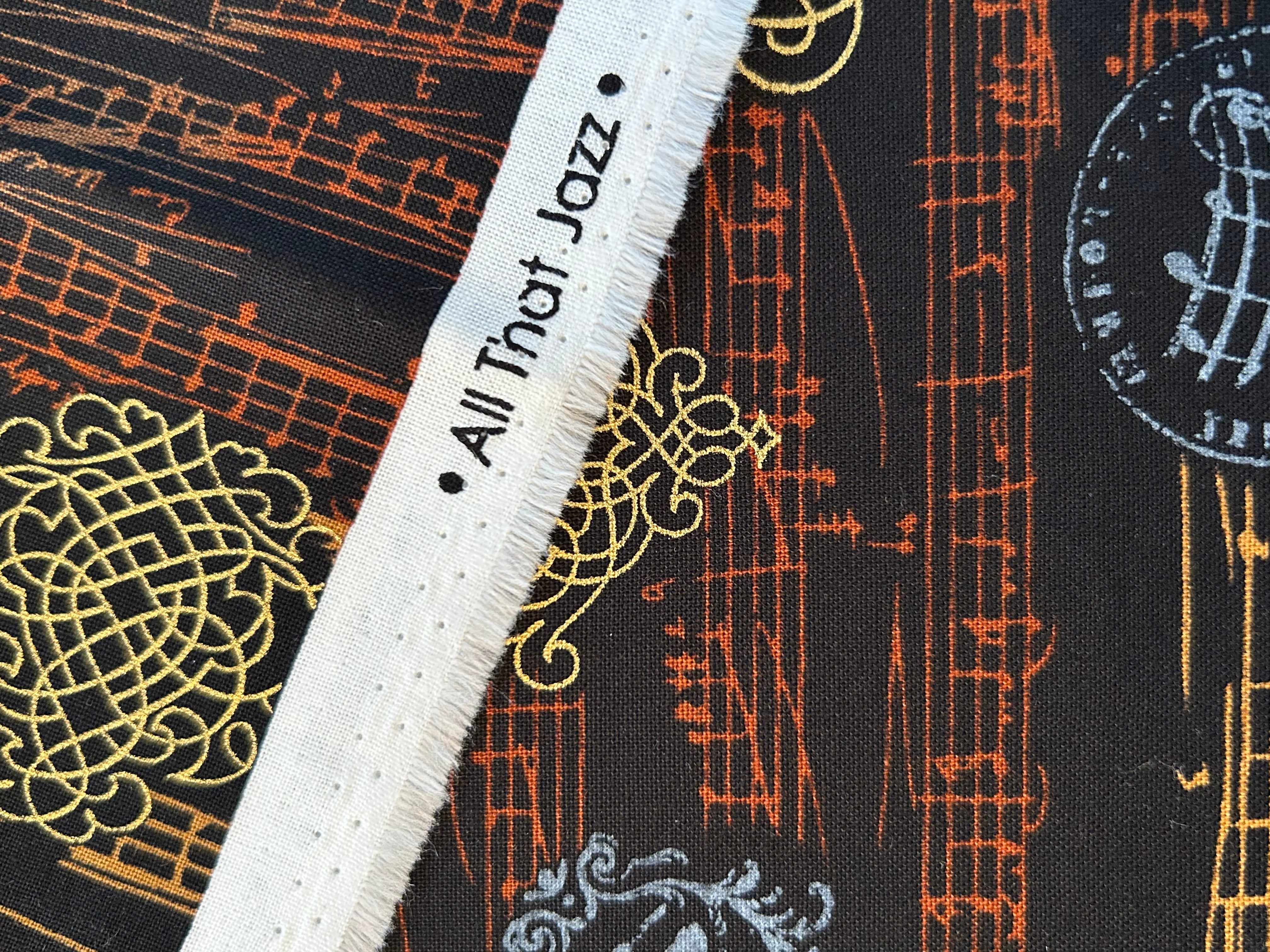 ブラックの地に、譜面柄。All That Jazzのパターン名にぴったりなシックで格好良いデザインです。