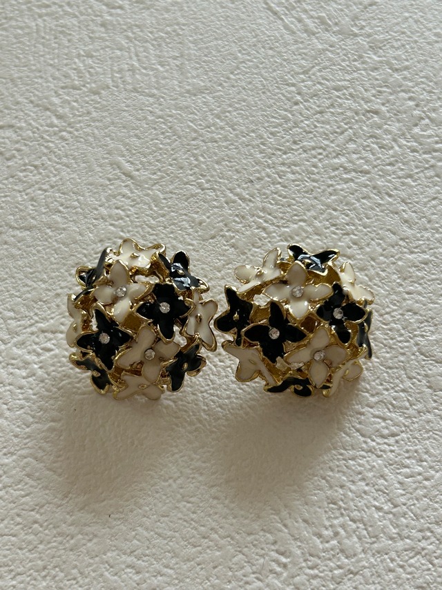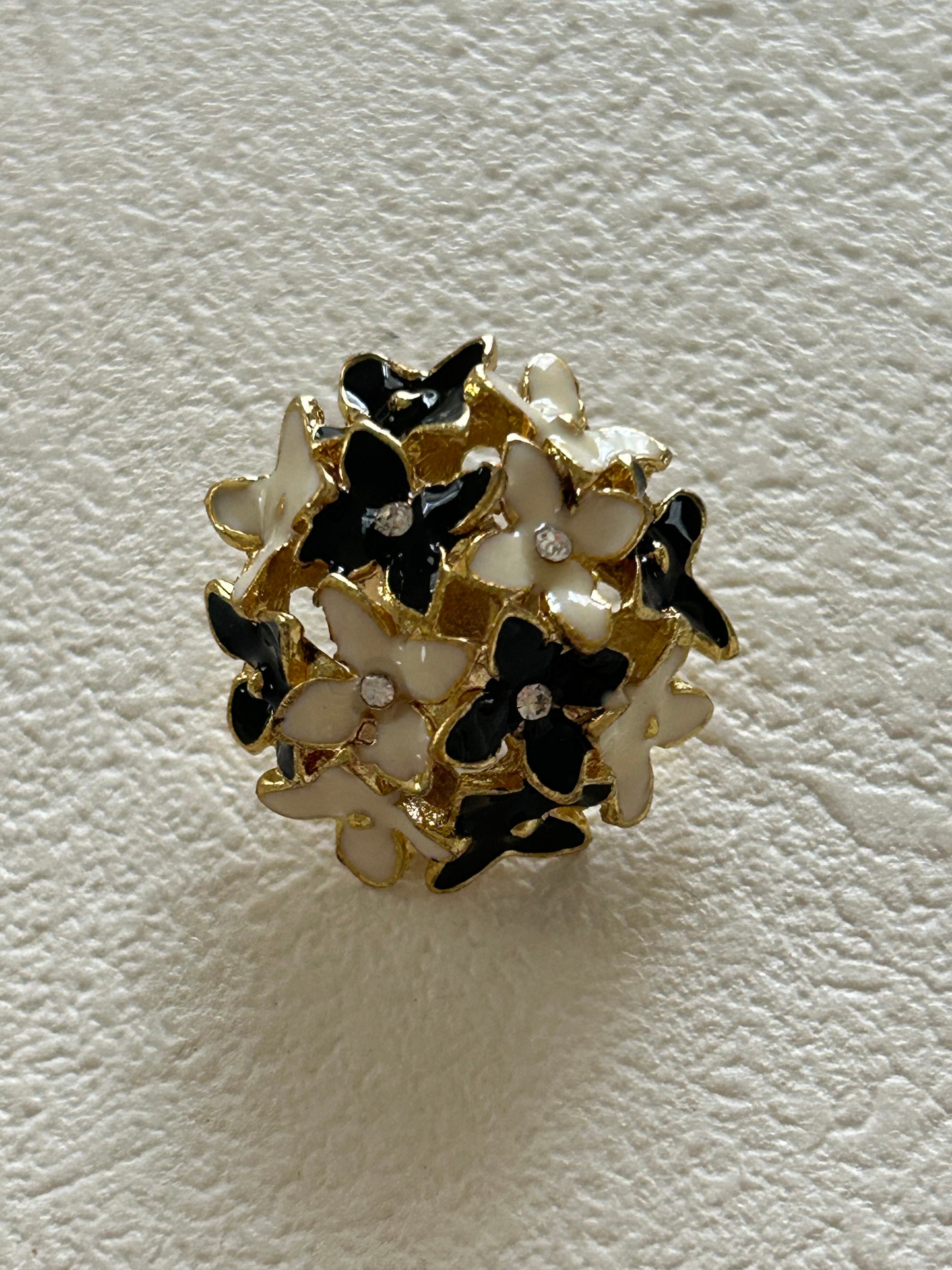 輸入デザインボタン 立体フラワー メタル×ラインストーン ブラック×アイボリー 23mm ドーム型 アクセサリーパーツ デコレーション材