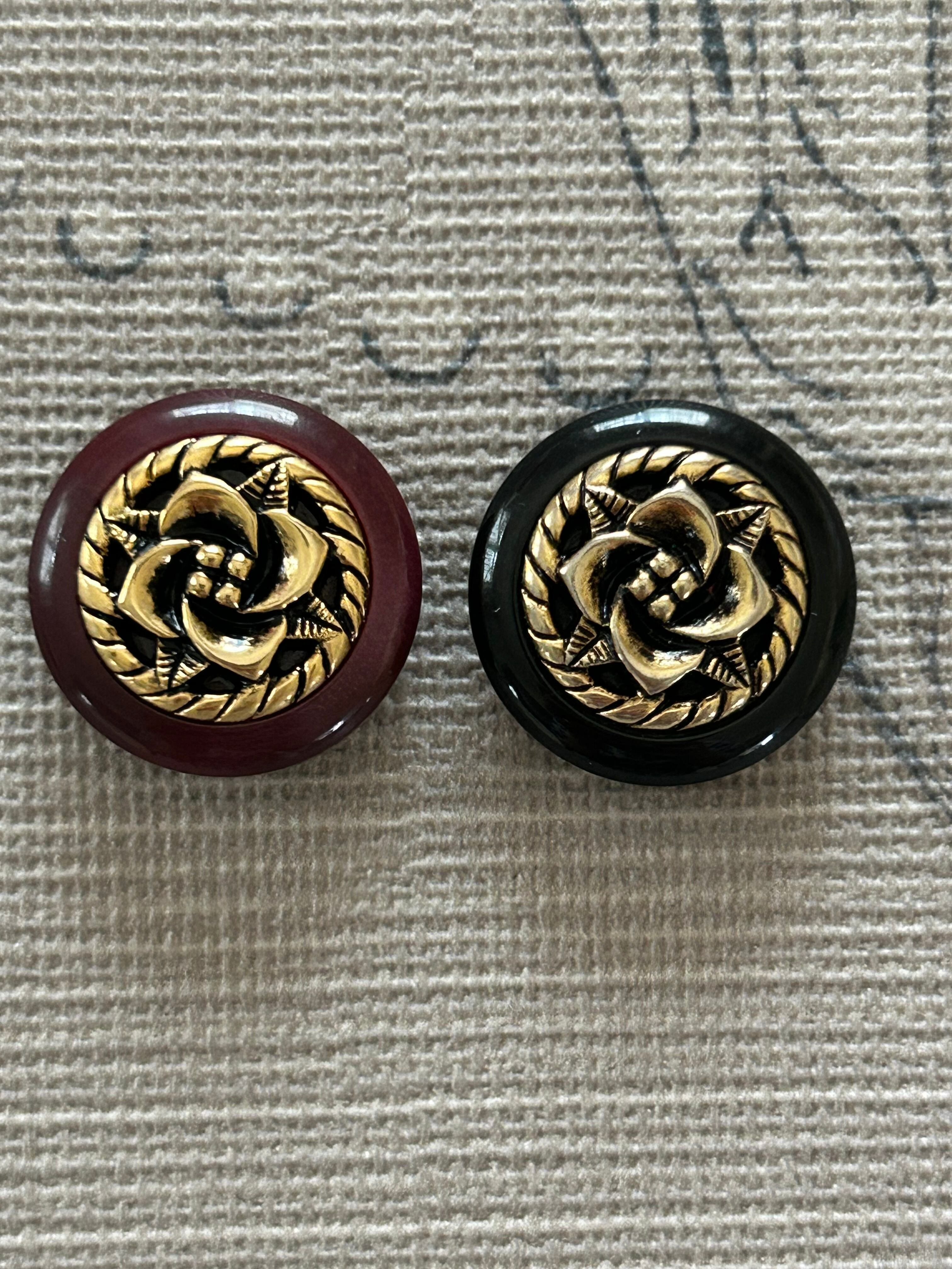 Japanese Vintage ボタン 20mm フラワー ブラック/ボルドー button レトロボタン アクセサリーパーツ 装飾材 カルトナージュ