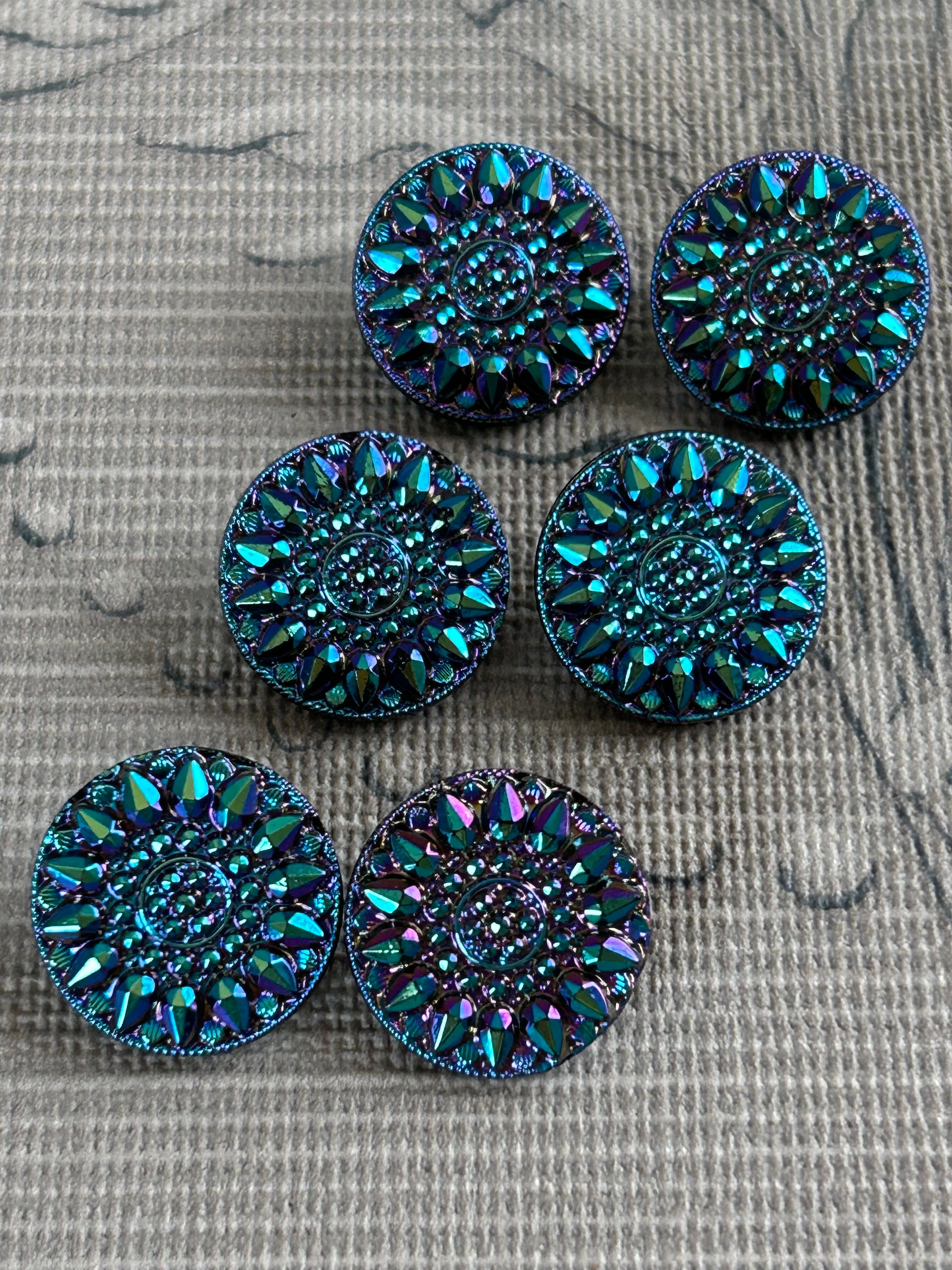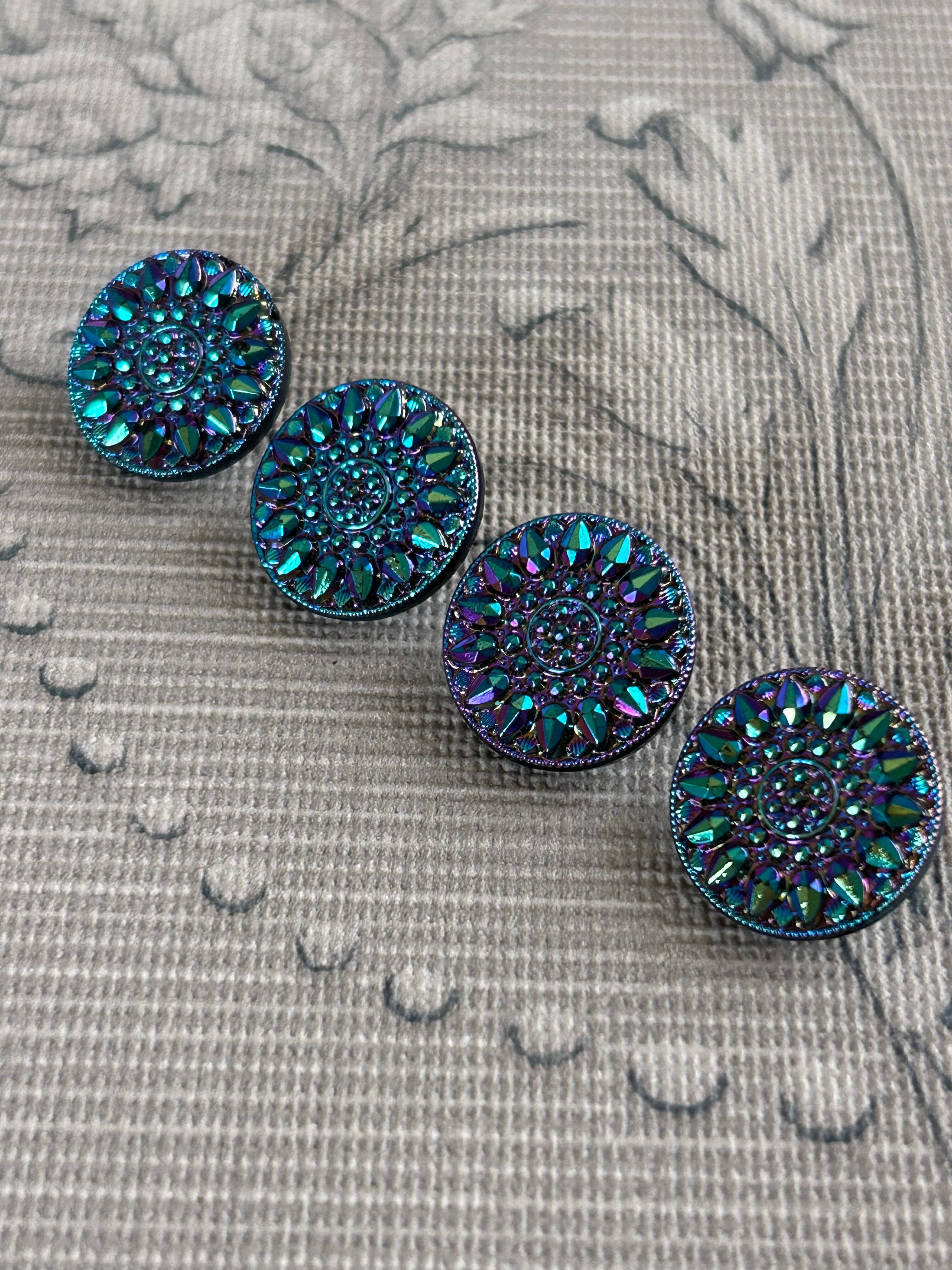 ドイツVintage ガラスボタン オーロラカラー 18mm カットガラス アクセサリーパーツ デコレーション材