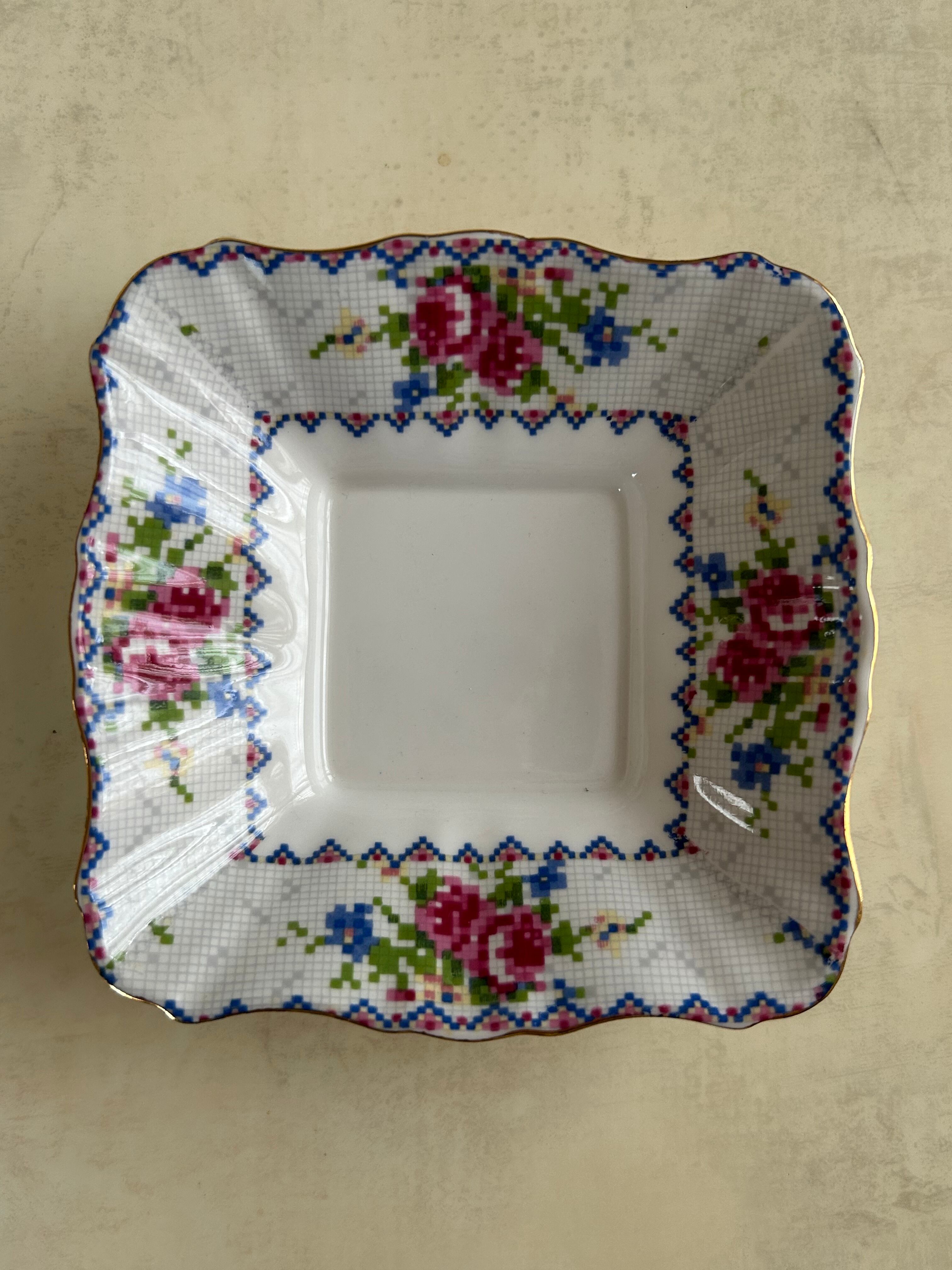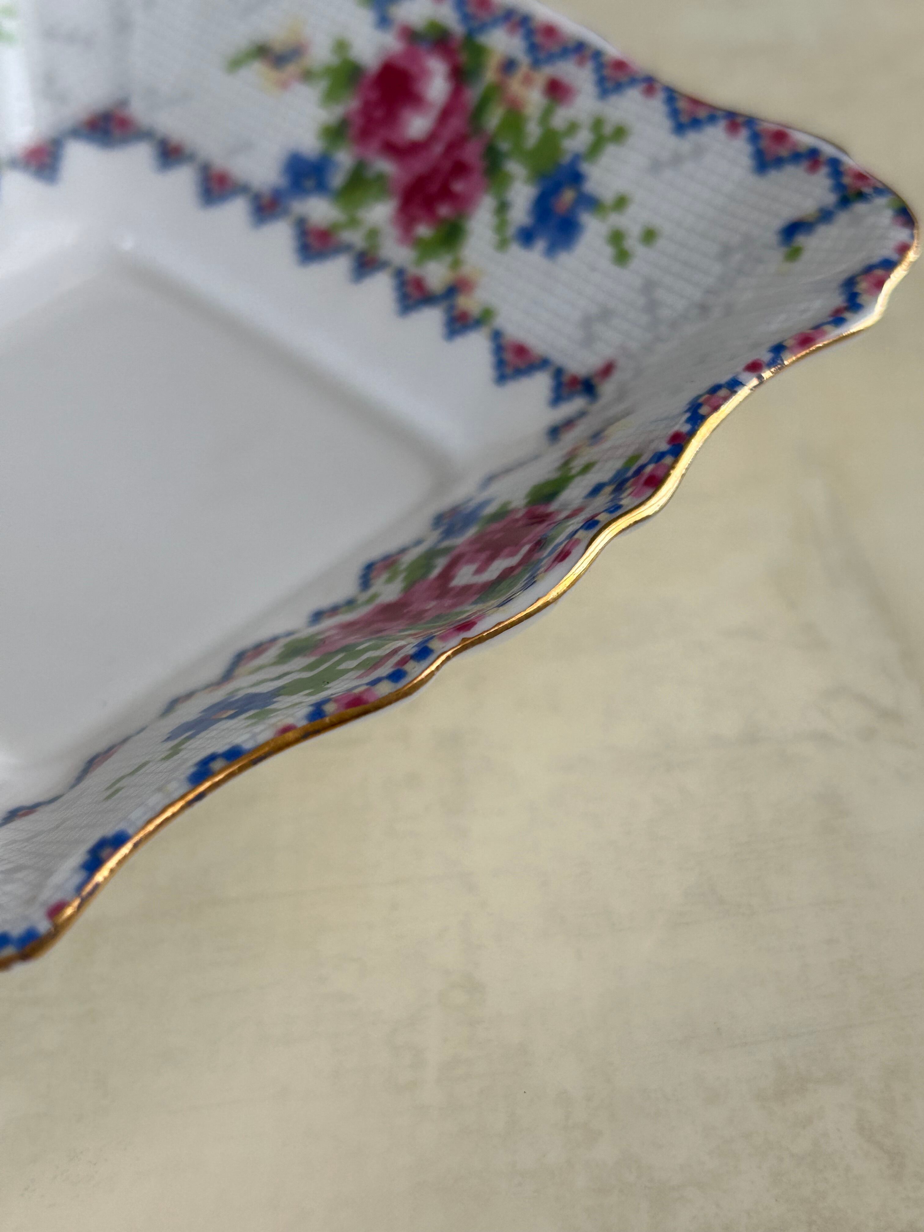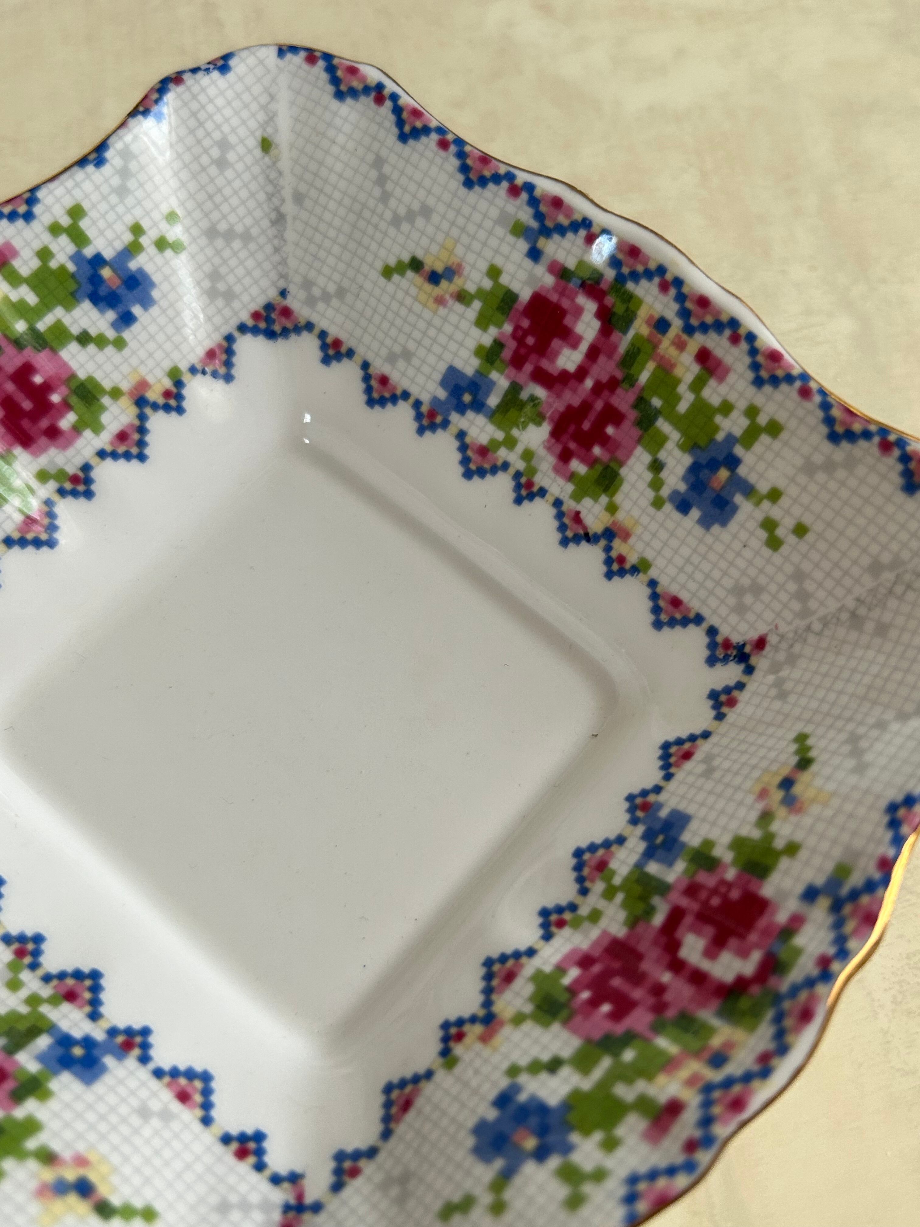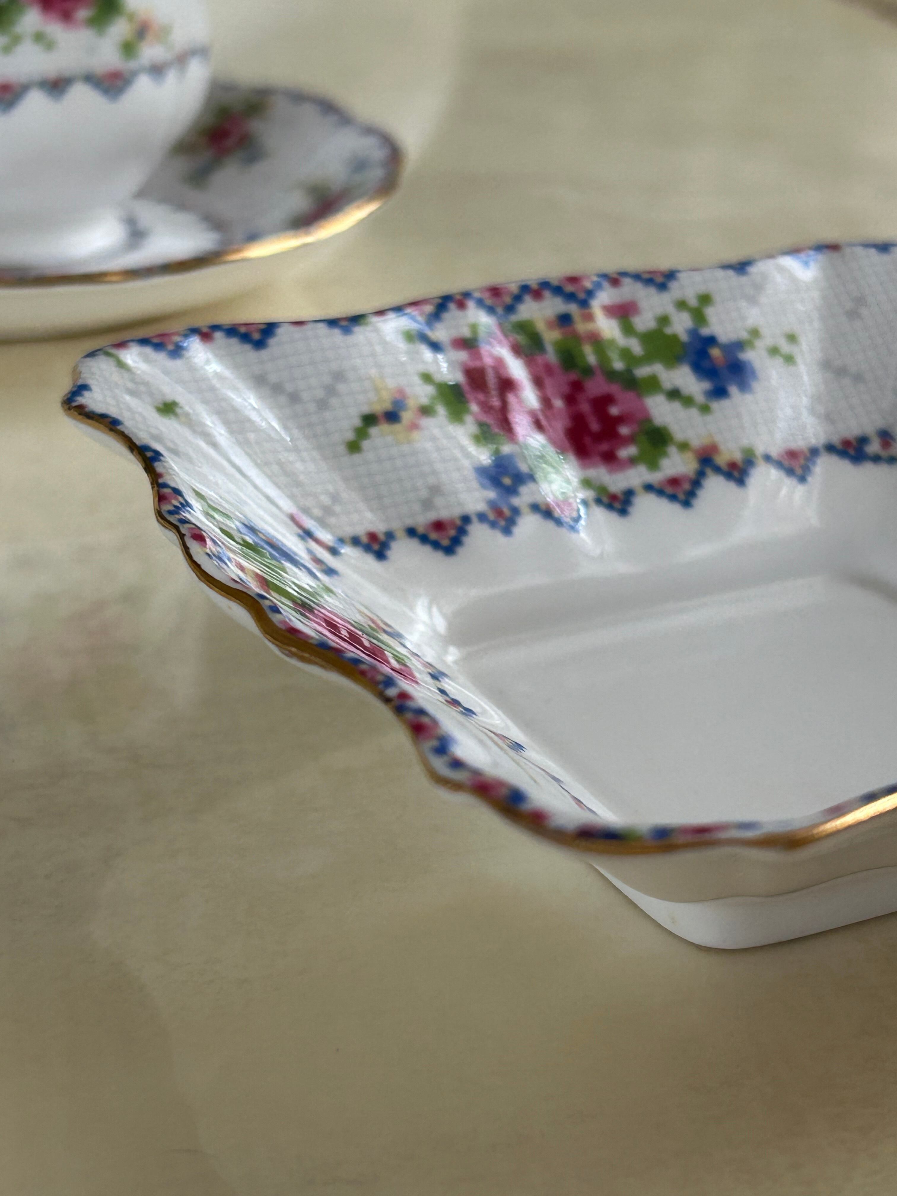 英国Vintage ROYAL ALBERT ロイヤルアルバート プチポワン スクウェア型プレート 廃盤 イギリス テーブルウェア 小物入れ