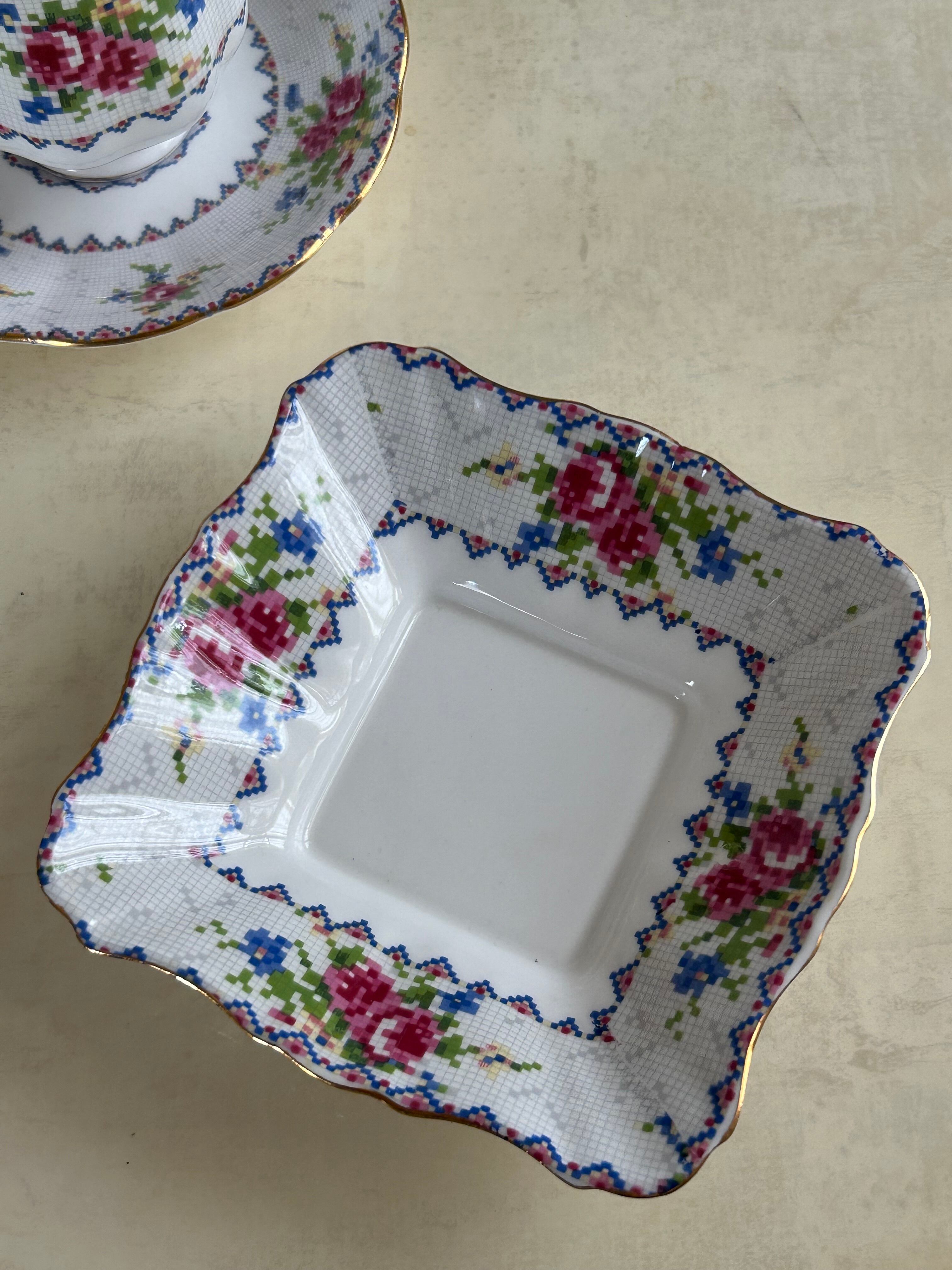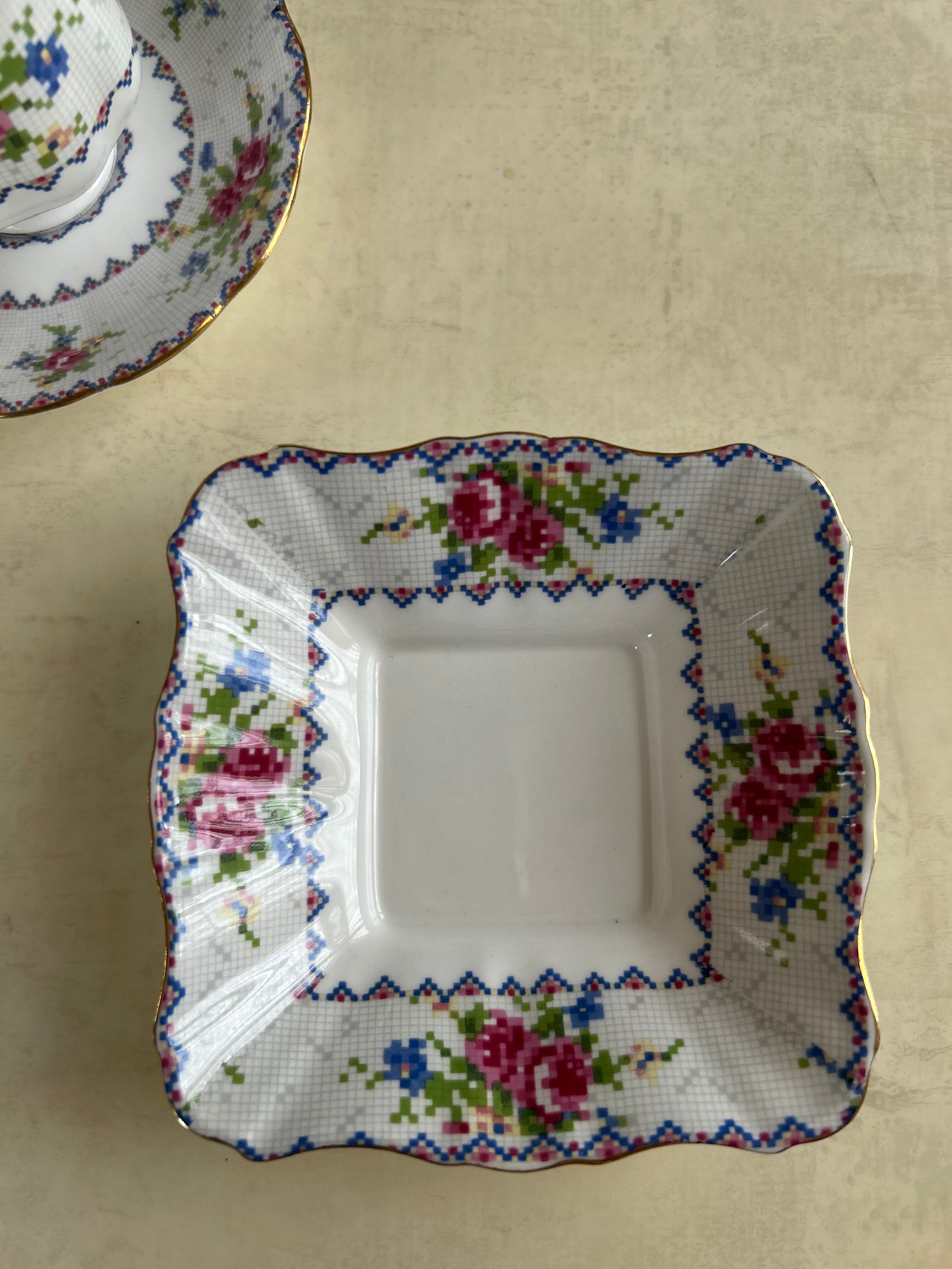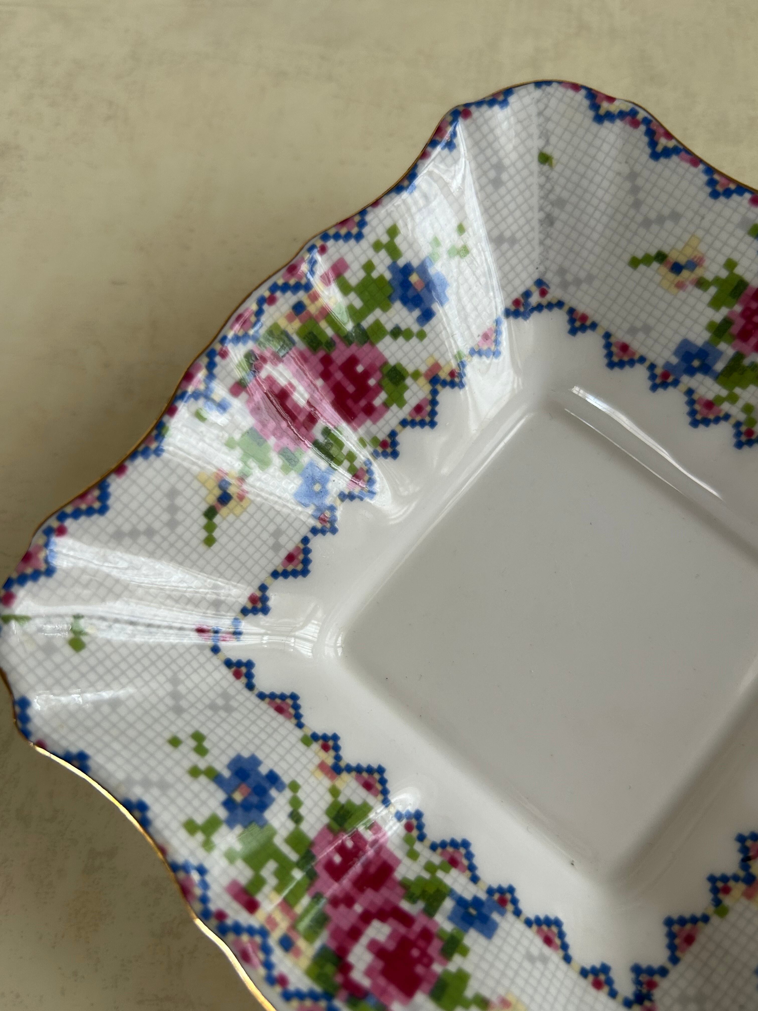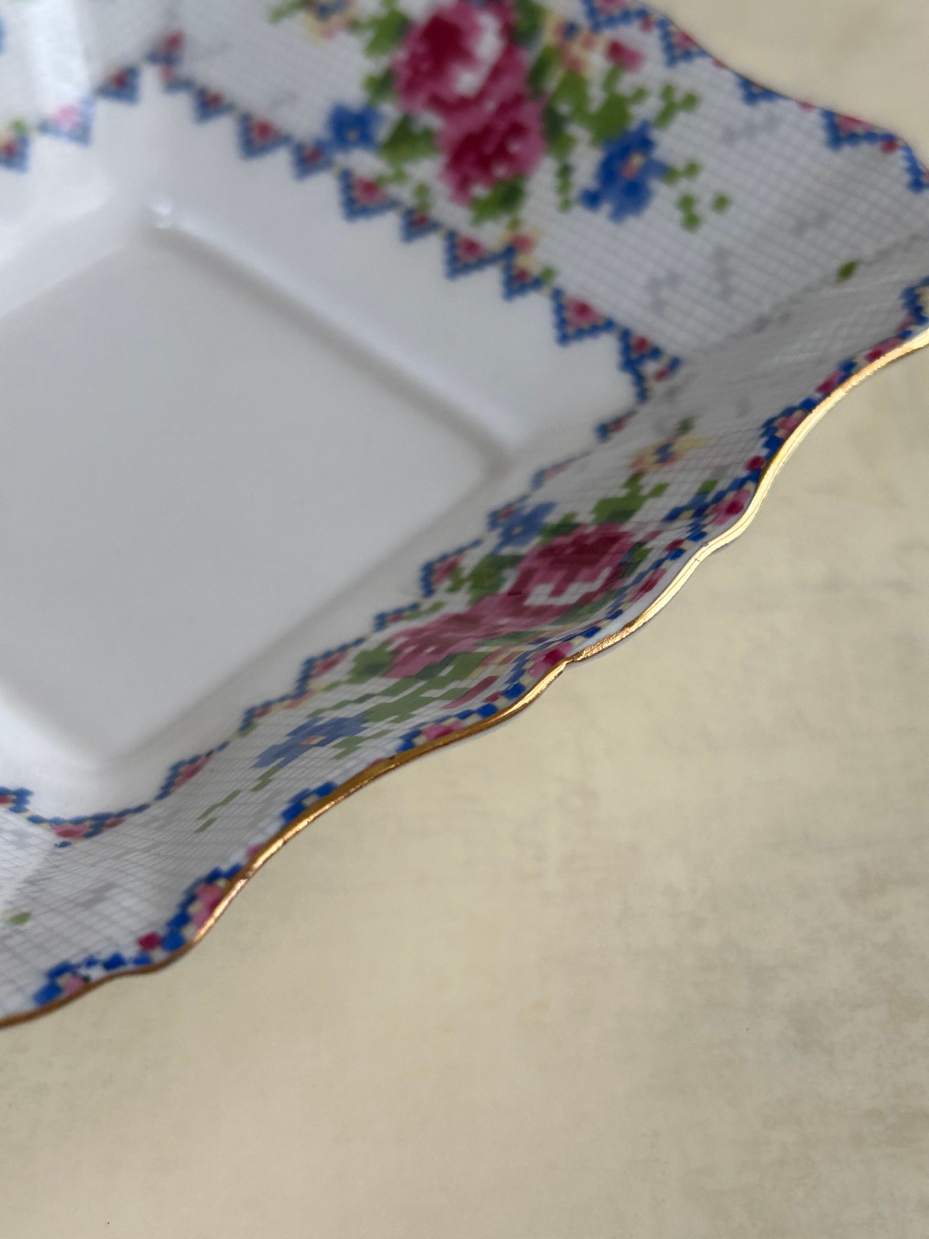 英国Vintage ROYAL ALBERT ロイヤルアルバート プチポワン スクウェア型プレート 廃盤 イギリス テーブルウェア 小物入れ