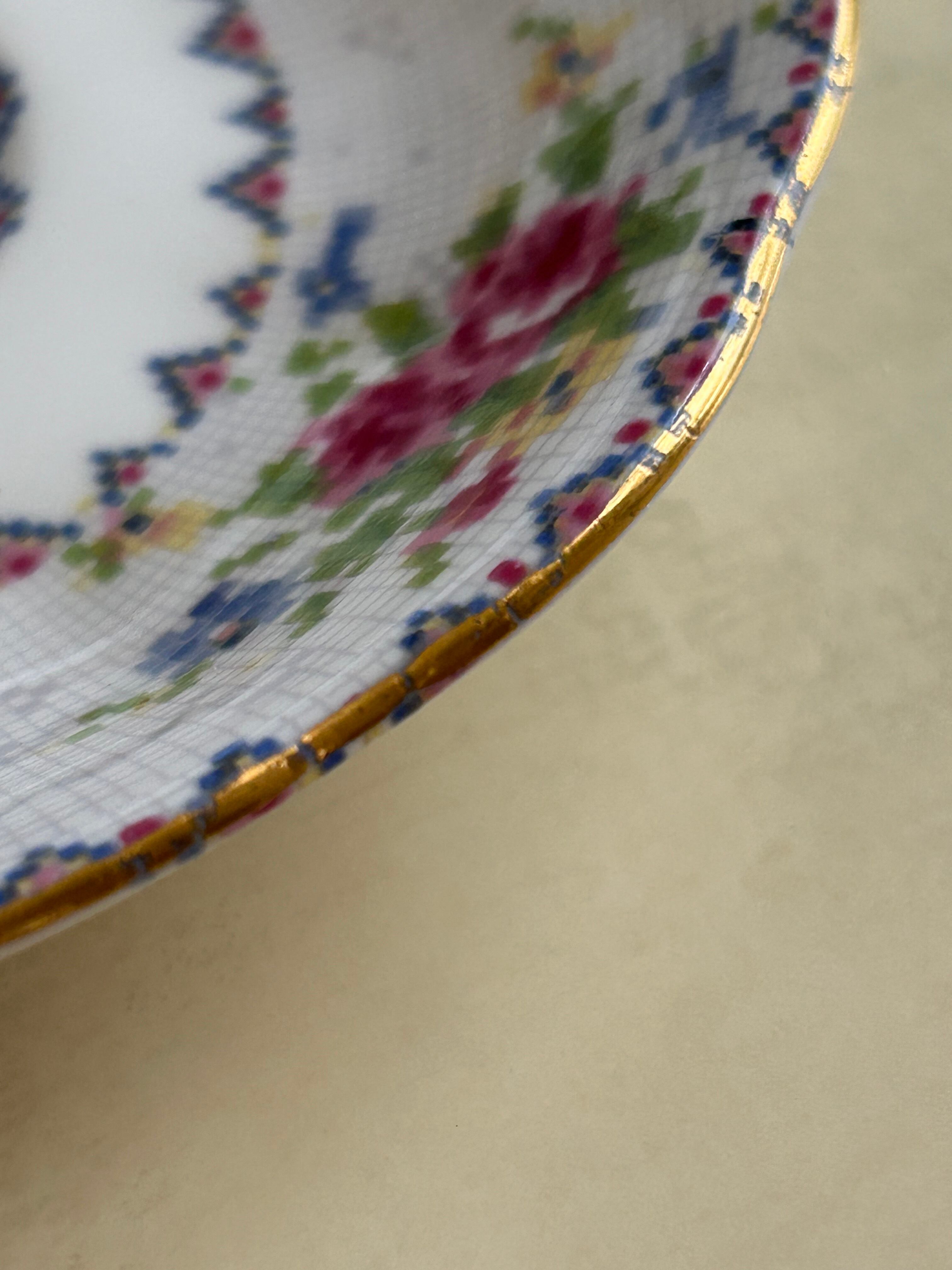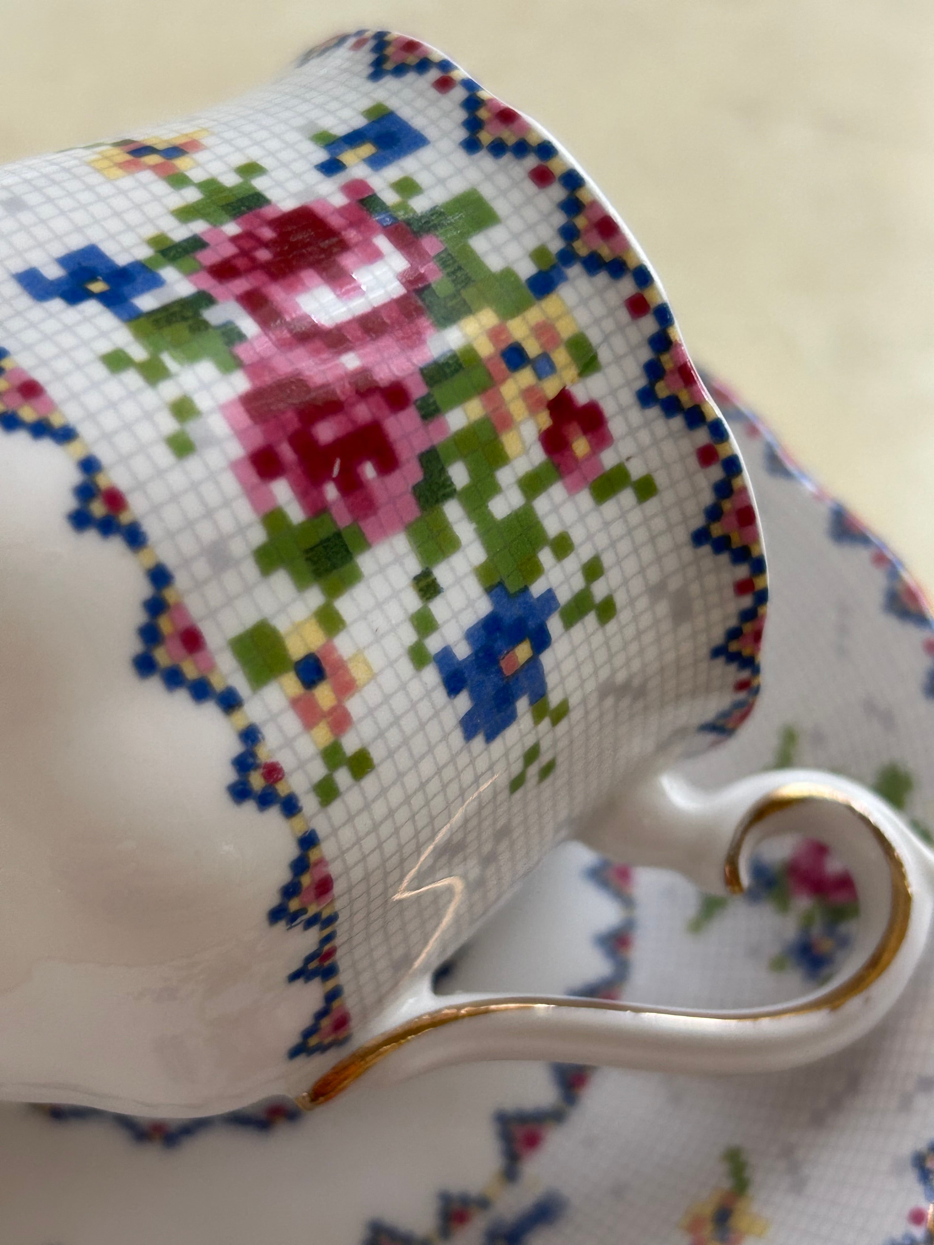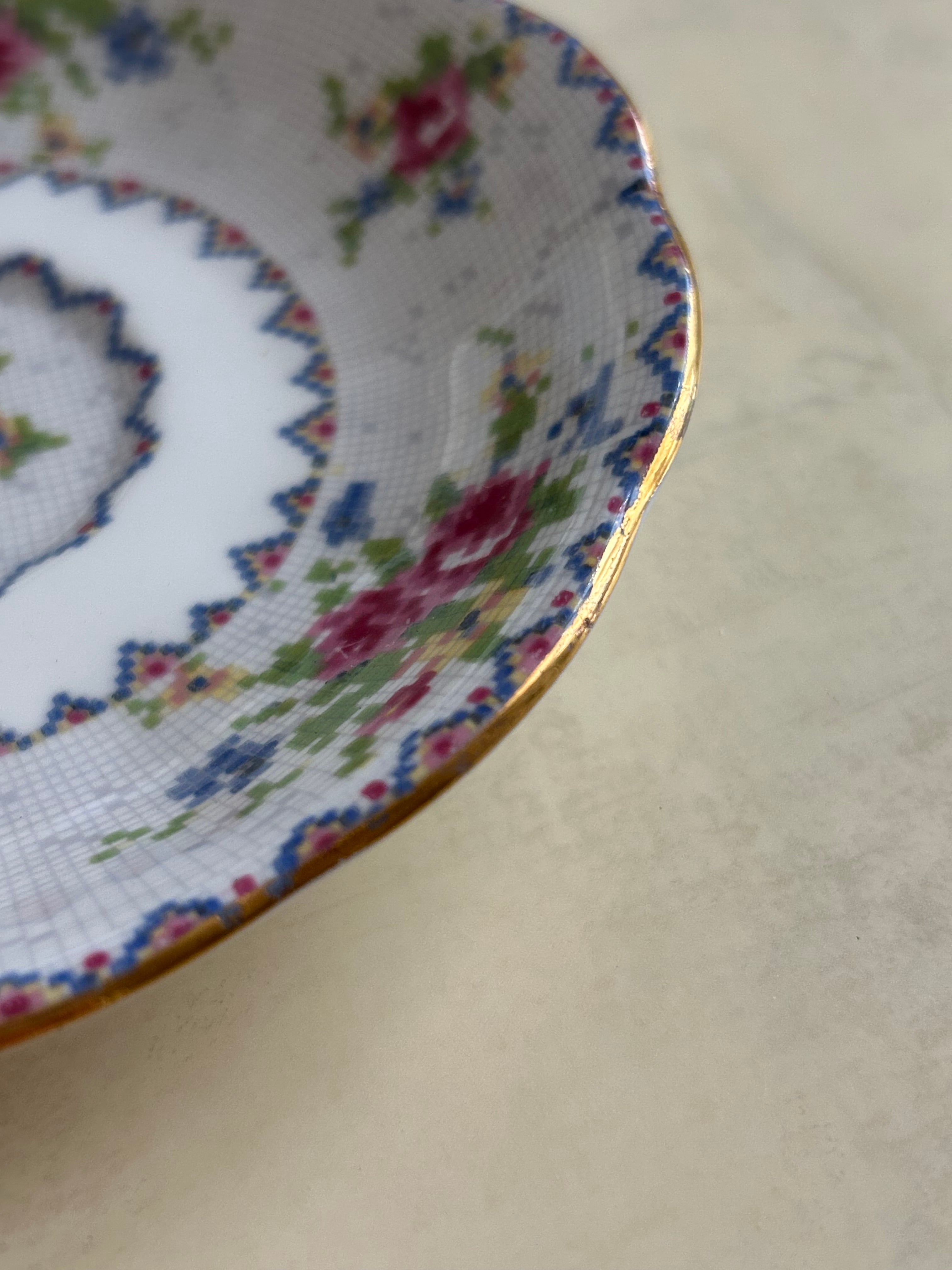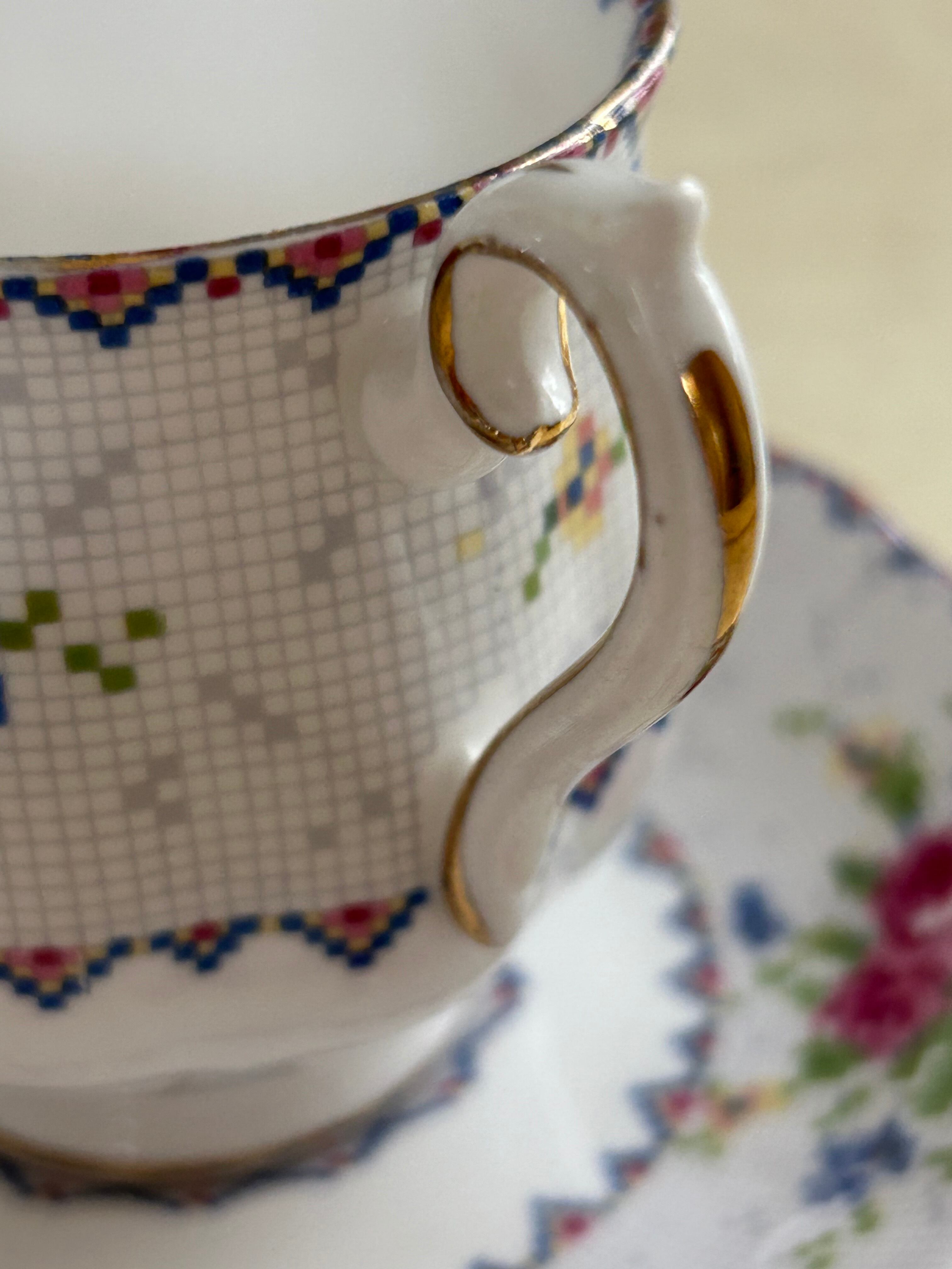英国Vintage ROYAL ALBERT ロイヤルアルバート プチポワン デミタスサイズ カップ&ソーサー 刺繍柄 テーブルウェア