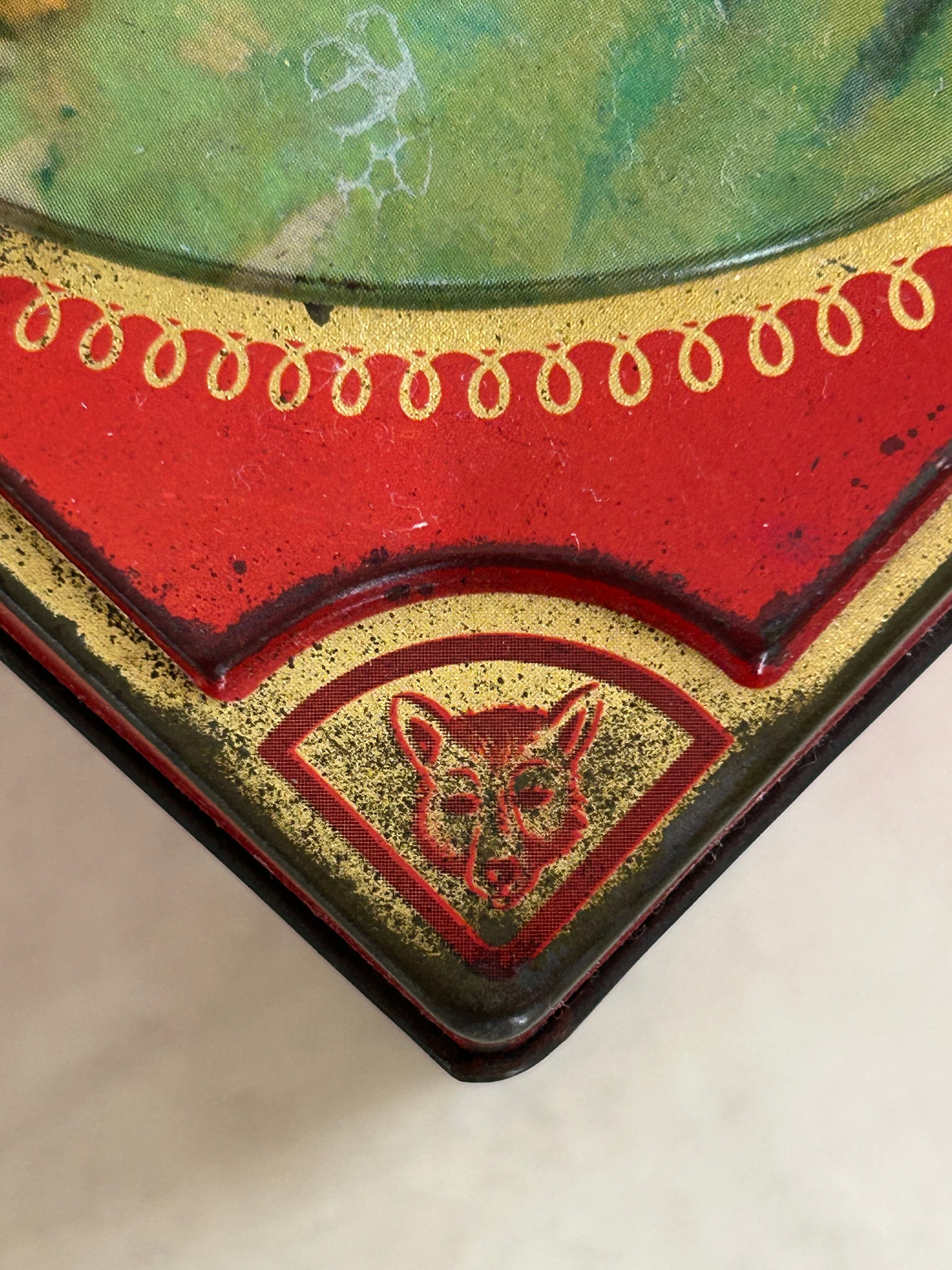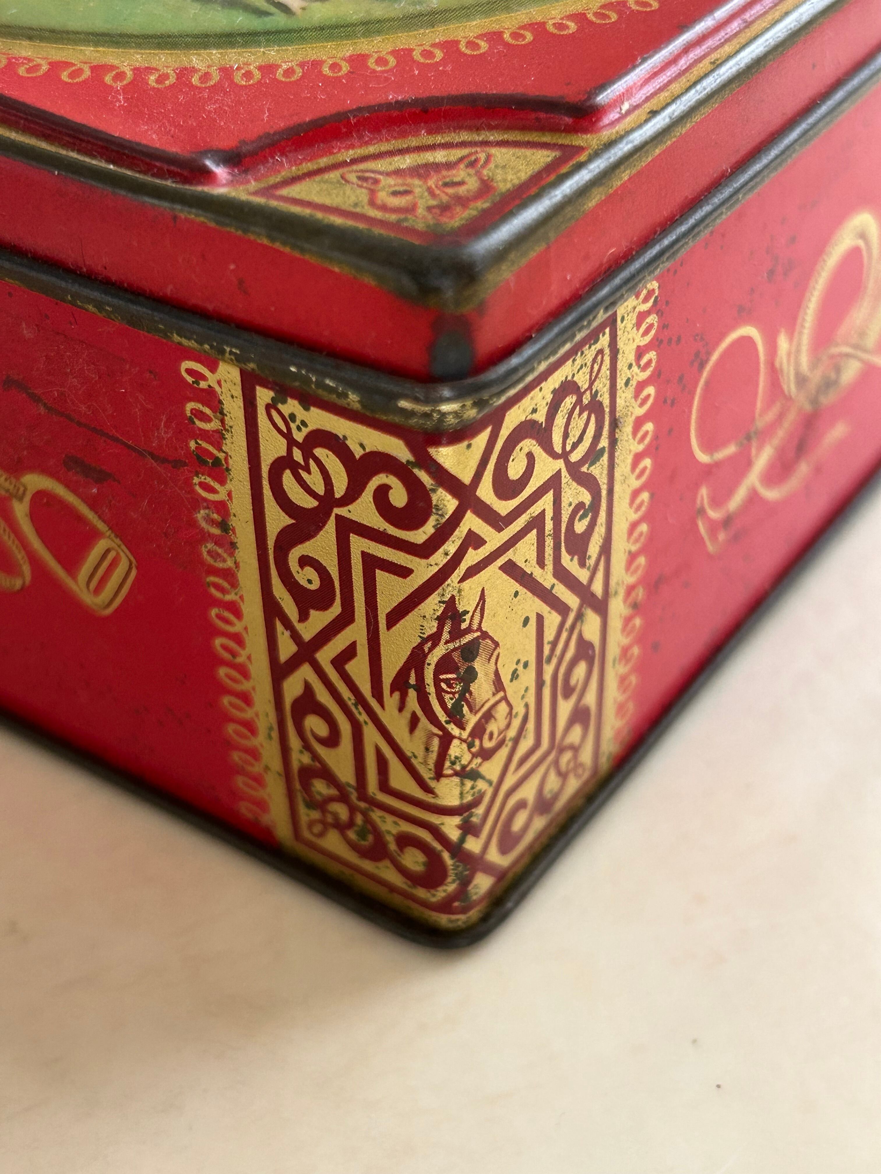 コーナーには狩猟犬。細部までデザインされたトフィー缶です。