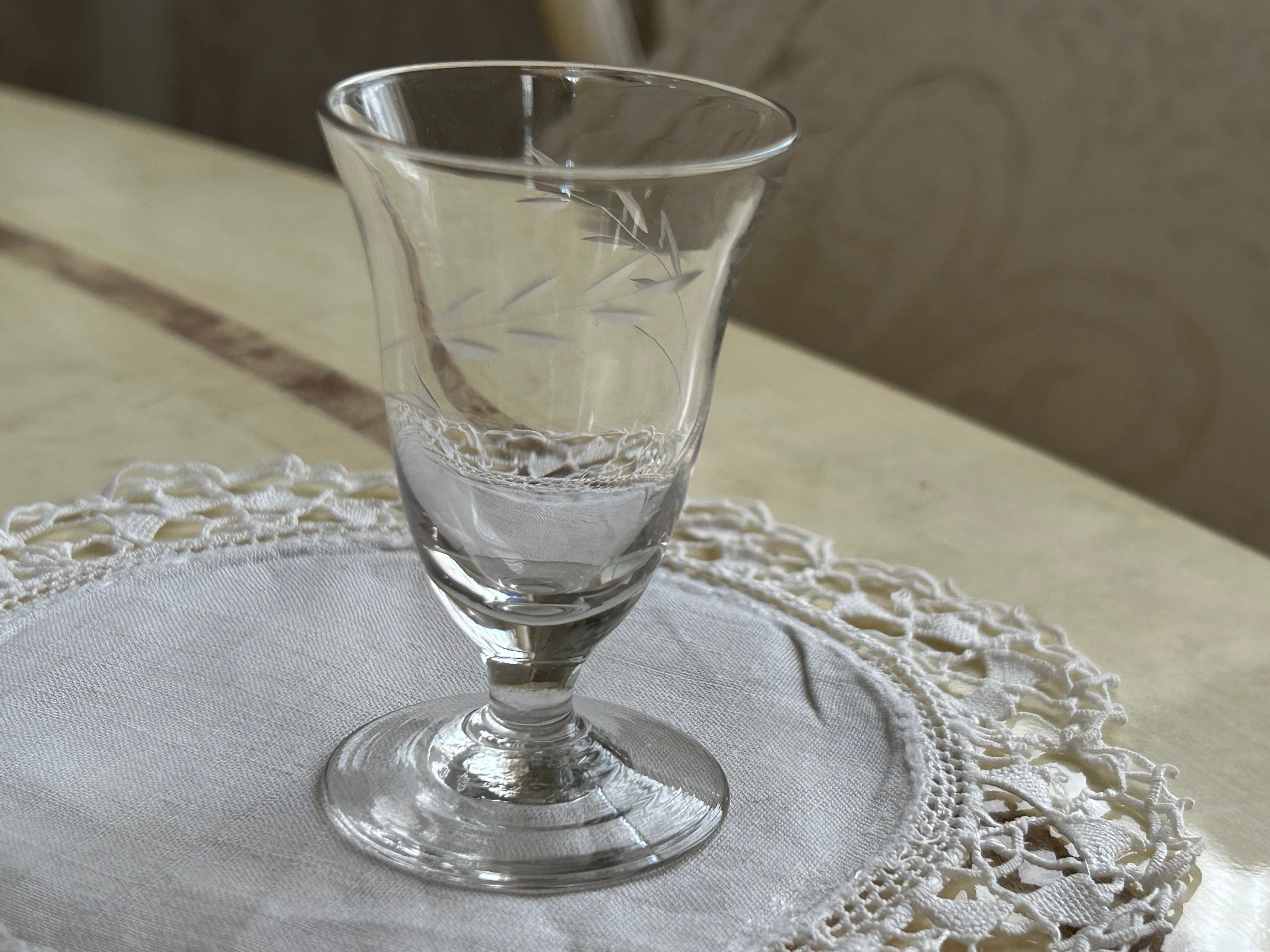 フランスVintage リキュールグラス 麦の穂柄 ガラス器 パフェグラス グラス前菜 ワイングラス ミニグラス フラワーベース
