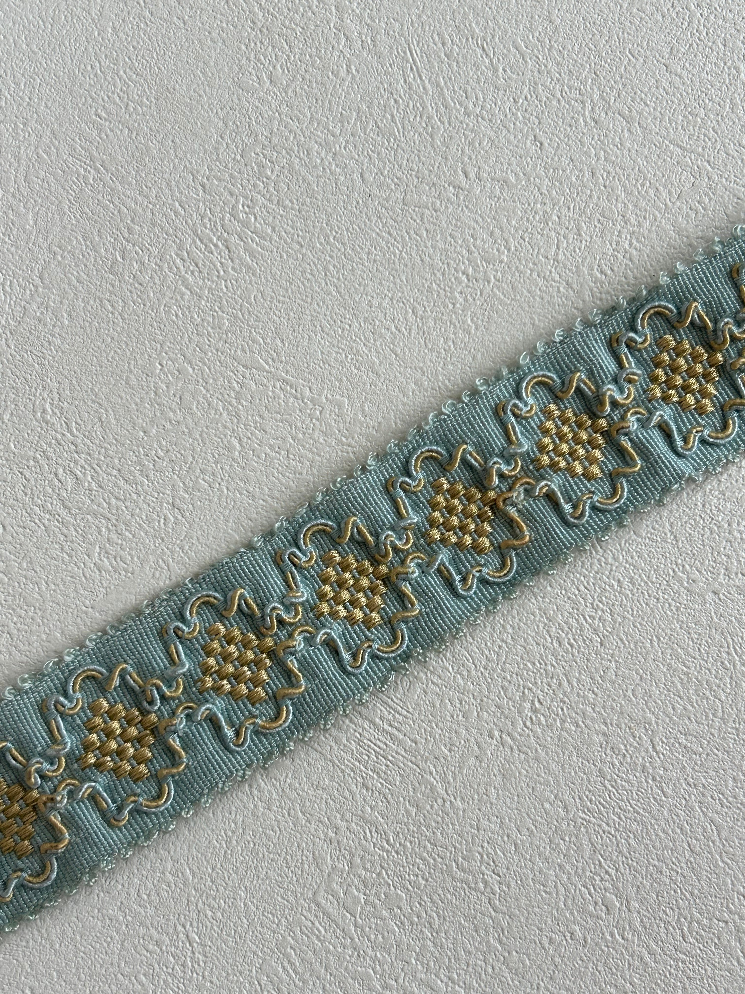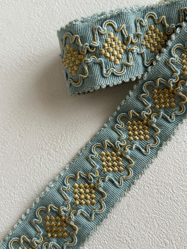 フランスVintage カットブレード 74cm 38mm幅 カルトナージュ デコレーション材 ライトブルー