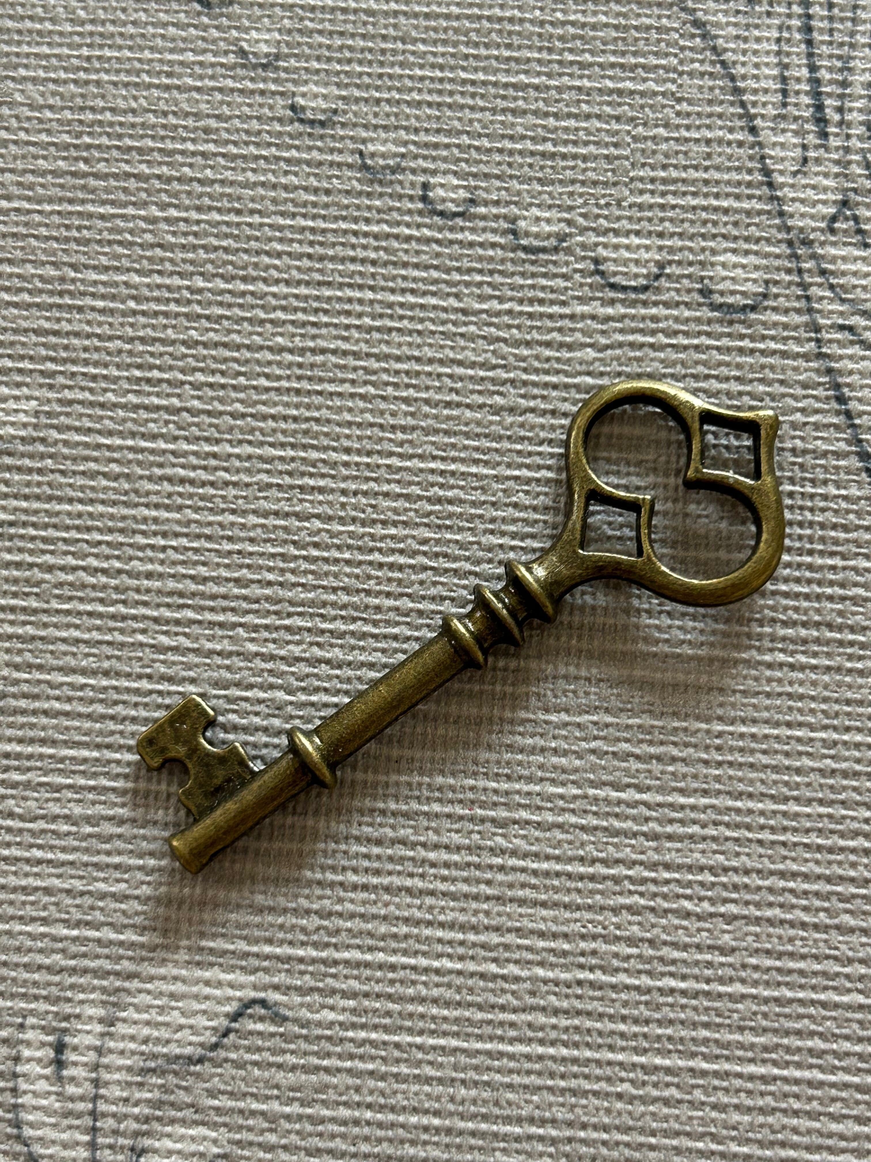 輸入デザインパーツ アンティーク調 Key 鍵 金古美 チャーム アクセサリーパーツ デコレーション 6.2cm