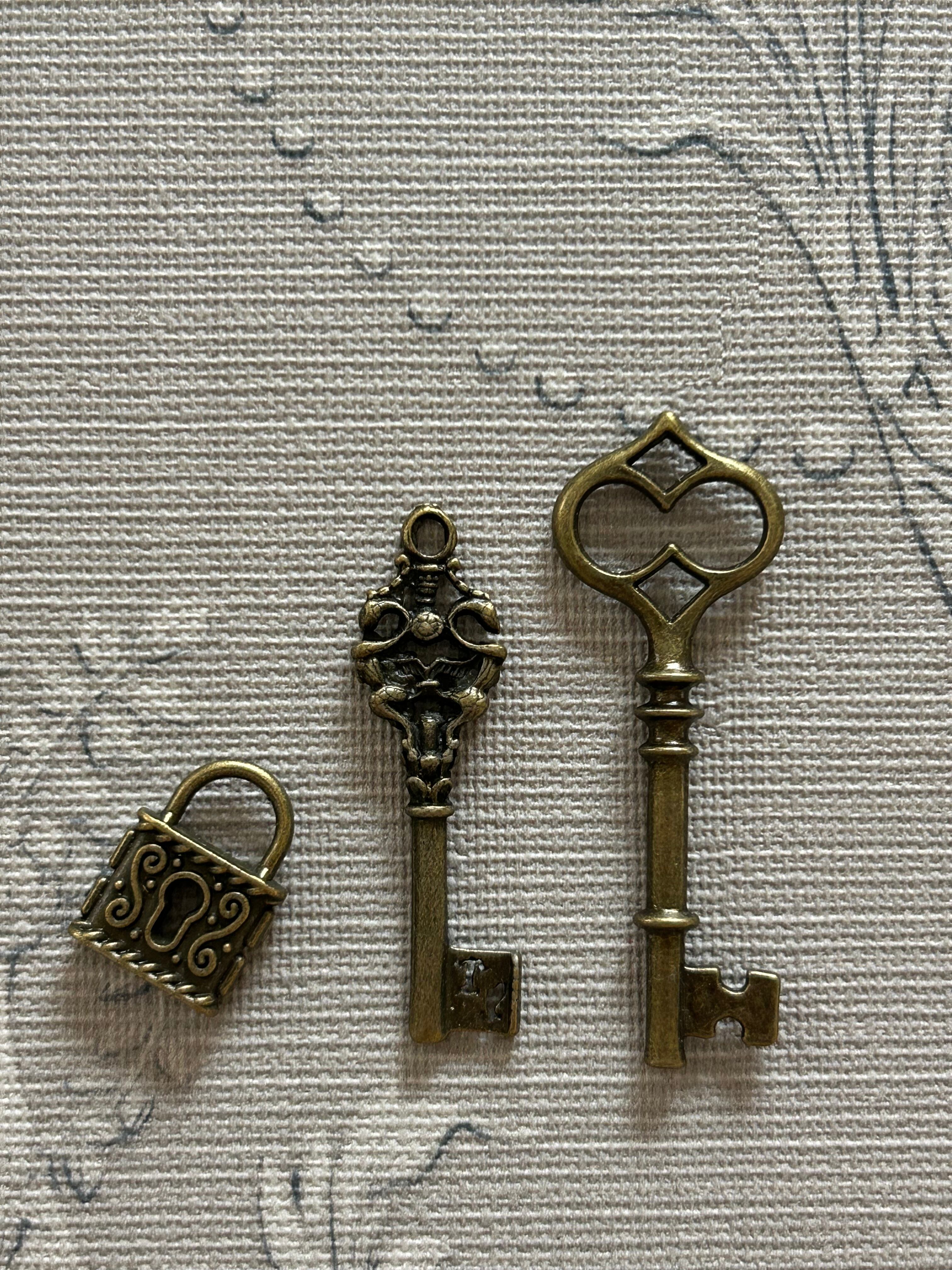 金古美カラー、アンティーク調のシンプル美しいデザインのKeyパーツ(チャーム)です。