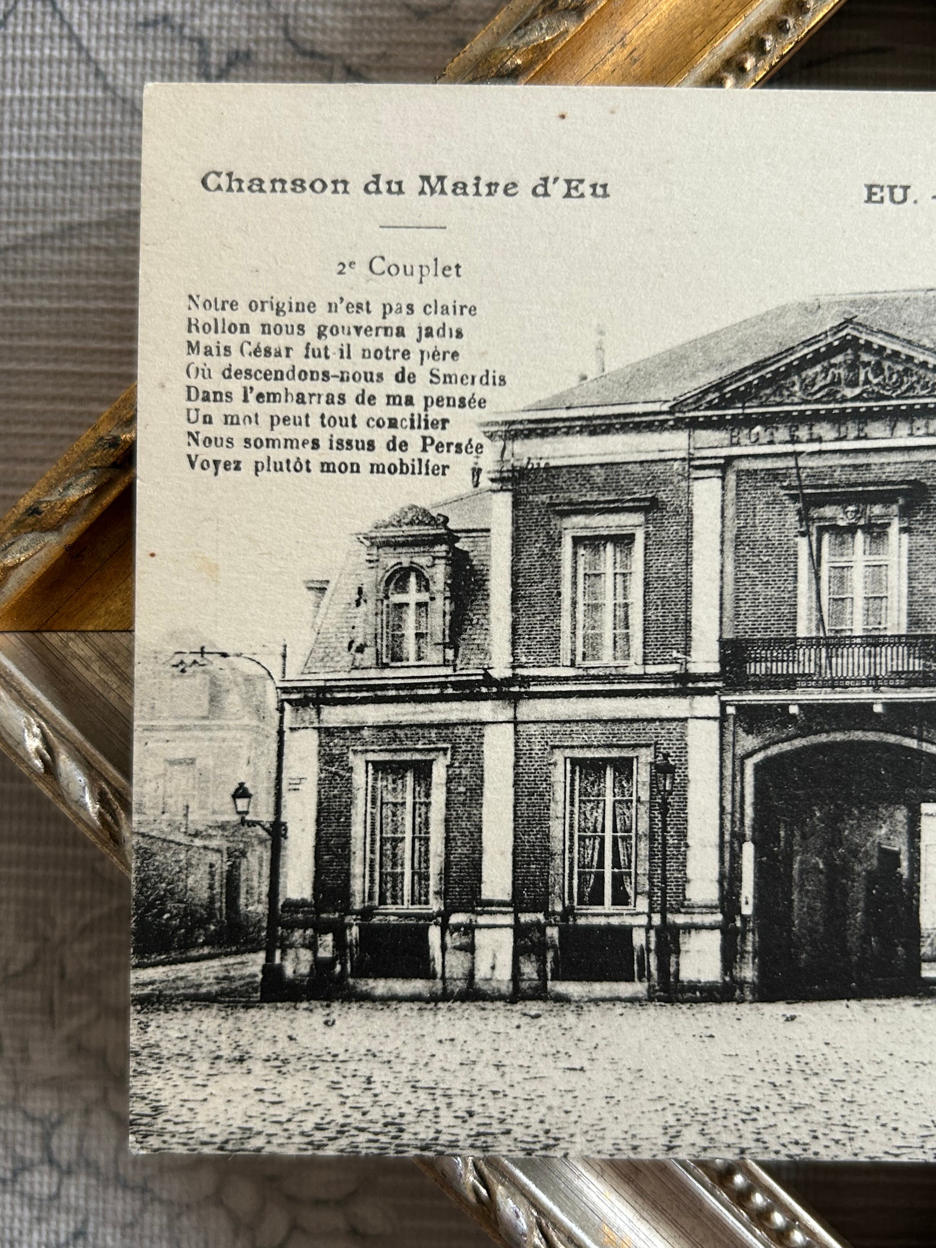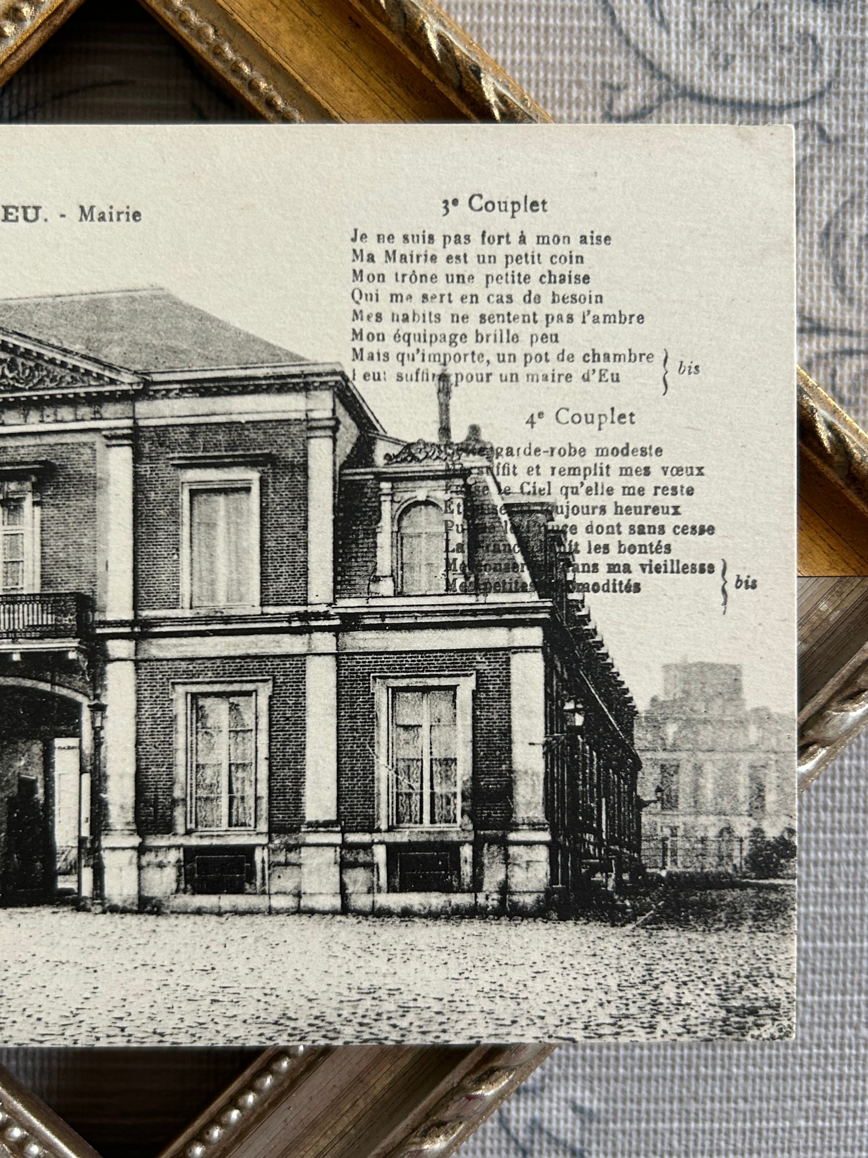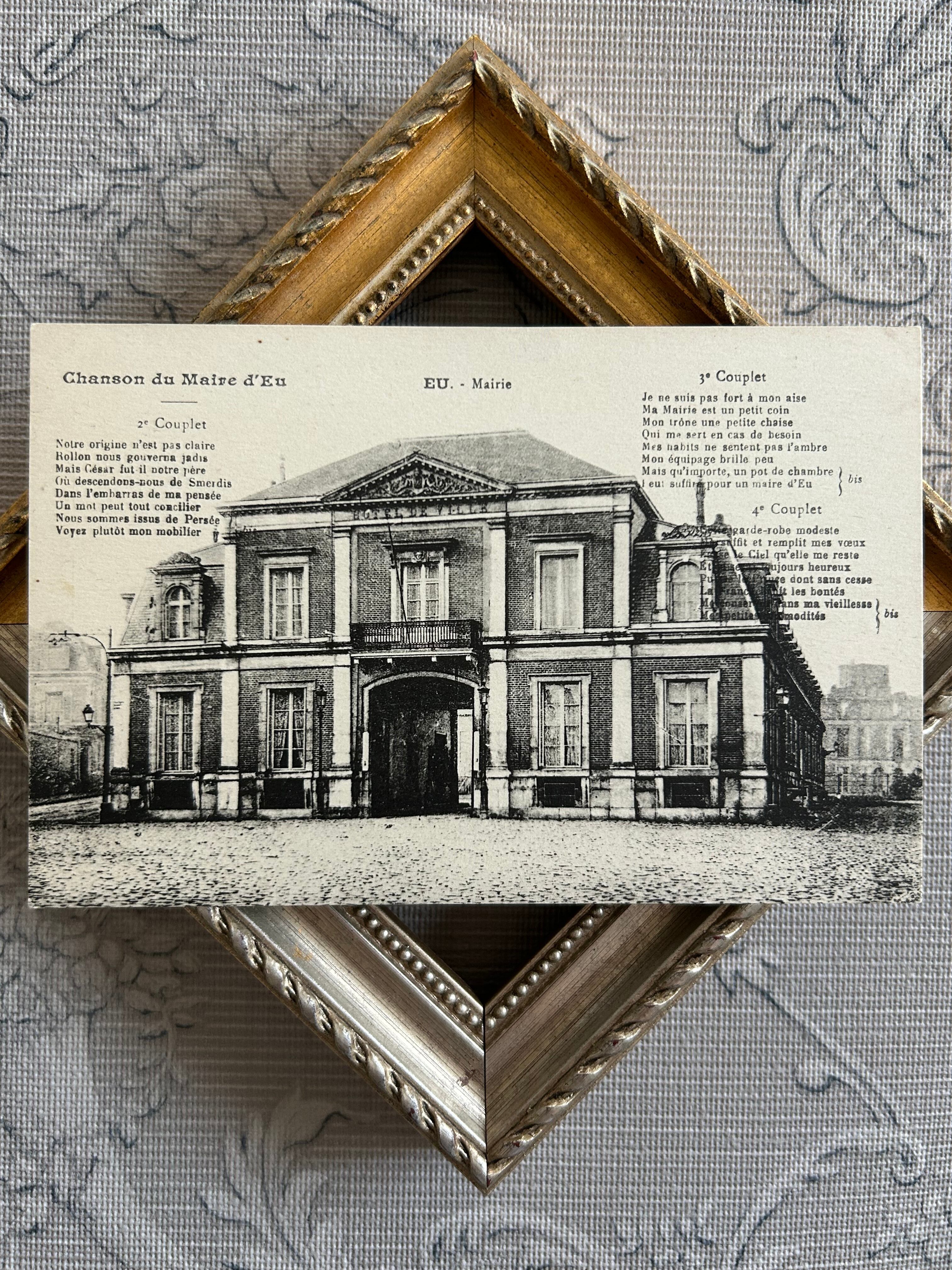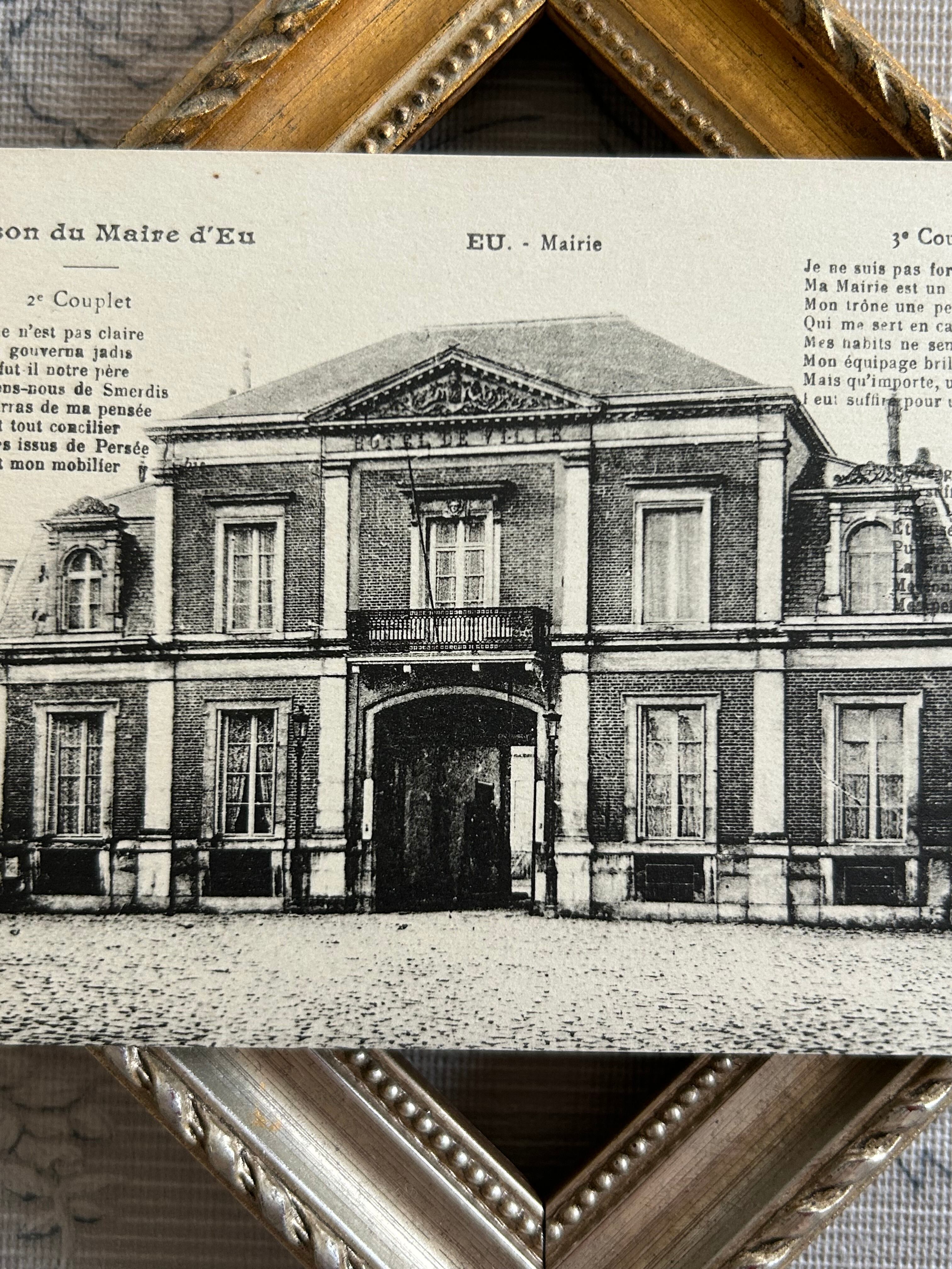 フランスアンティークカード EU Mairie 市役所 建物 建造物 風景 歌詞 未使用 額装 インテリア小物 撮影小物