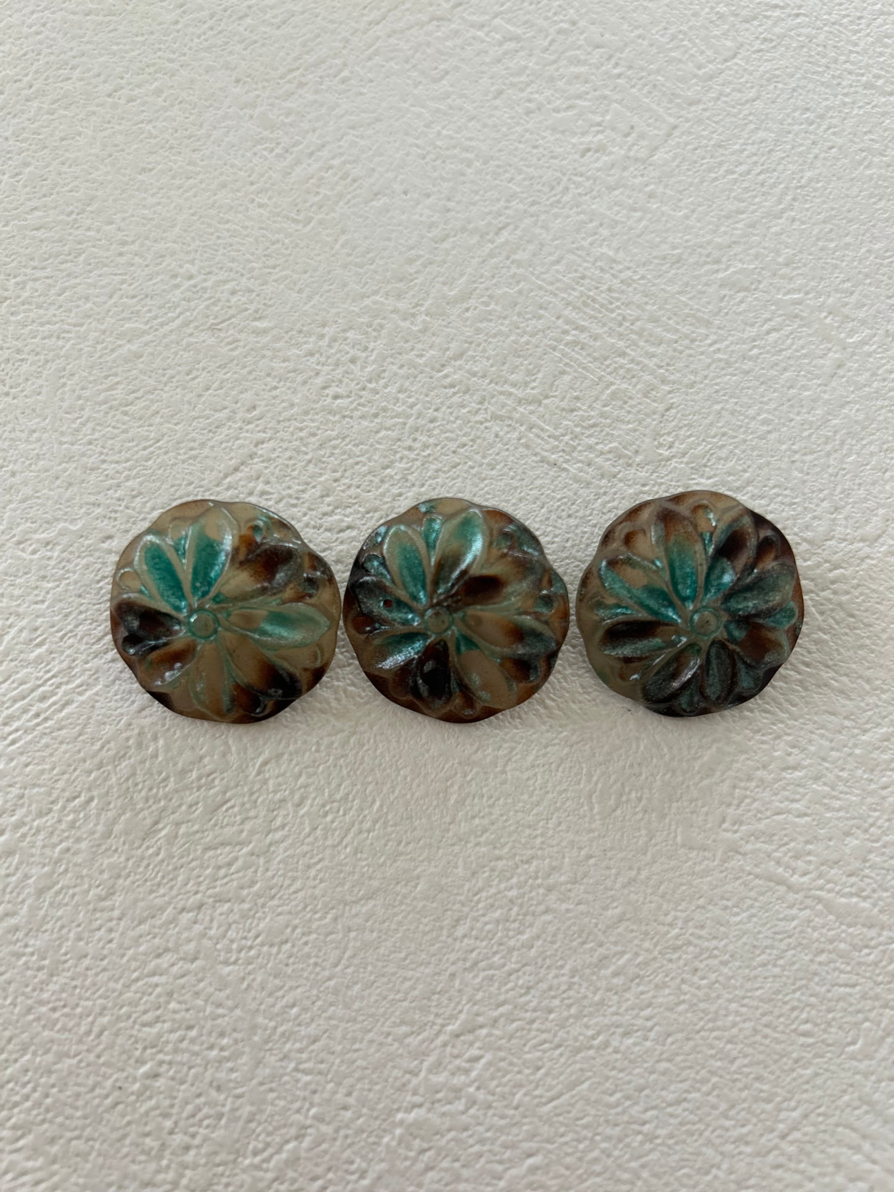 フラワーのような型押しのデザイン、フロスト加工されたマットな質感が素敵なボタンです。