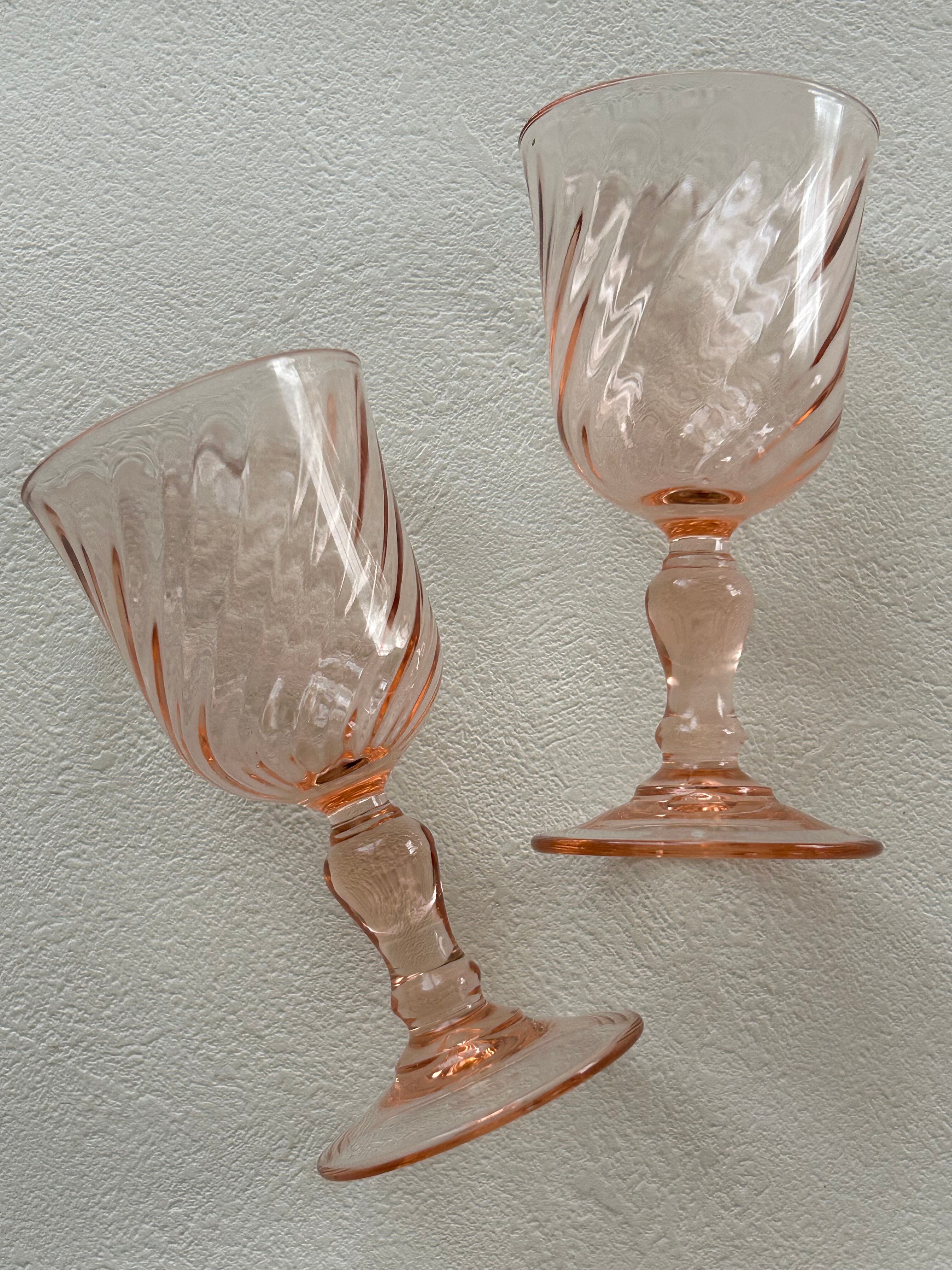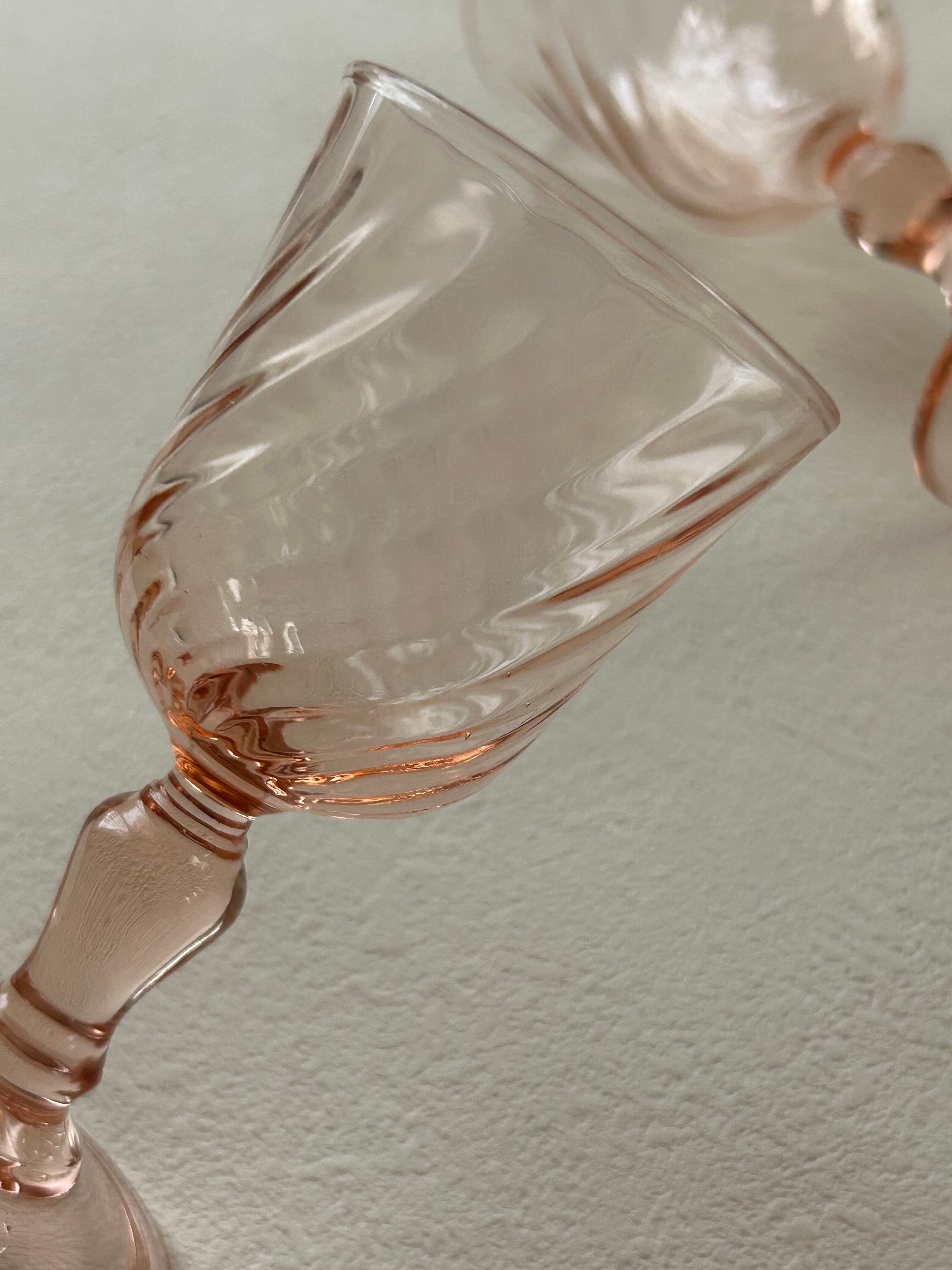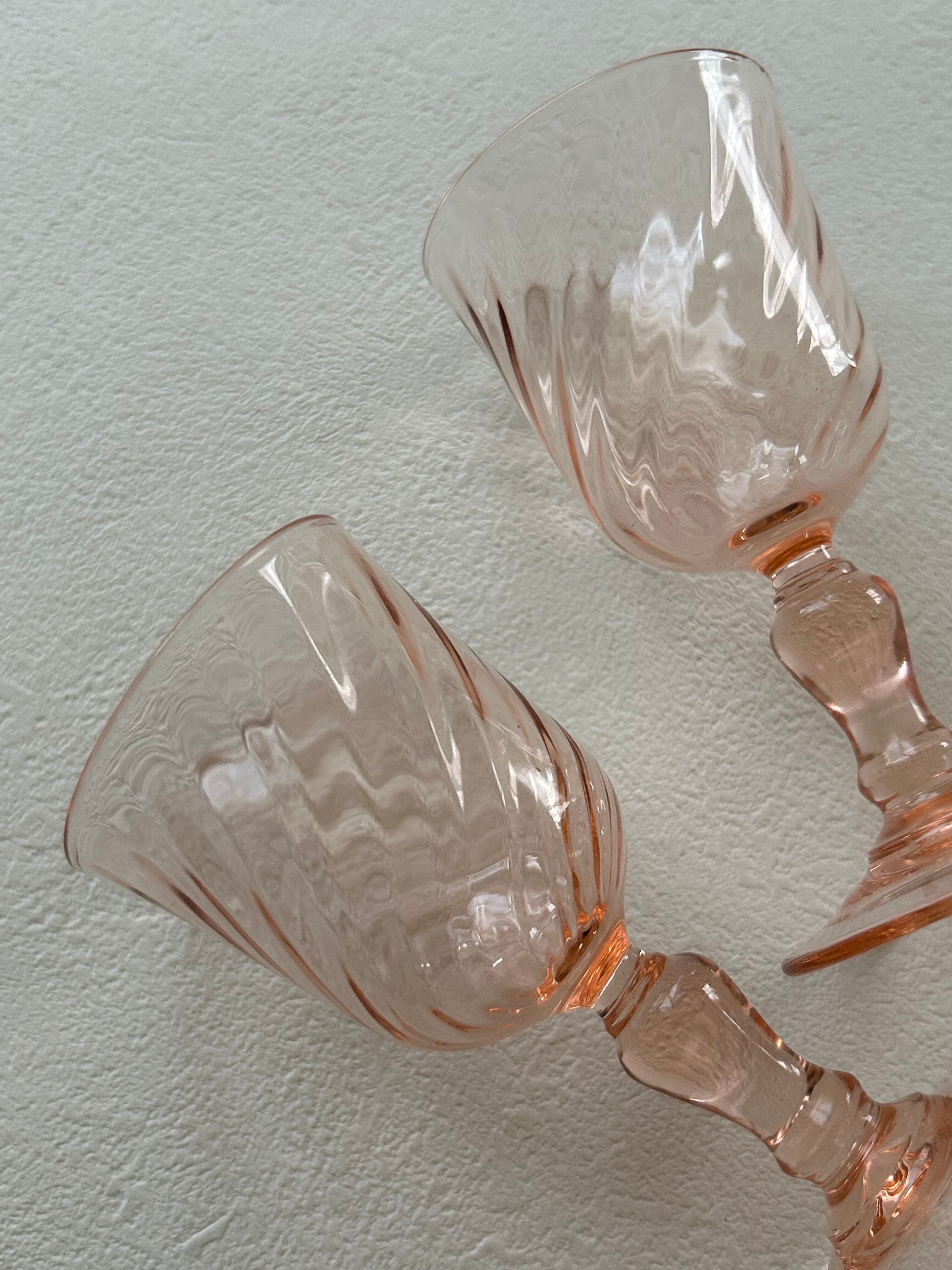 フランスVintage Luminarc リュミナルク社 ロザリングラス リキュールグラス ワイングラス ピンクガラス インテリア小物 フラワーベース