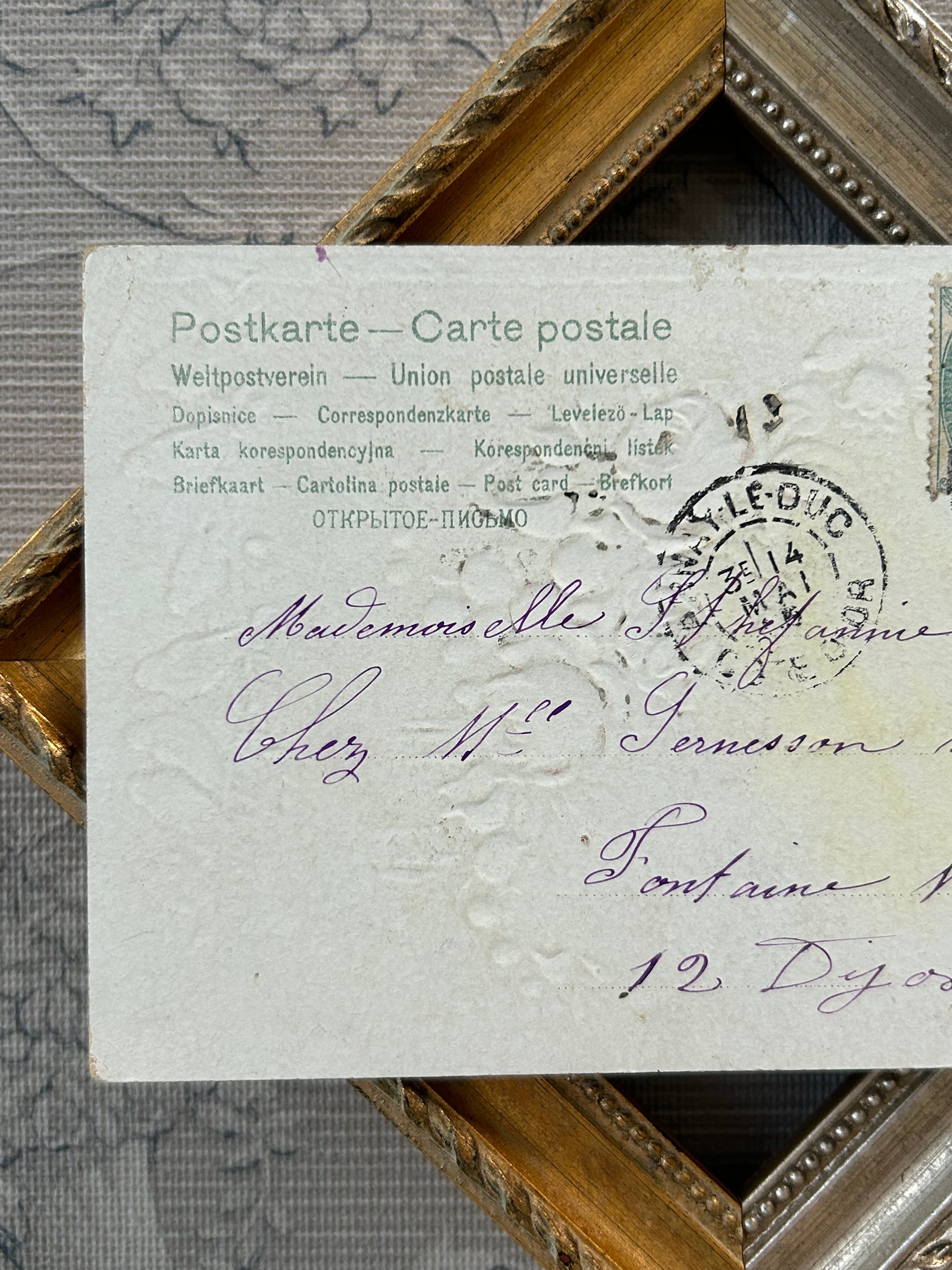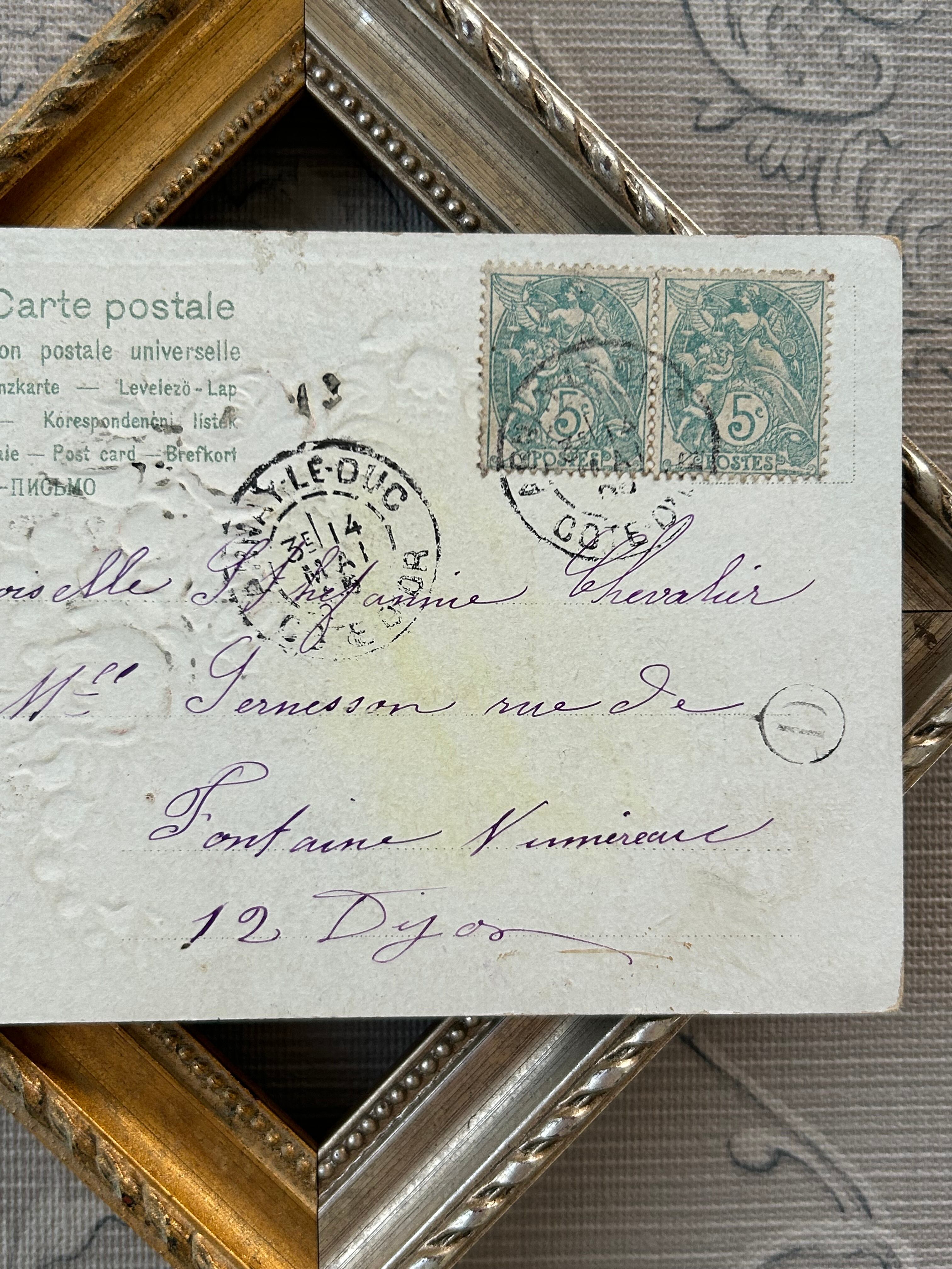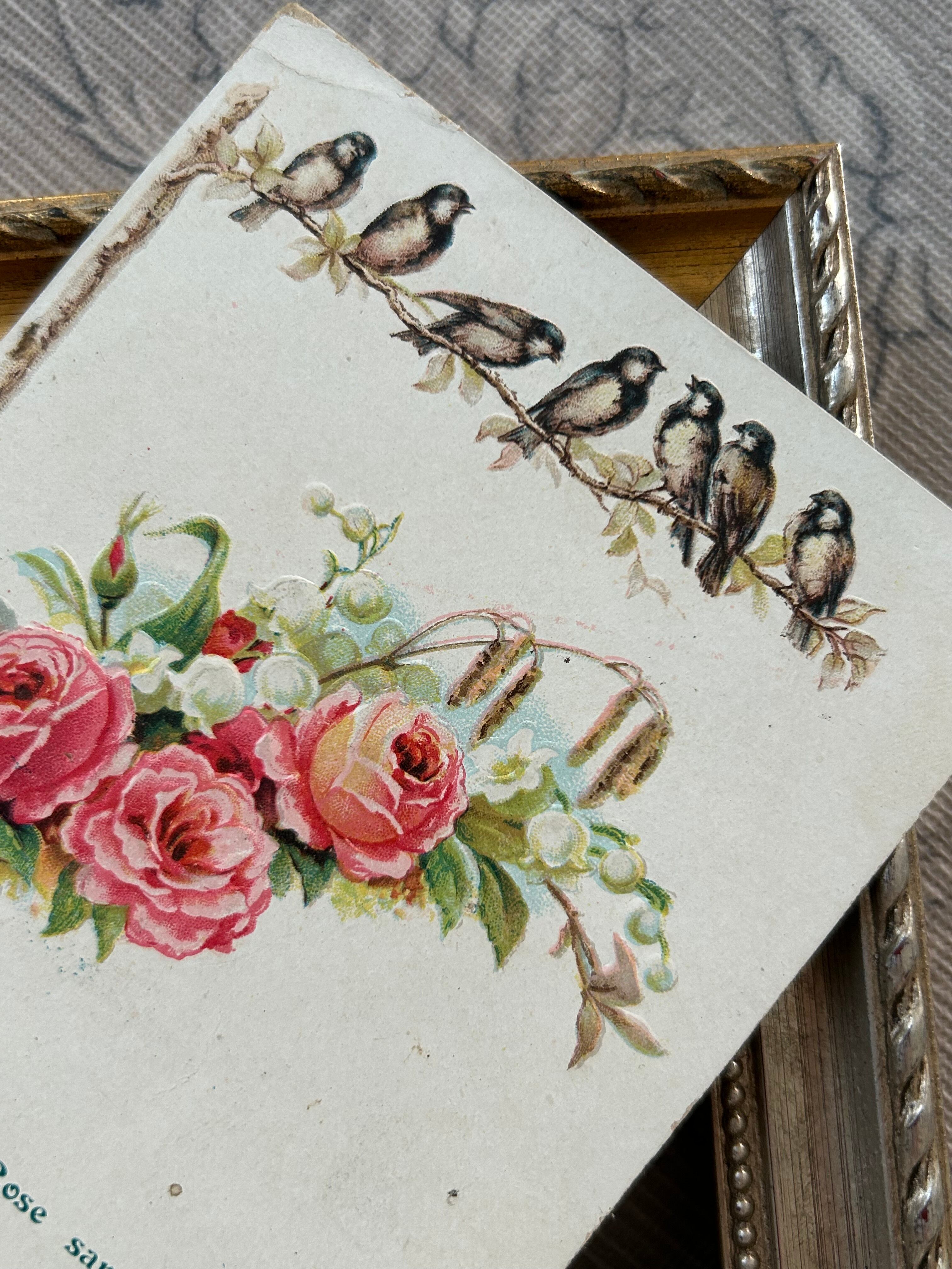 フランス アンティークポストカード MuguetとRose ツバメ すずらん エンボス加工 額装 インテリア