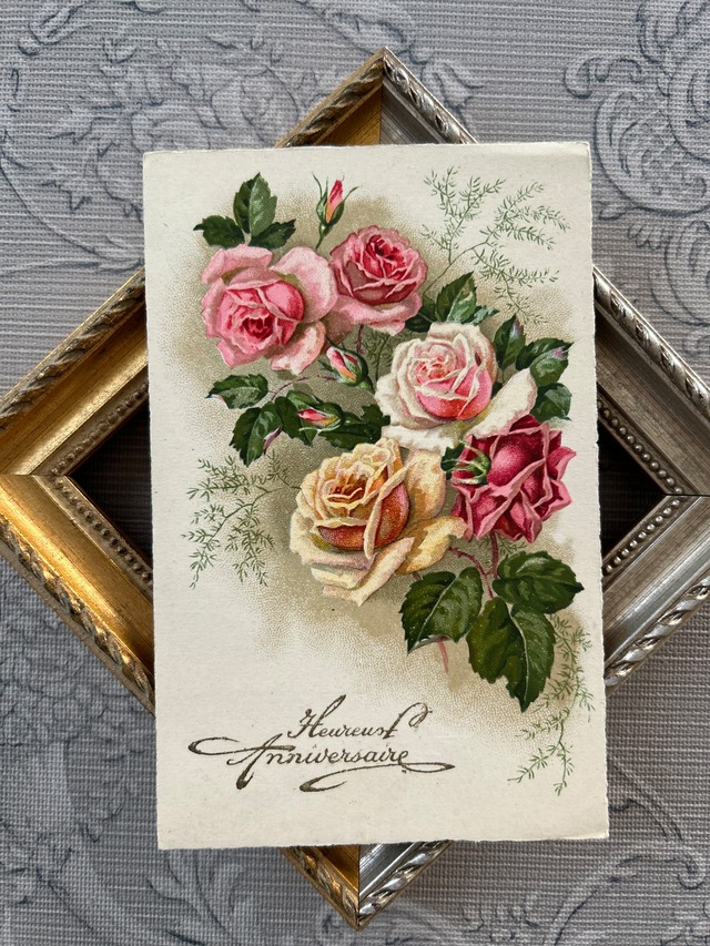 アンティークポストカード 薔薇 Rose 額装 インテリア小物 花柄