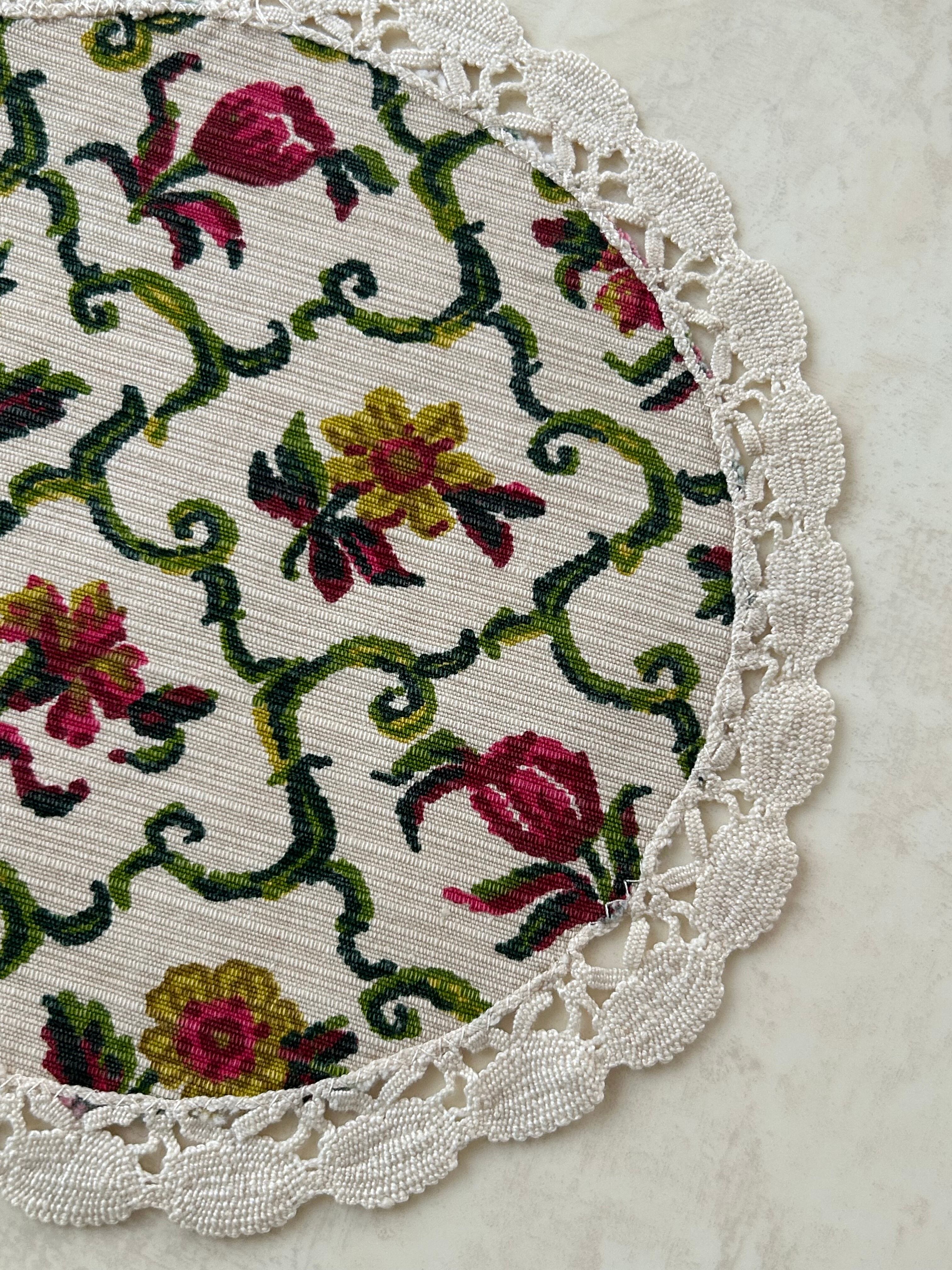 クラシカルな花柄の手仕事のドイリーです。