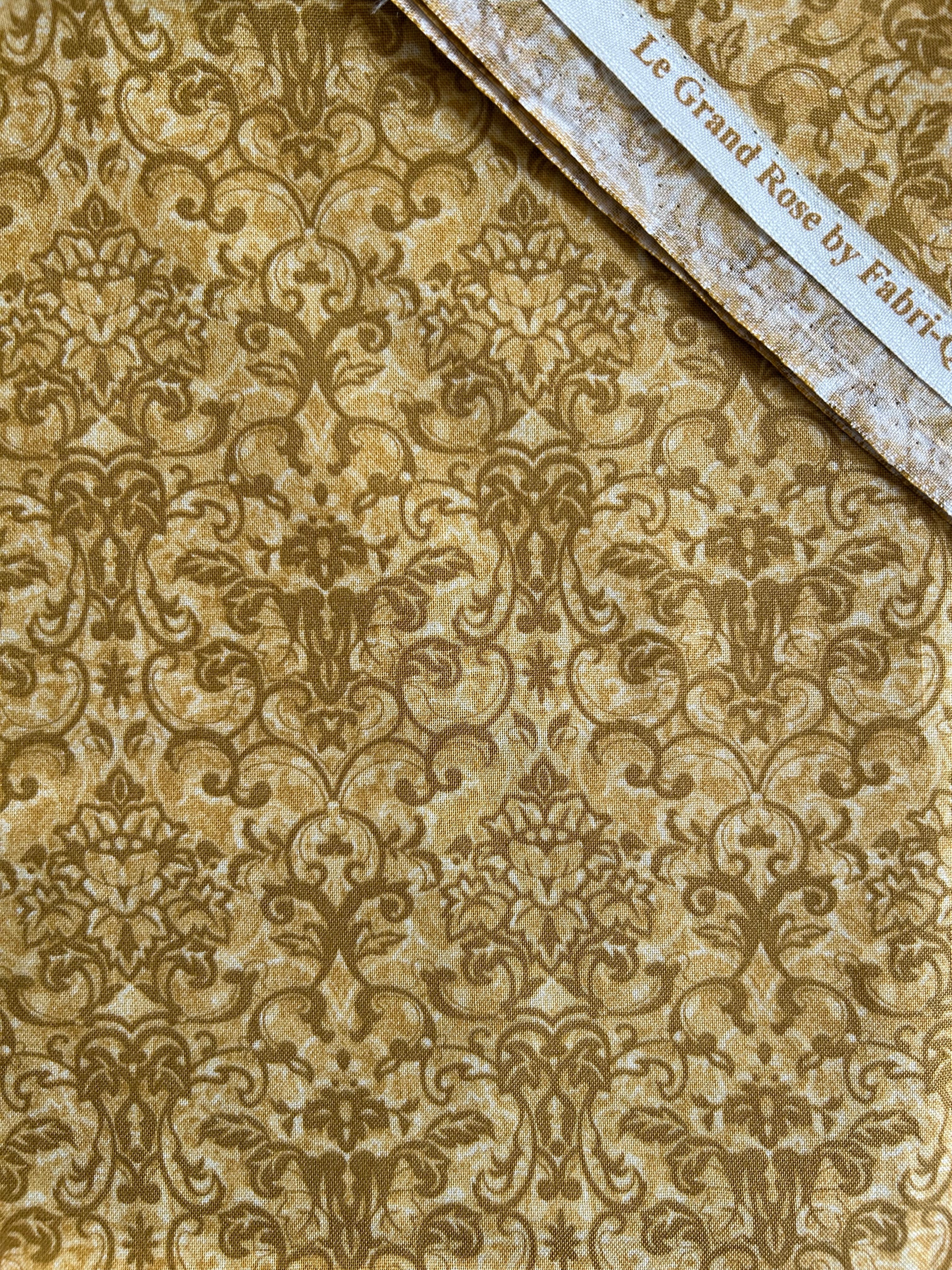 フランス コットンファブリック 輸入ファブリック ダマスク調 オーカー 黄土色 総柄 カルトナージュ