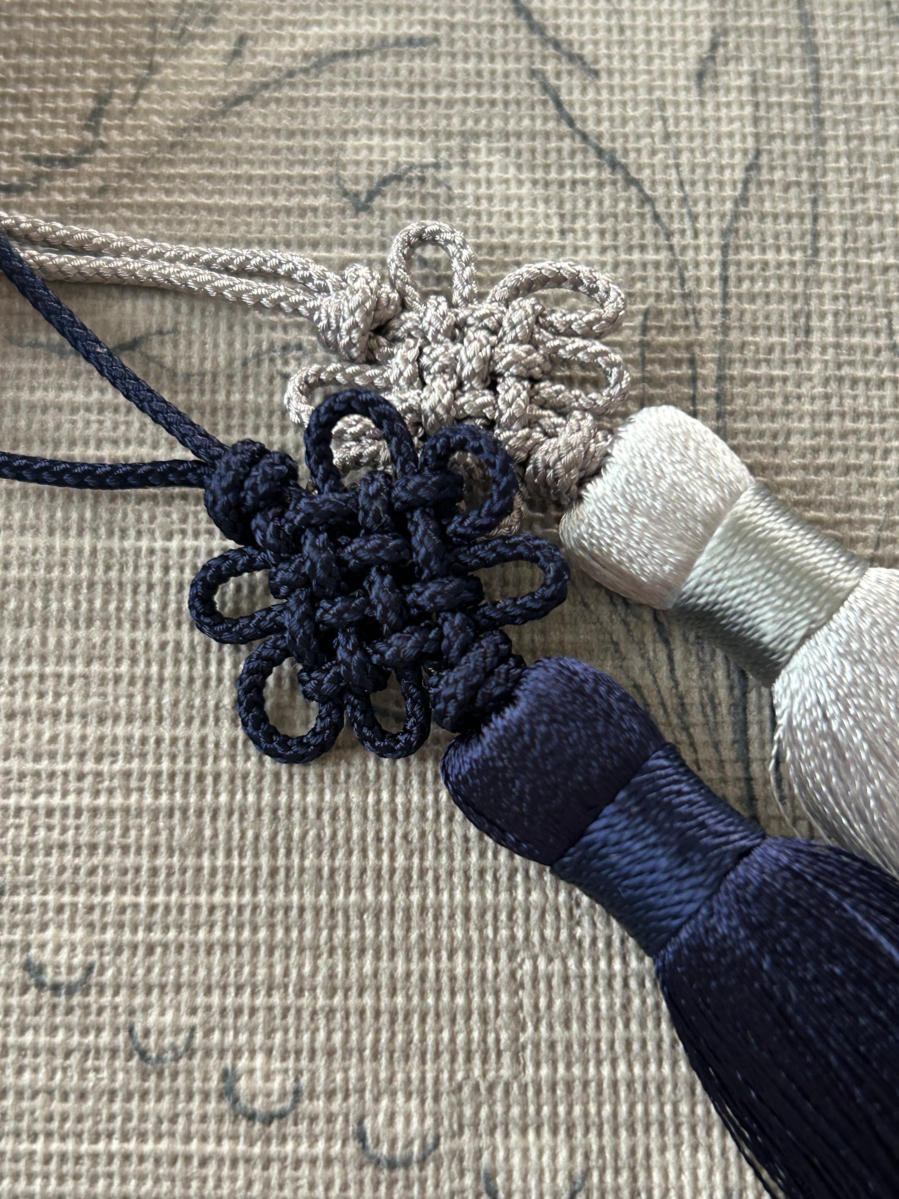 輸入デザインタッセル 中国結び チャイナ風 中華風 ネイビー/グレー カルトナージュ インテリアタッセル アクセサリーパーツ チャーム