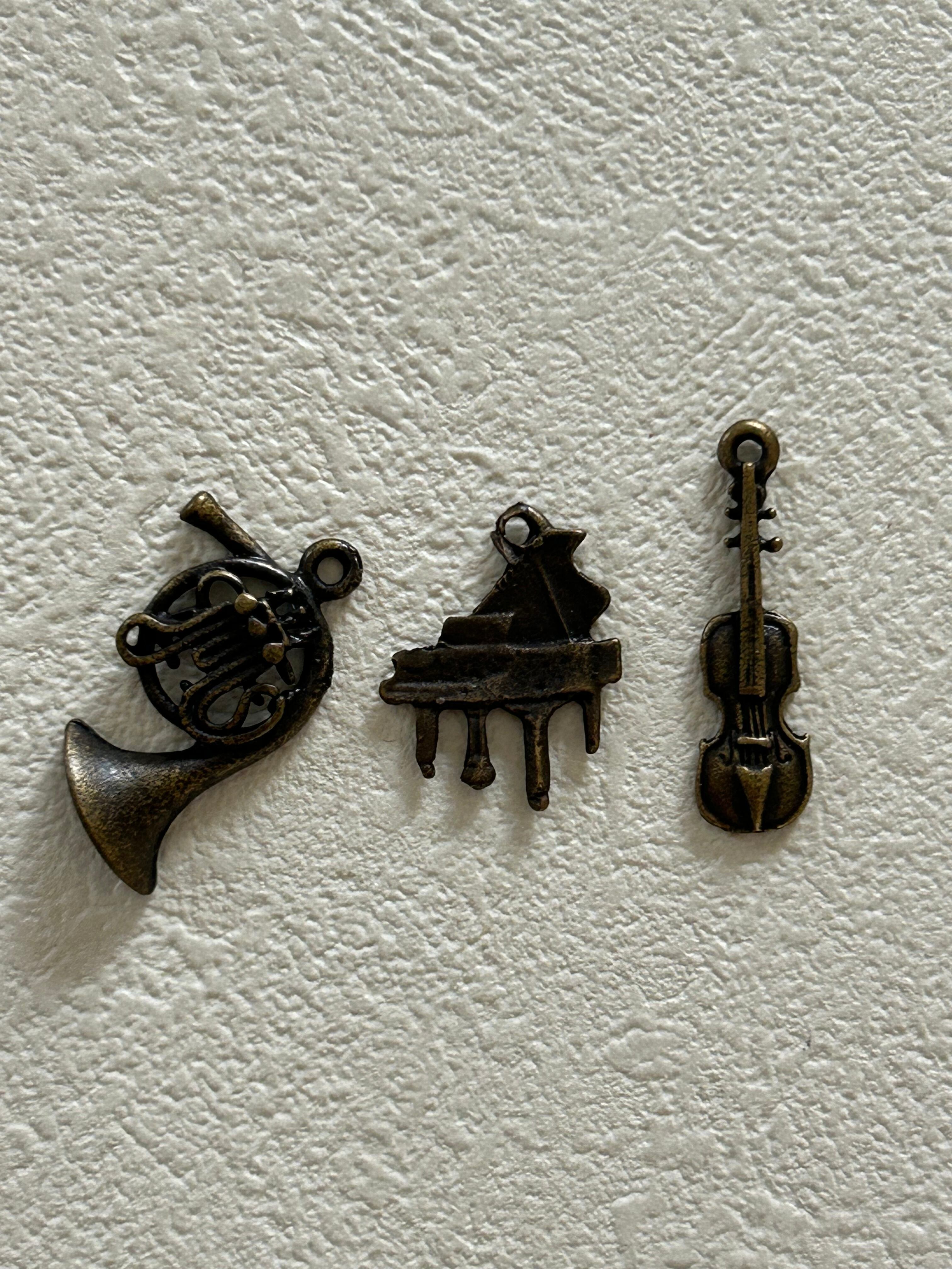 ホルン・ピアノ・ヴァイオリンの金古美カラーのパーツ(チャーム)です。