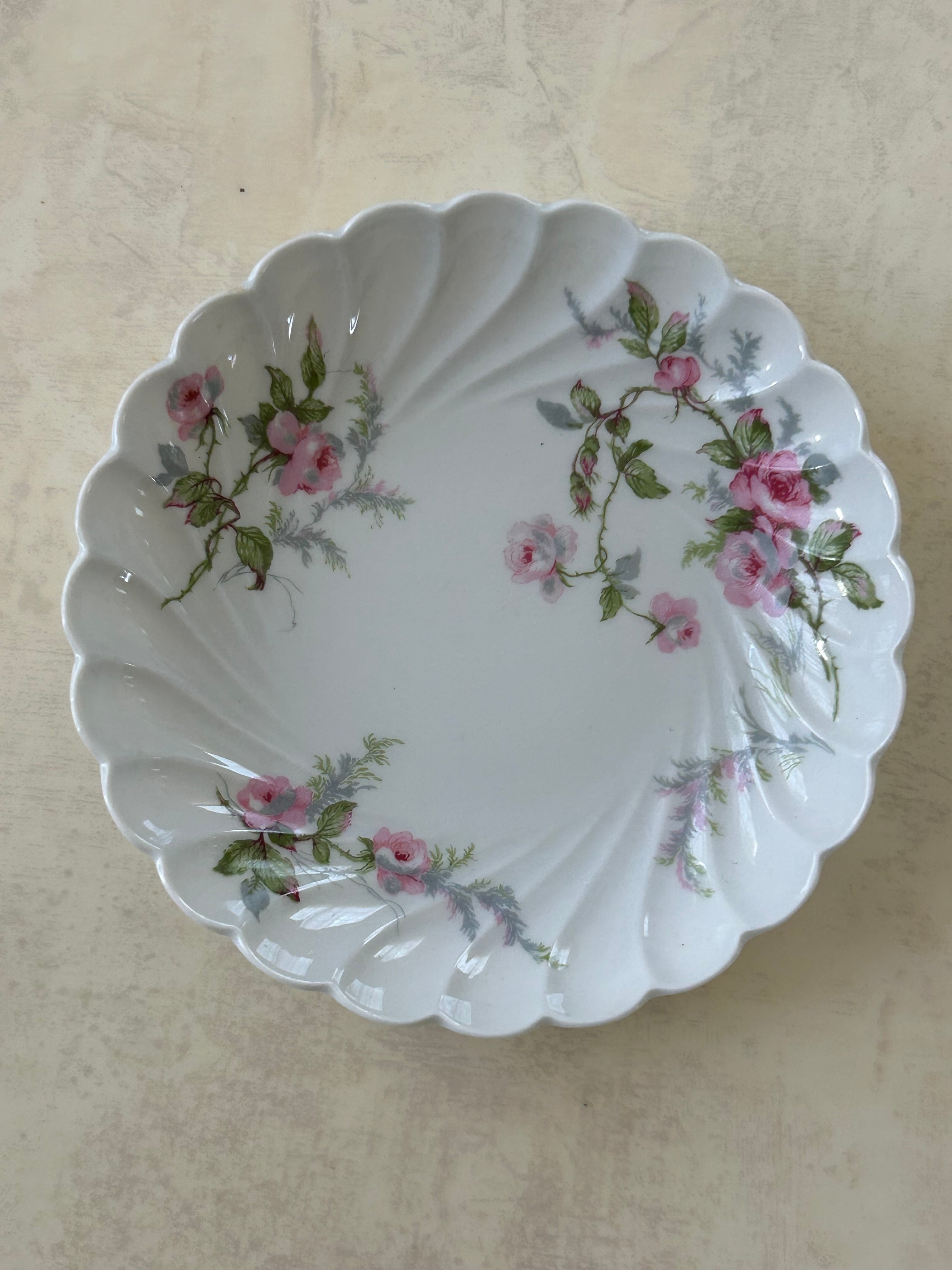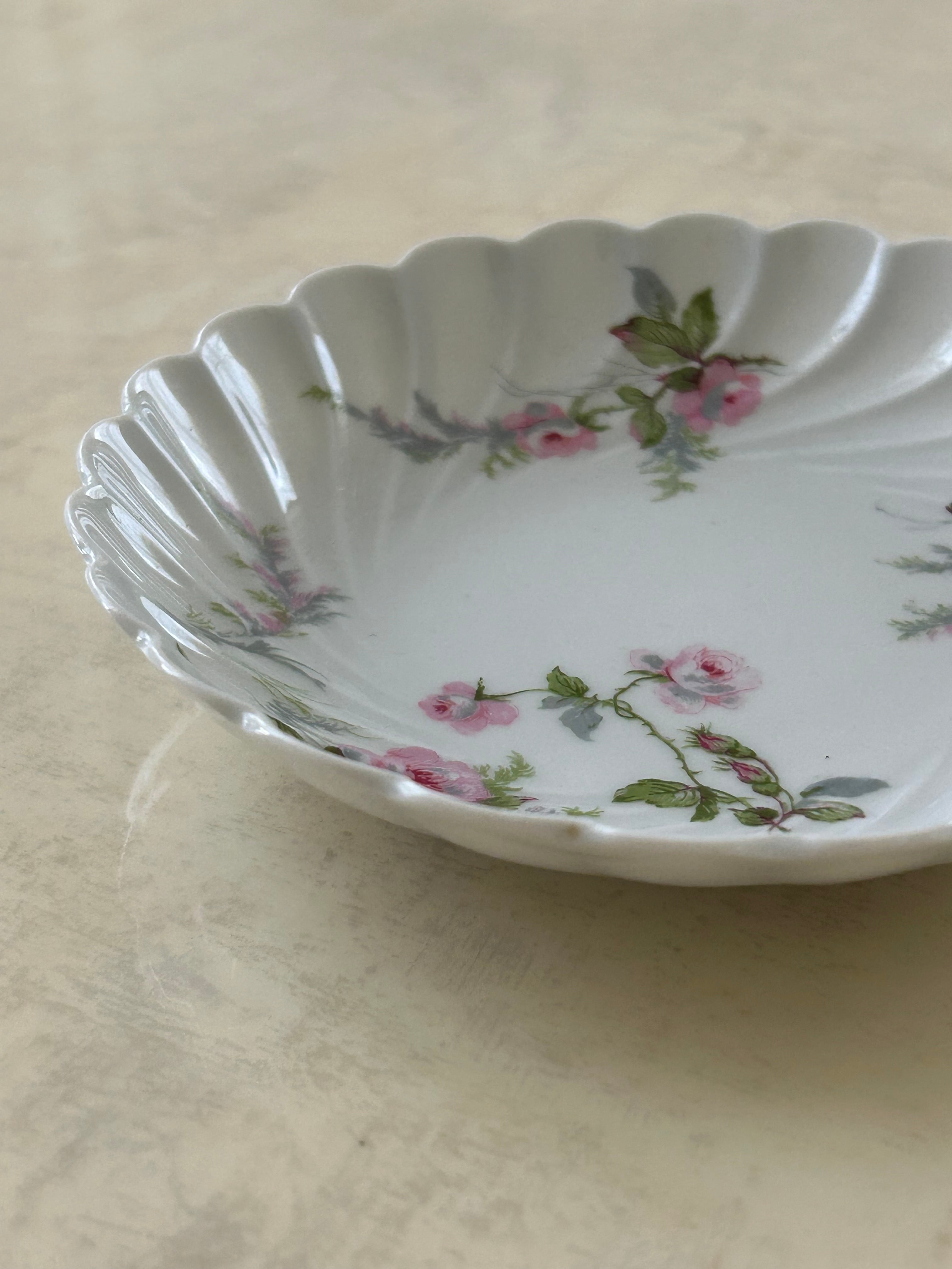フランスVintage HAVILAND LIOGES アビランドリモージュ Rose柄のバターパッド (バター用)小皿 ミニプレート 12.5cm テーブルウェア