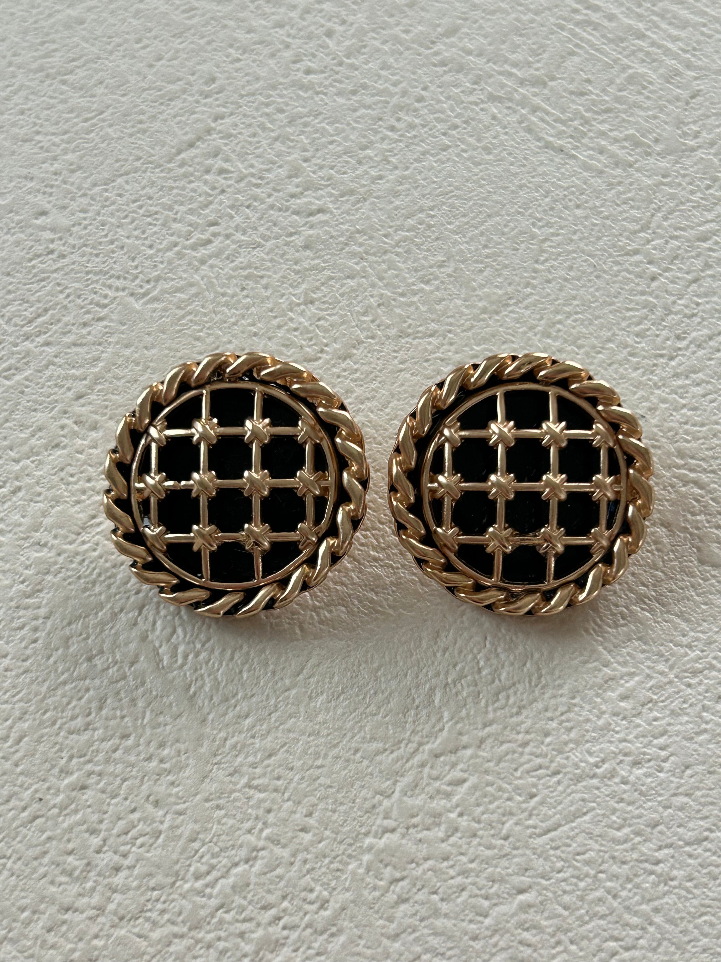 輸入デザインボタン 透かし マットゴールド 艶消し 25mm チェーン 格子 アクセサリーパーツ デコレーション材