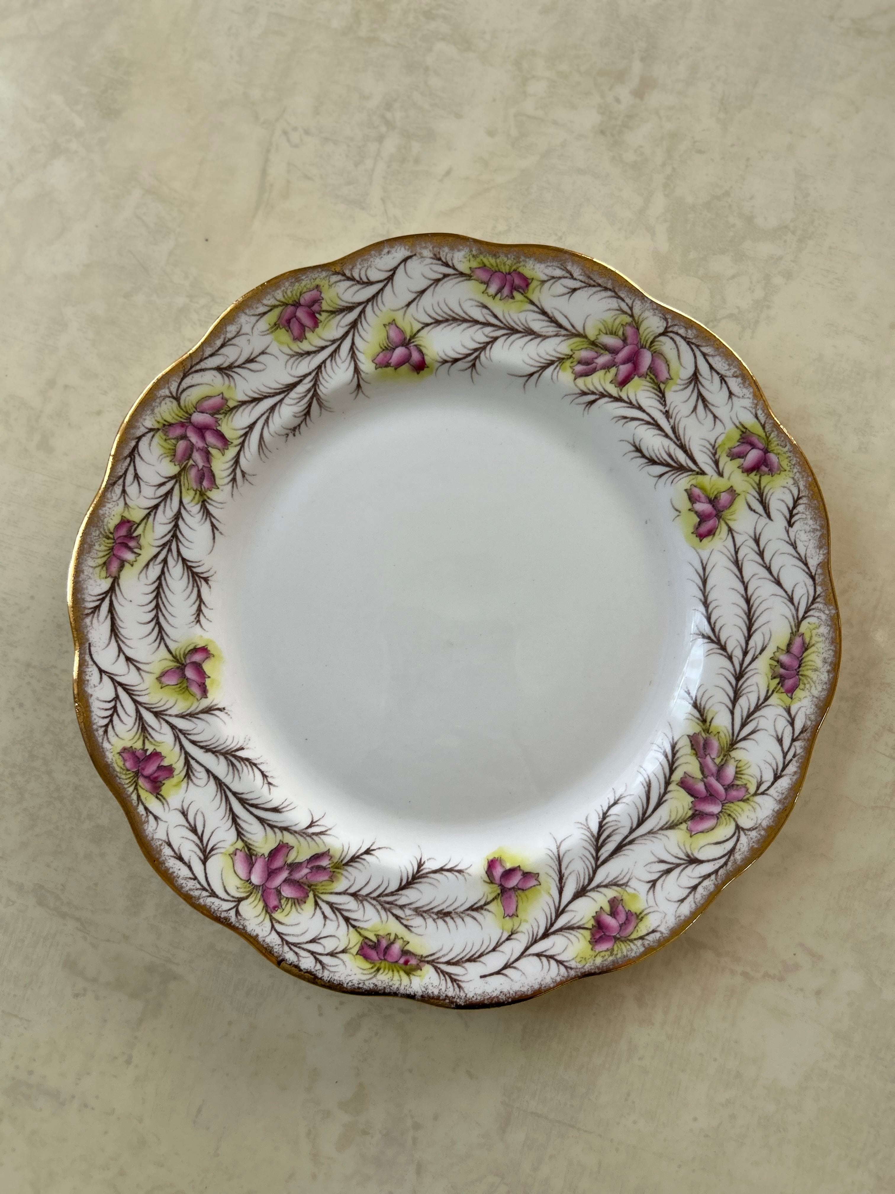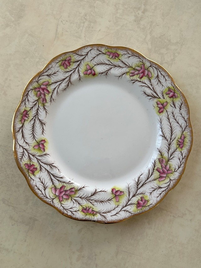 英国Vintage ロイヤルアルバート Heather Bell ヘザーベル プレート 20.5cm 1940年代 金彩 花柄