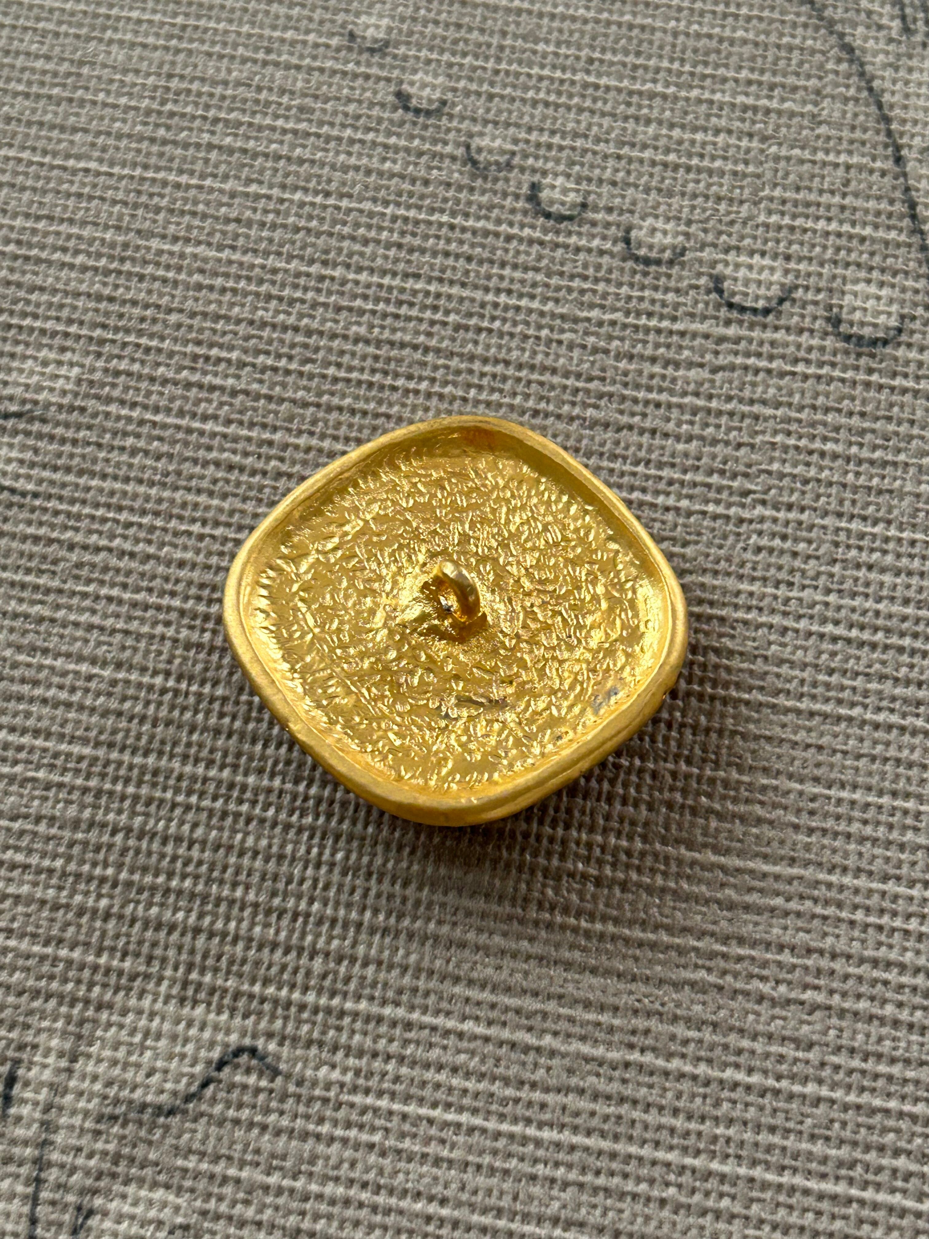 マットゴールドのメタル製のボタンの中央にオレンジ系のカボション。