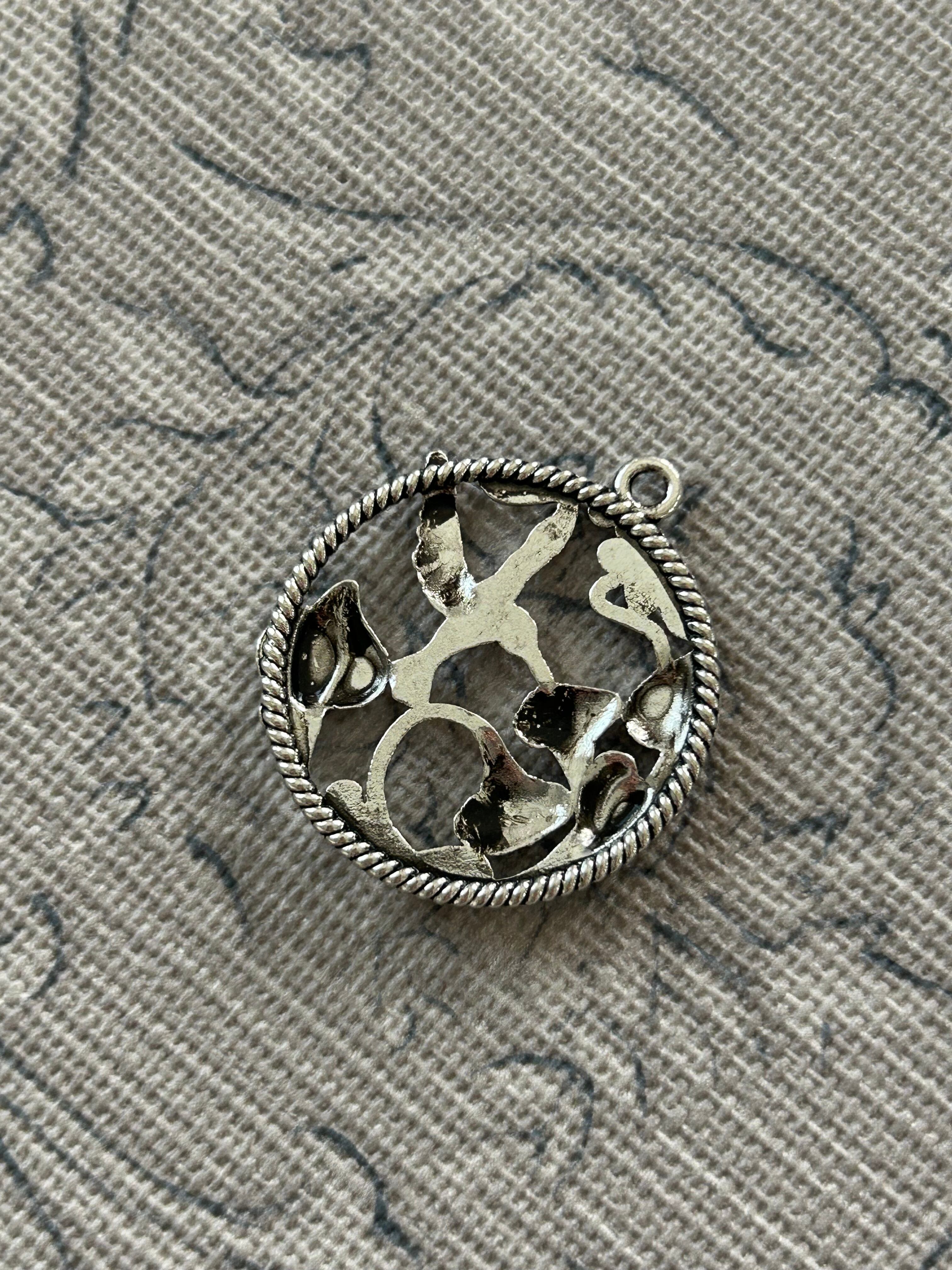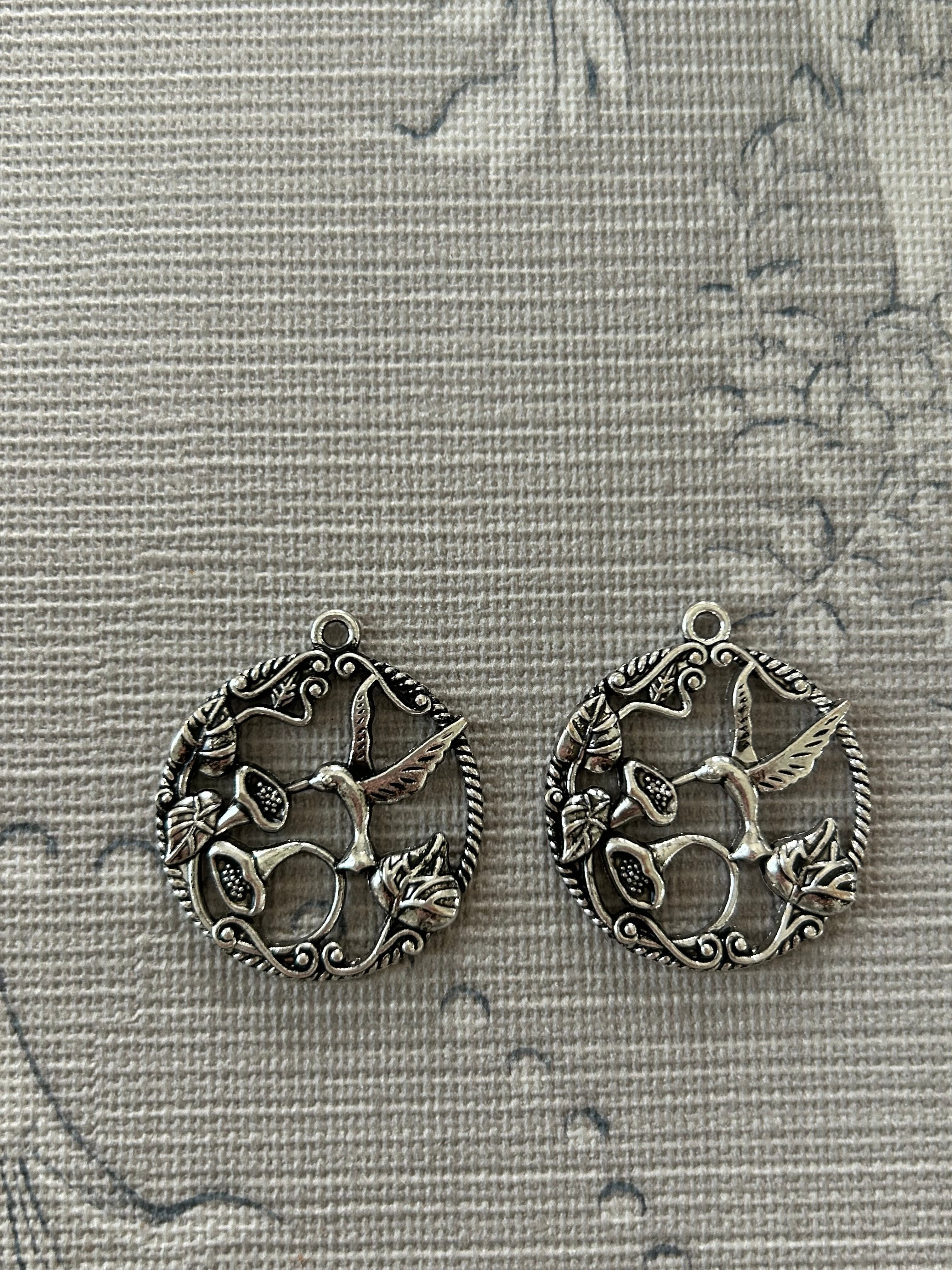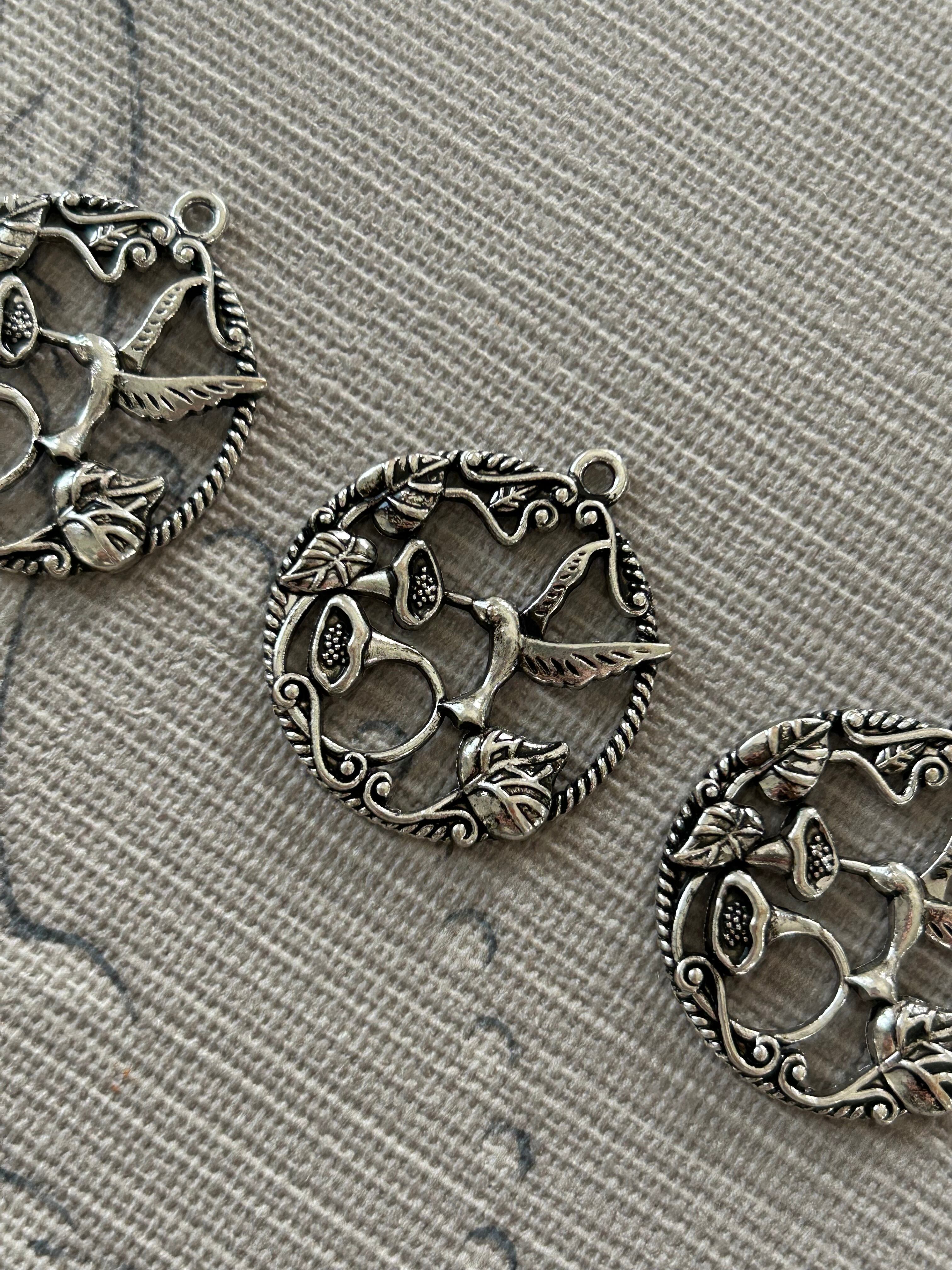 輸入デザインパーツ ハチドリとフラワーのリース型パーツ チャーム シルバー アクセサリーパーツ デコレーション材