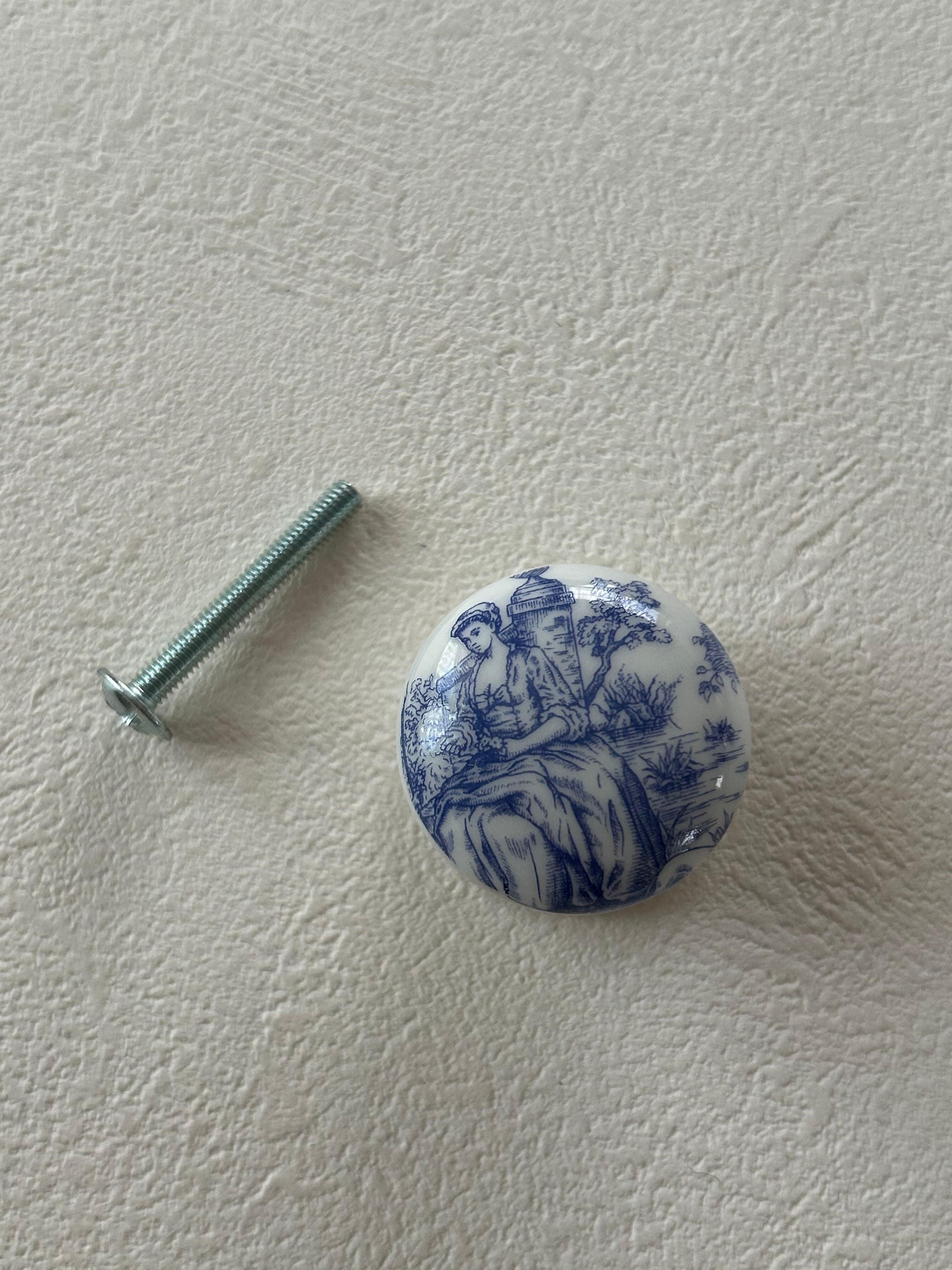 フランス 陶器製の取っ手 つまみ トワルドジュイ ブルー パーツ ハンドメイド カルトナージュ リメイク